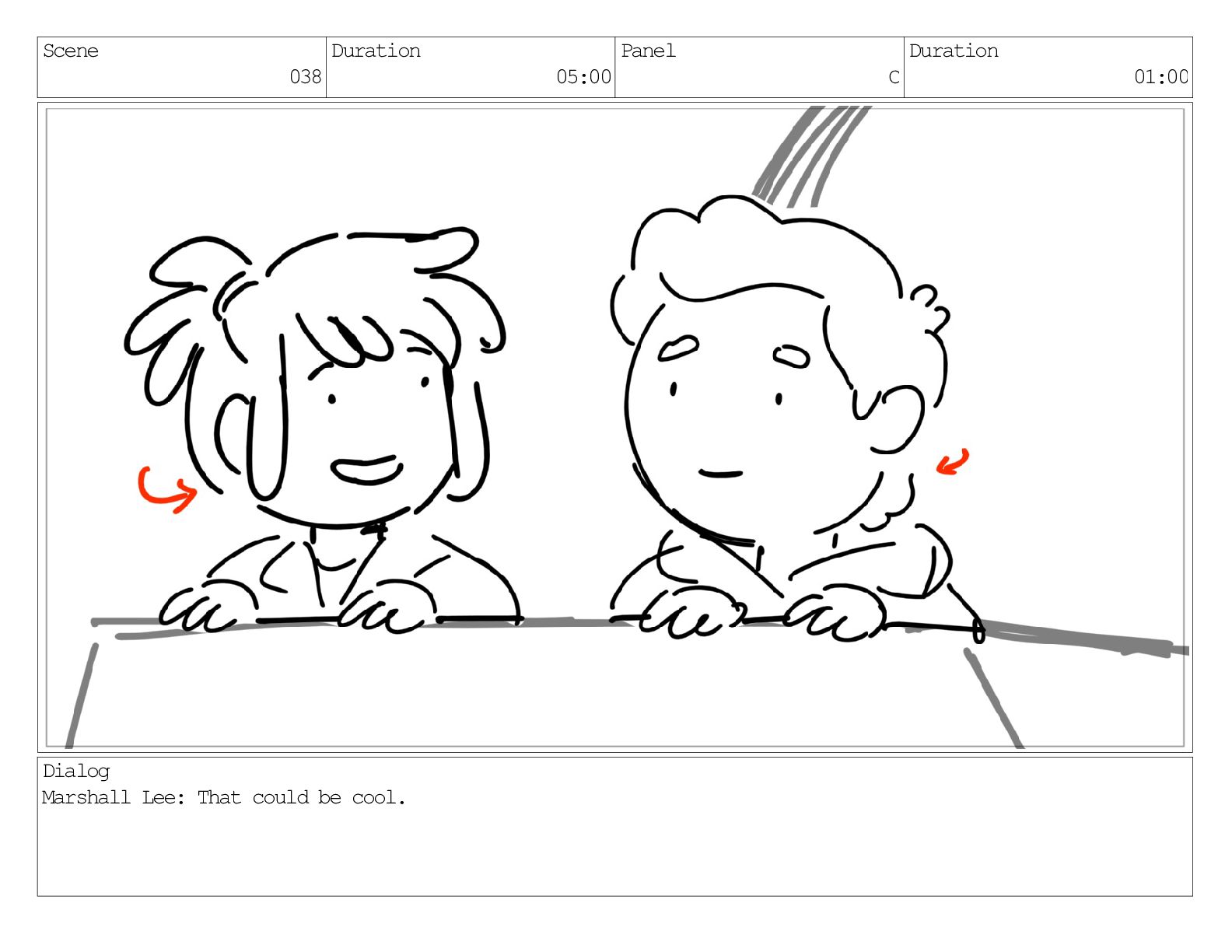 Scene 038 Duration 05:00 Panel C Duration 01:00 Dialog Marshall