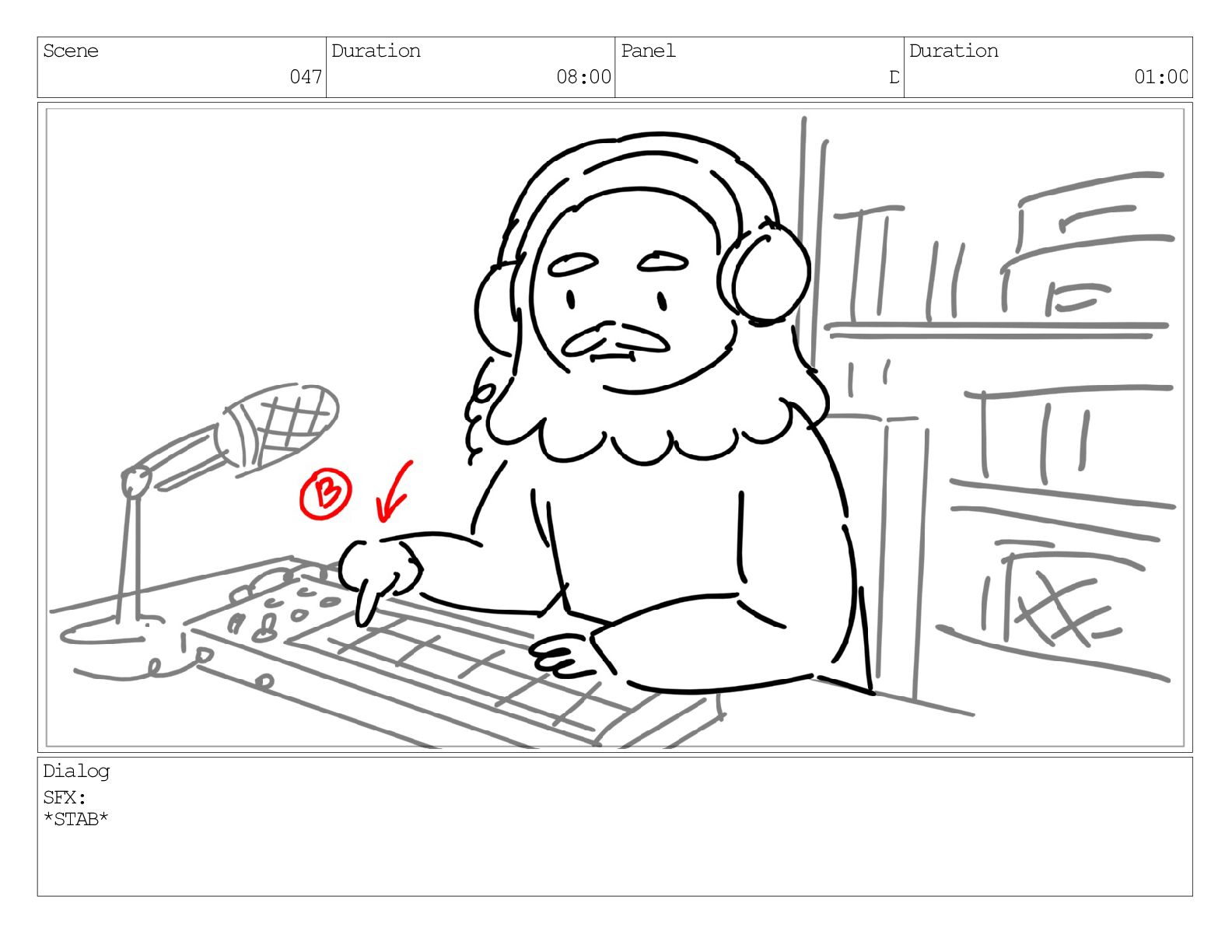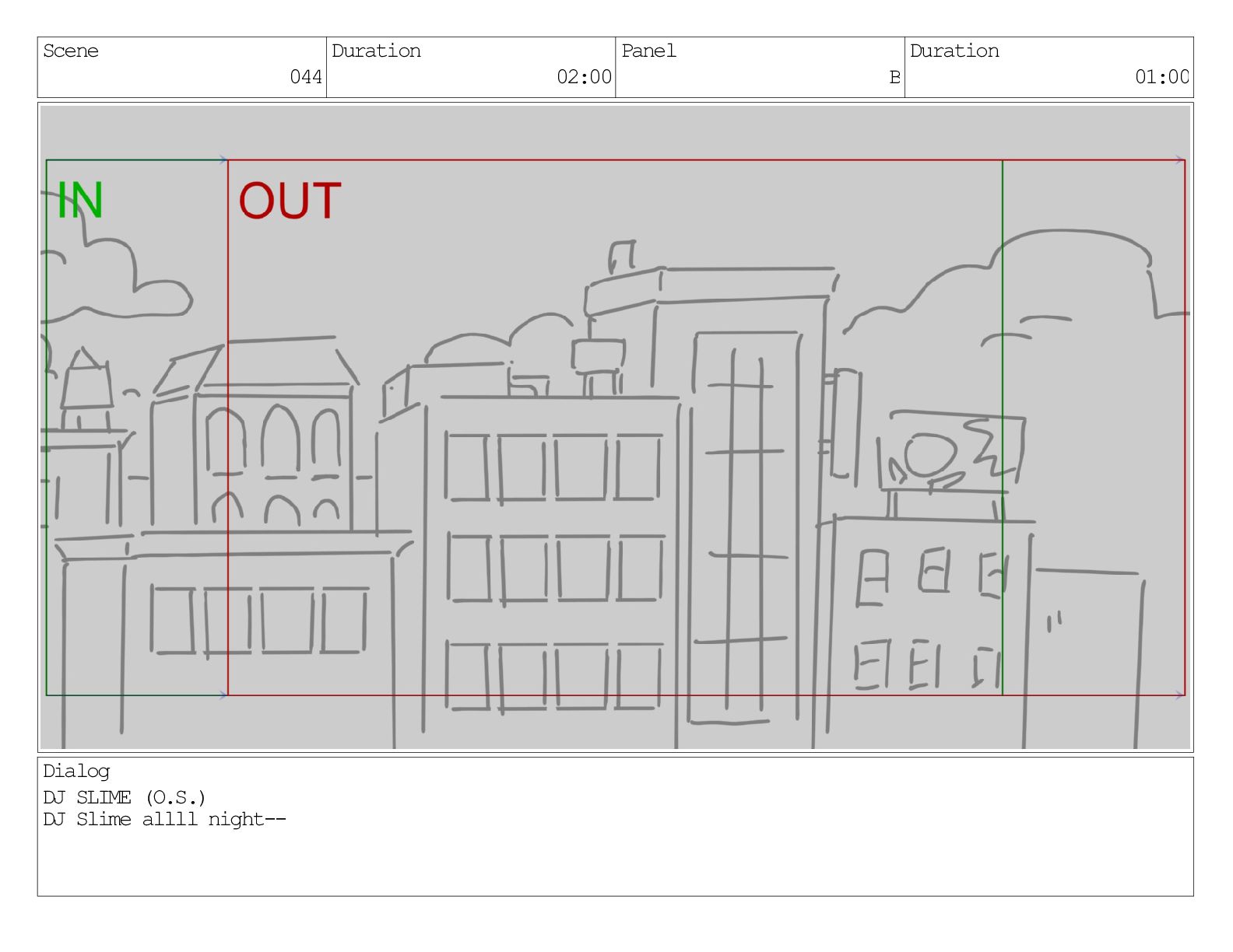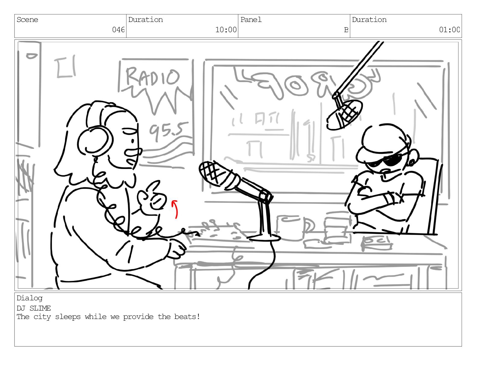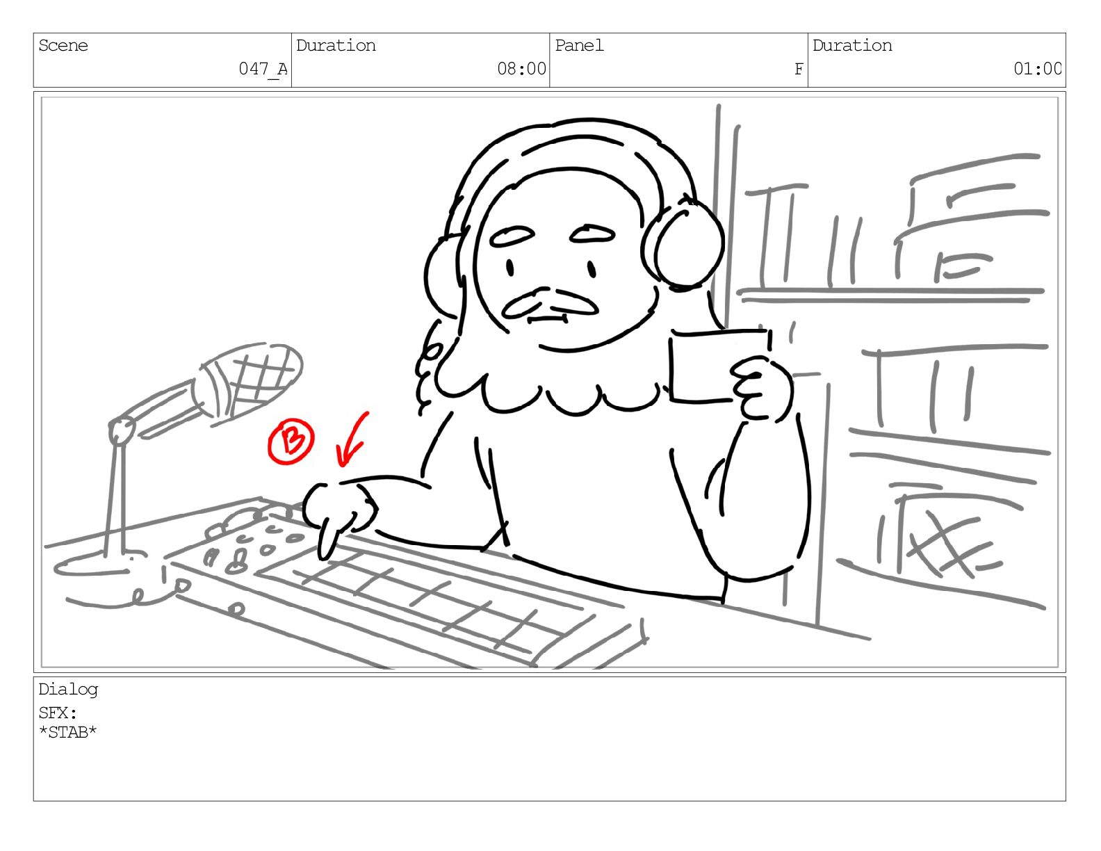 Scene 063 Duration 07:00 Panel B Duration 01:00 Dialog DJ