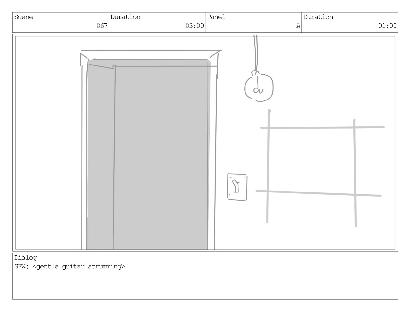 Scene 067 Duration 03:00 Panel A Duration 01:00 Dialog SFX: