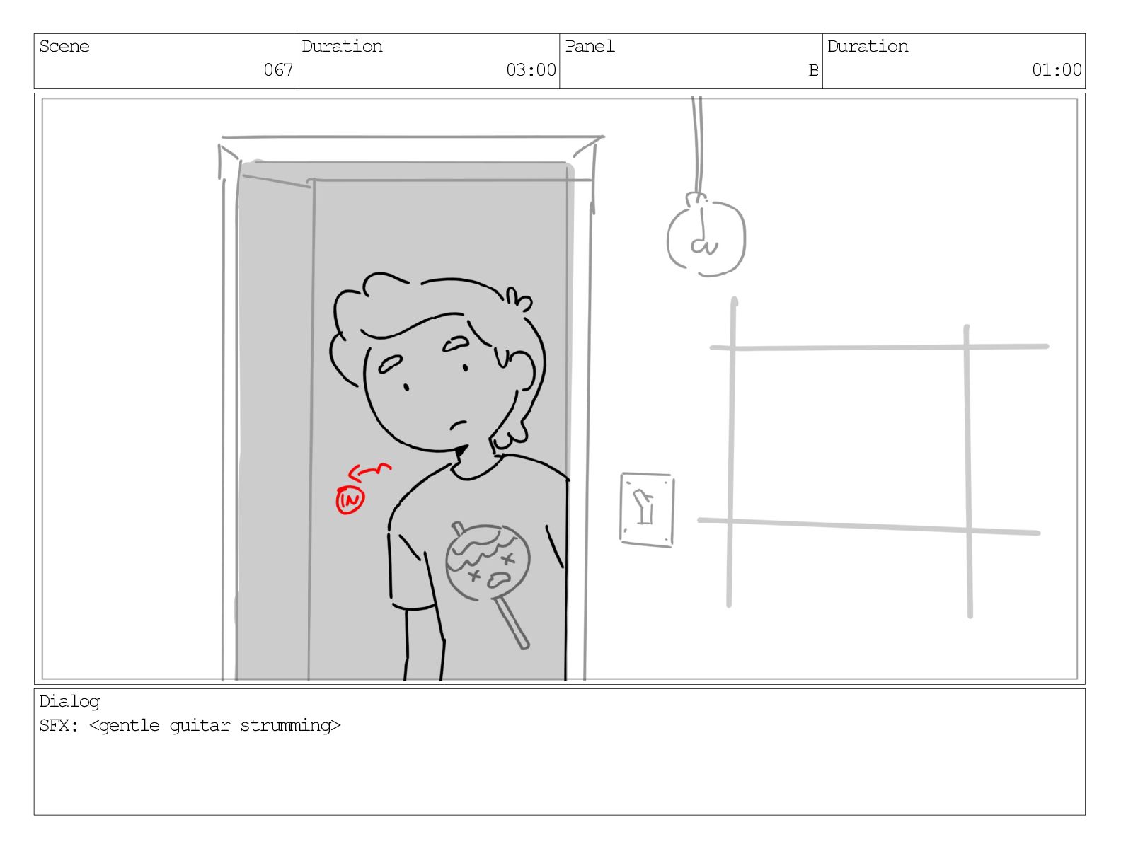 Scene 067 Duration 03:00 Panel B Duration 01:00 Dialog SFX: