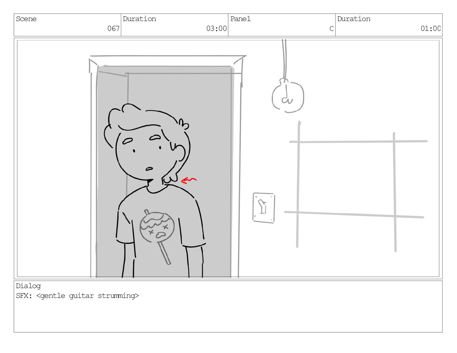 Scene 067 Duration 03:00 Panel C Duration 01:00 Dialog SFX: