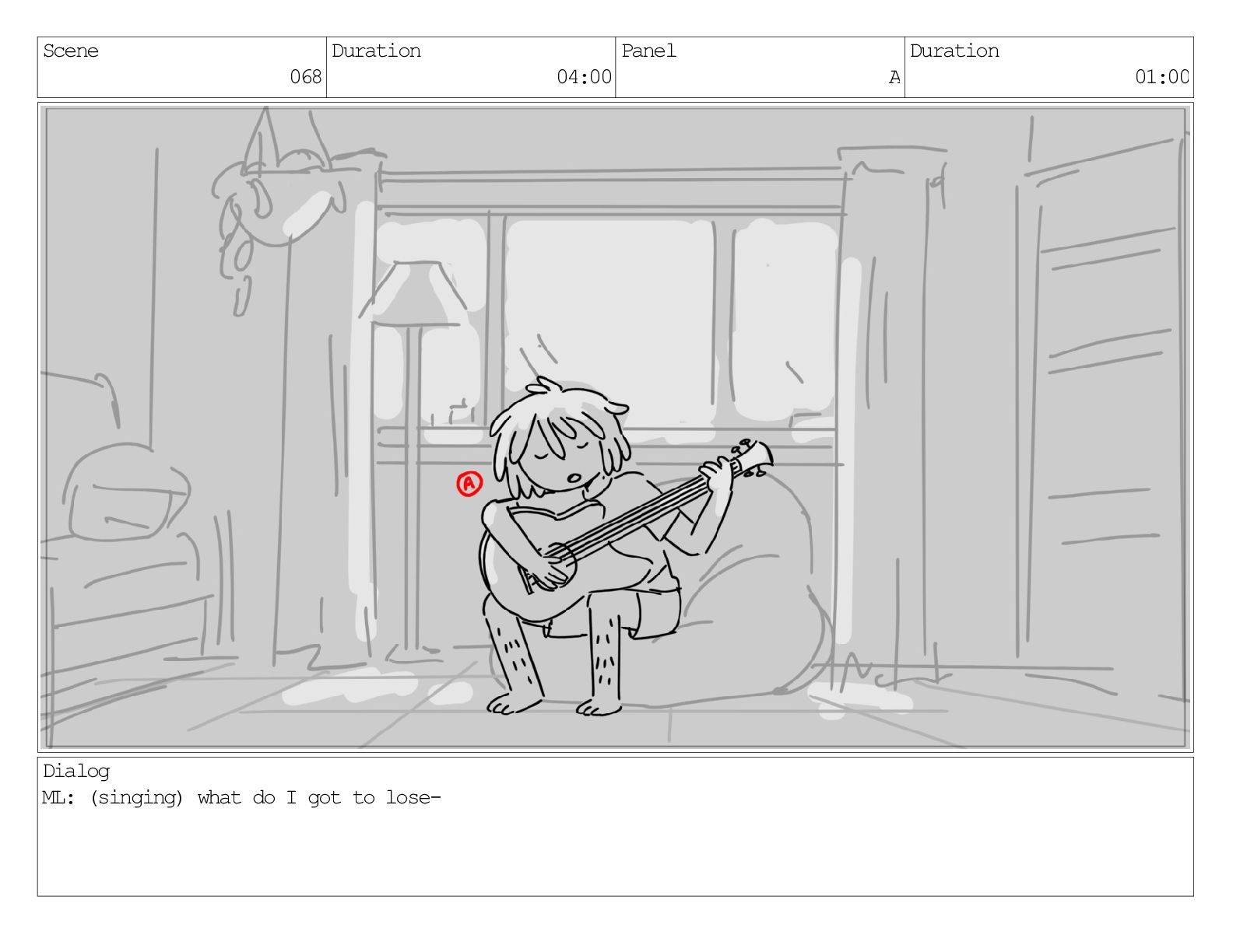 Scene 068 Duration 04:00 Panel A Duration 01:00 Dialog ML: