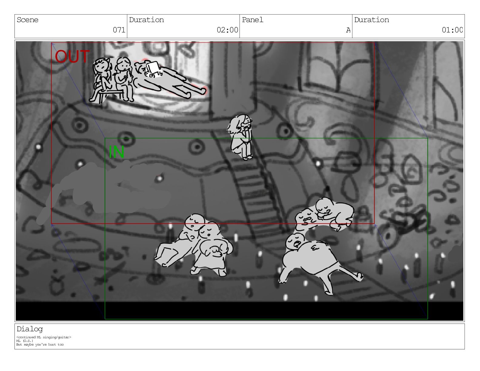 Scene 071 Duration 02:00 Panel A Duration 01:00 Dialog <continued