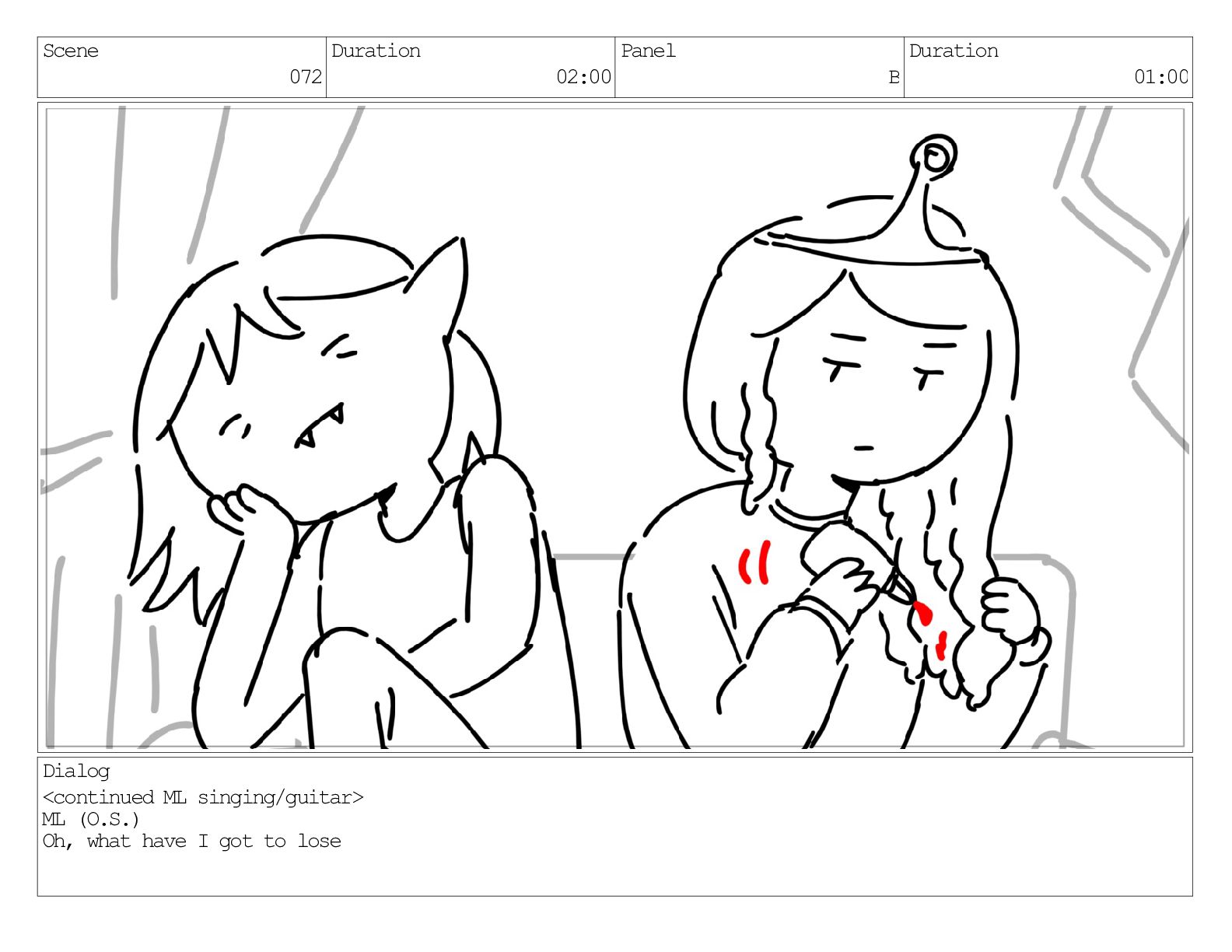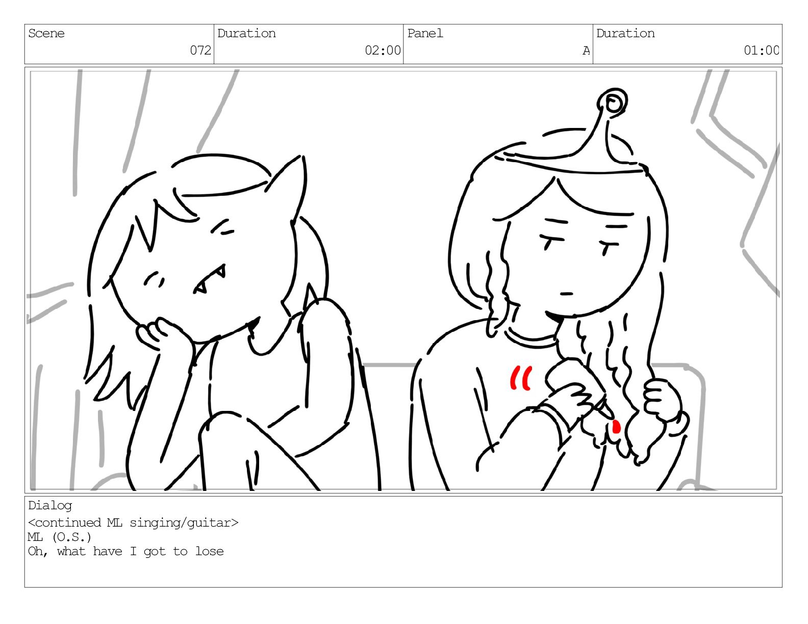 Scene 072 Duration 02:00 Panel A Duration 01:00 Dialog <continued