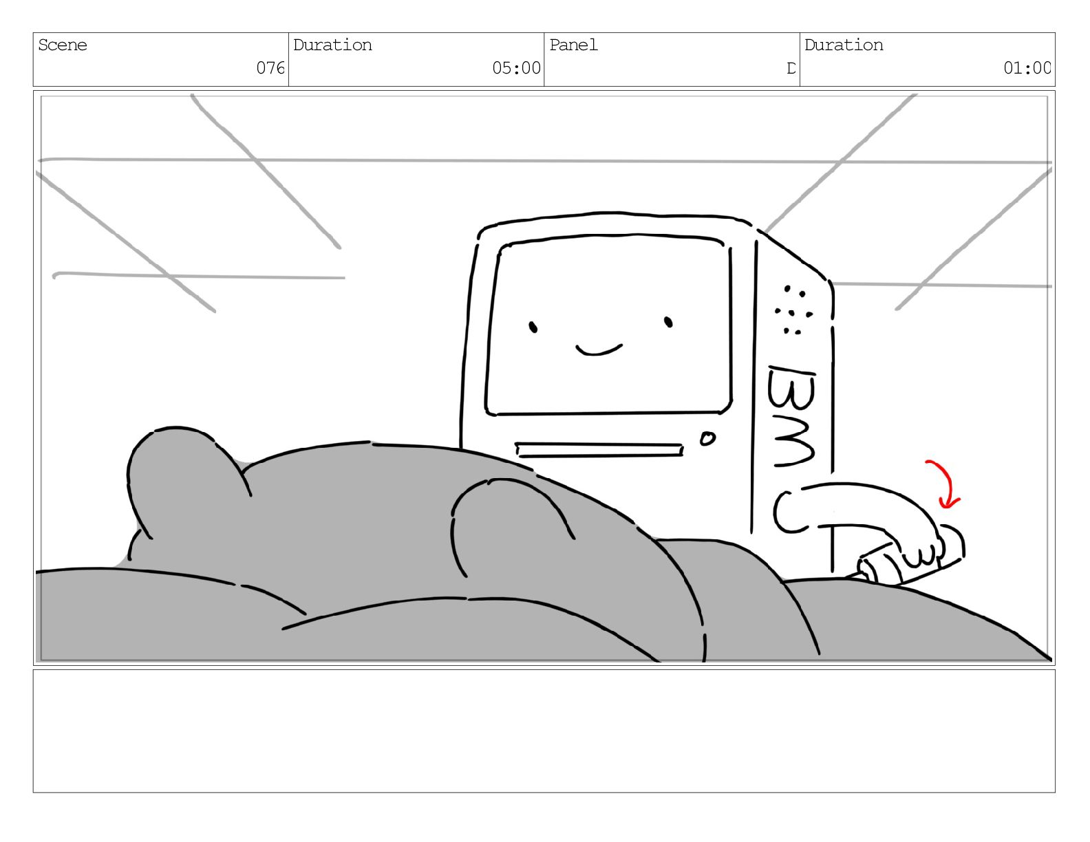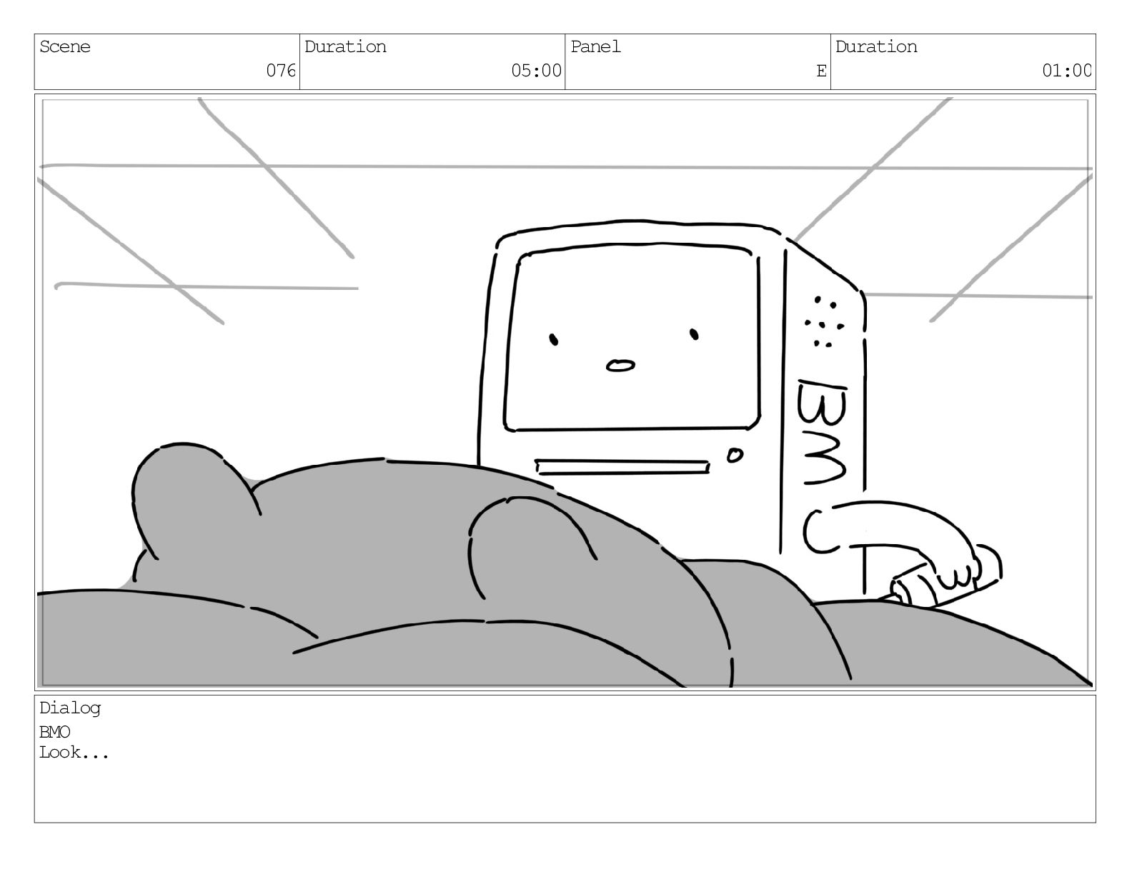 Scene 076 Duration 05:00 Panel E Duration 01:00 Dialog BMO