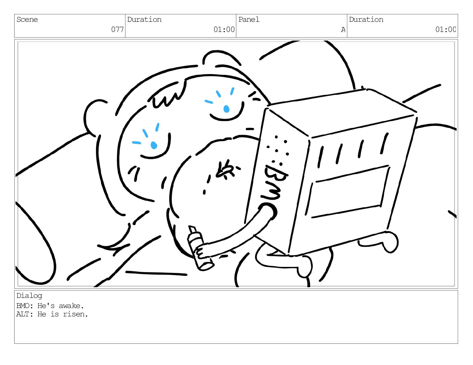 Scene 077 Duration 01:00 Panel A Duration 01:00 Dialog BMO: