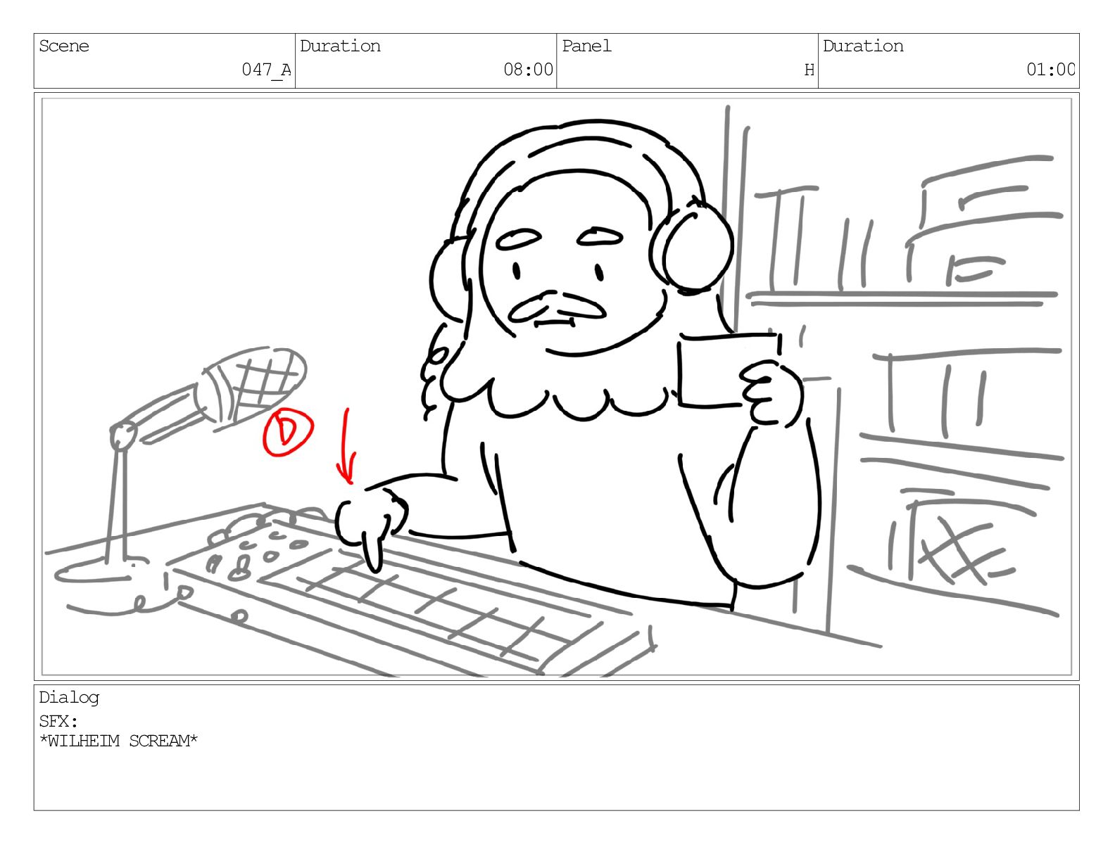 Scene 062 Duration 08:00 Panel D Duration 01:00 Dialog SFX: