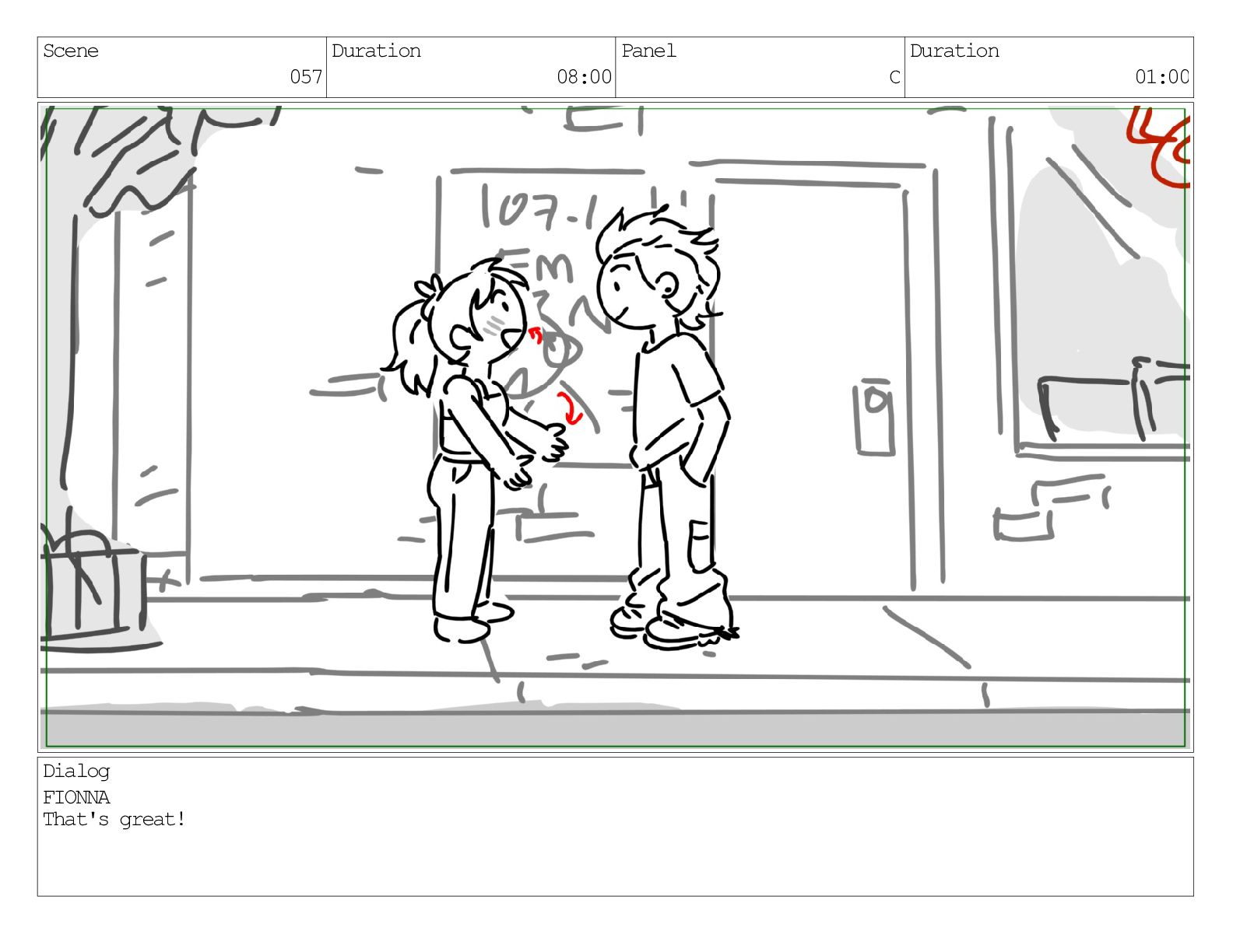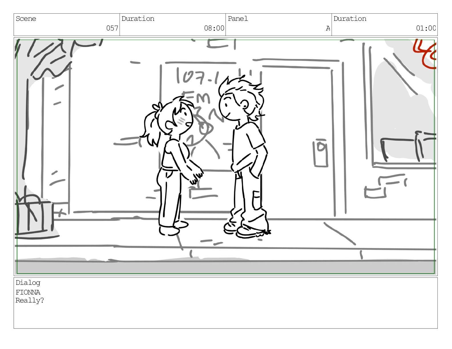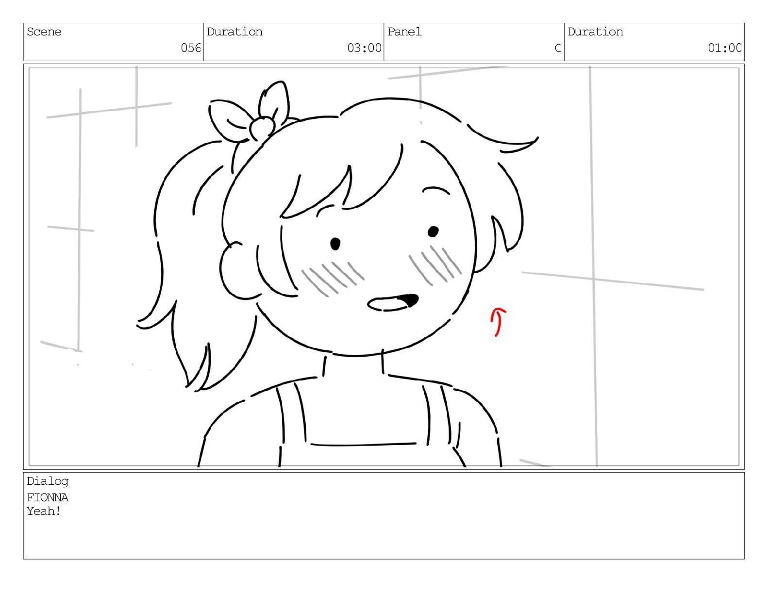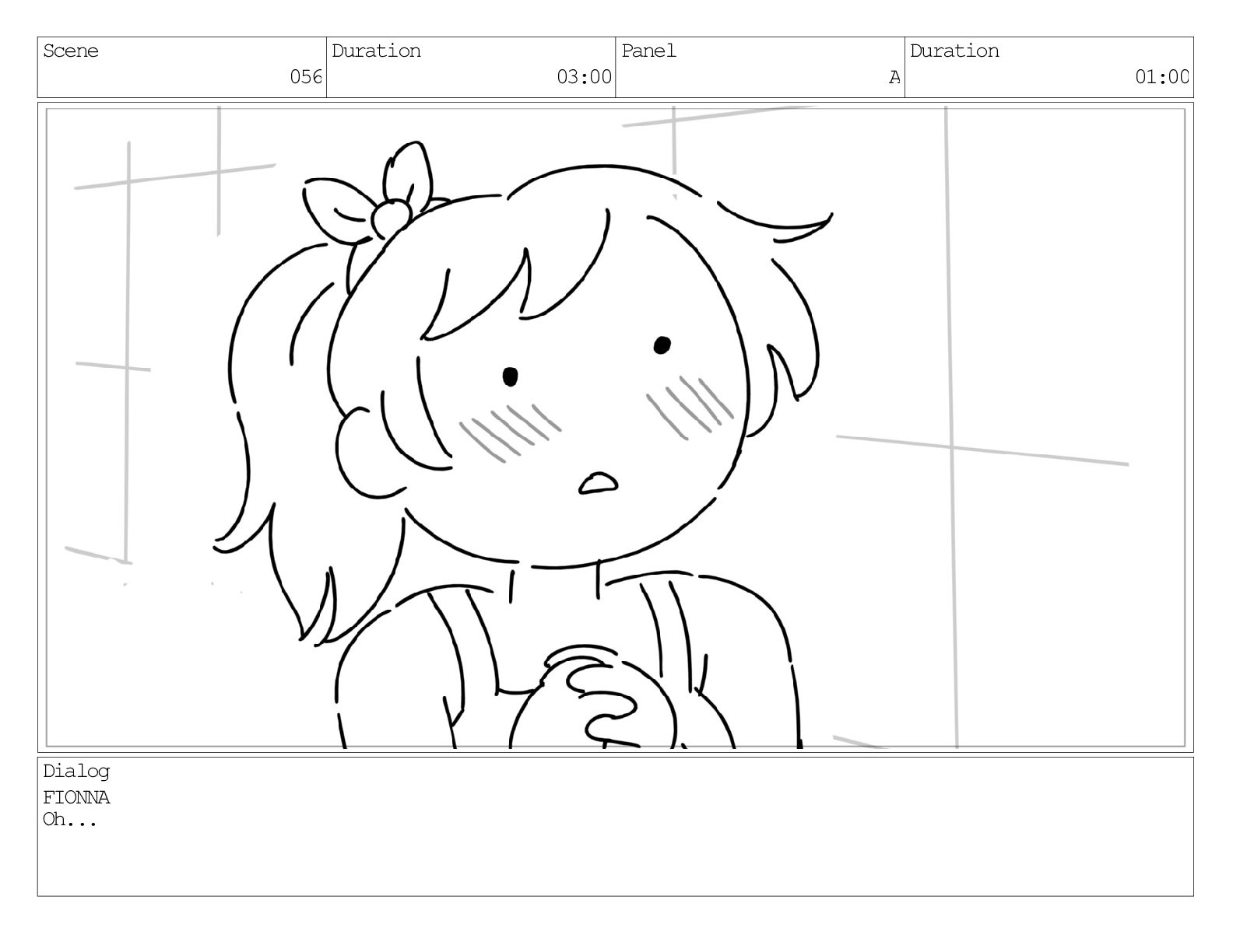 Scene 057 Duration 08:00 Panel C Duration 01:00 Dialog FIONNA