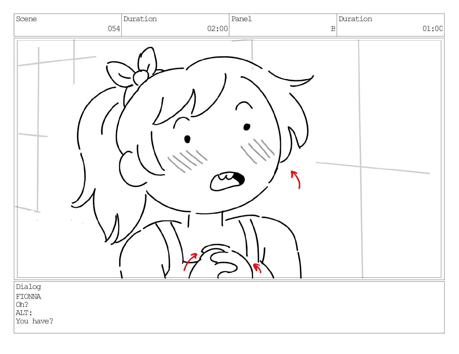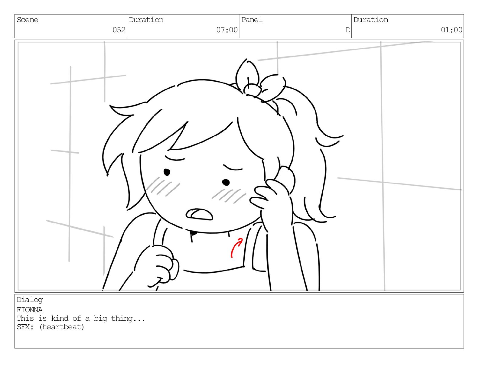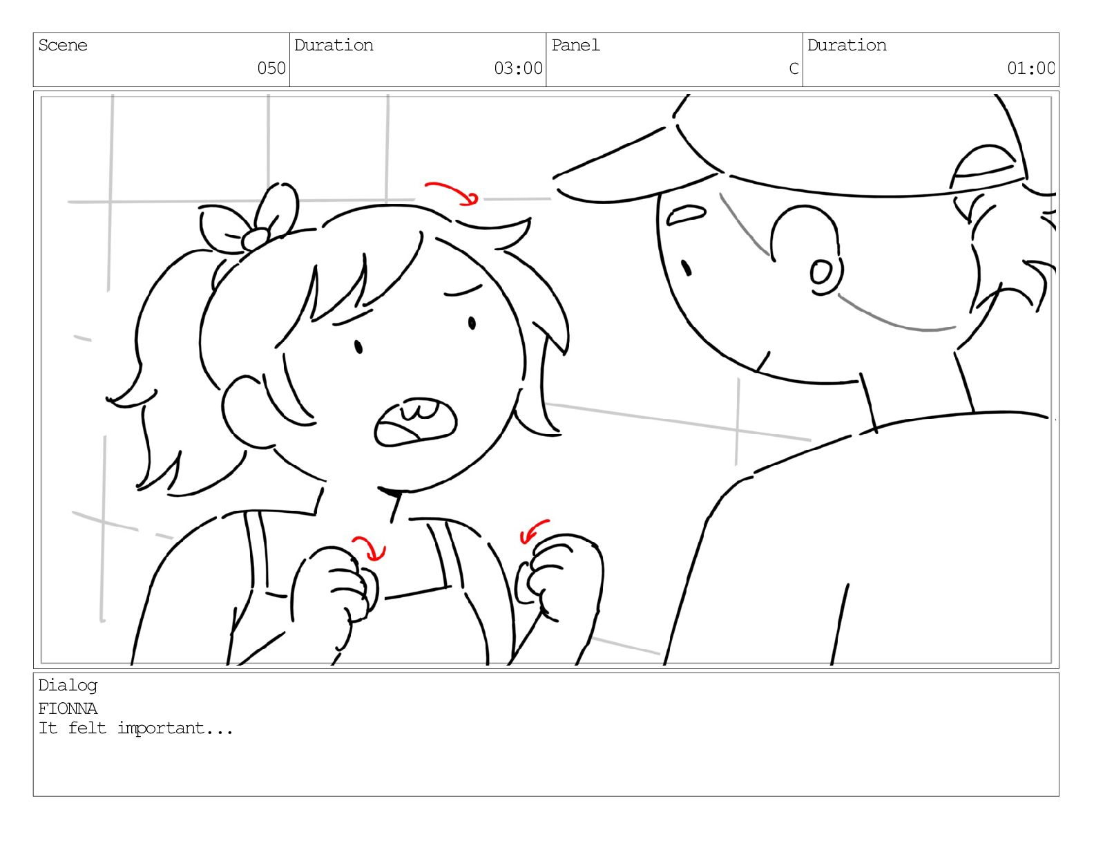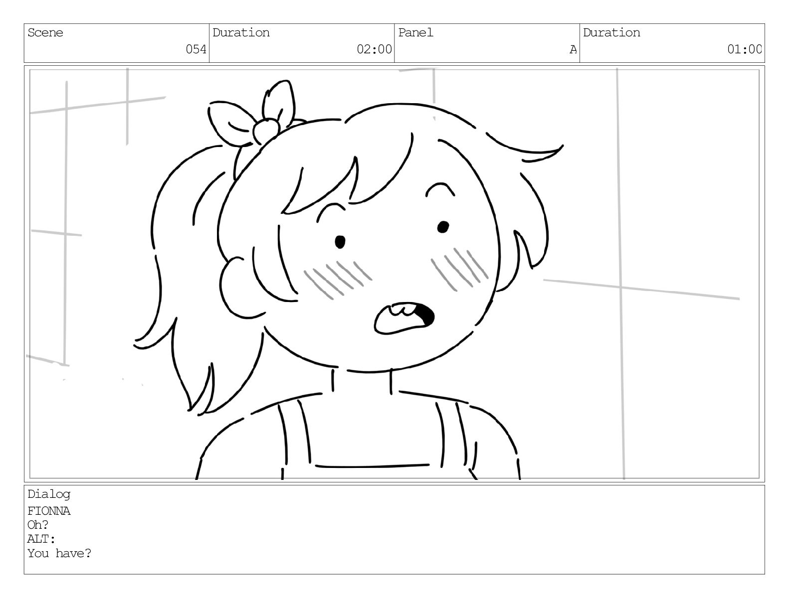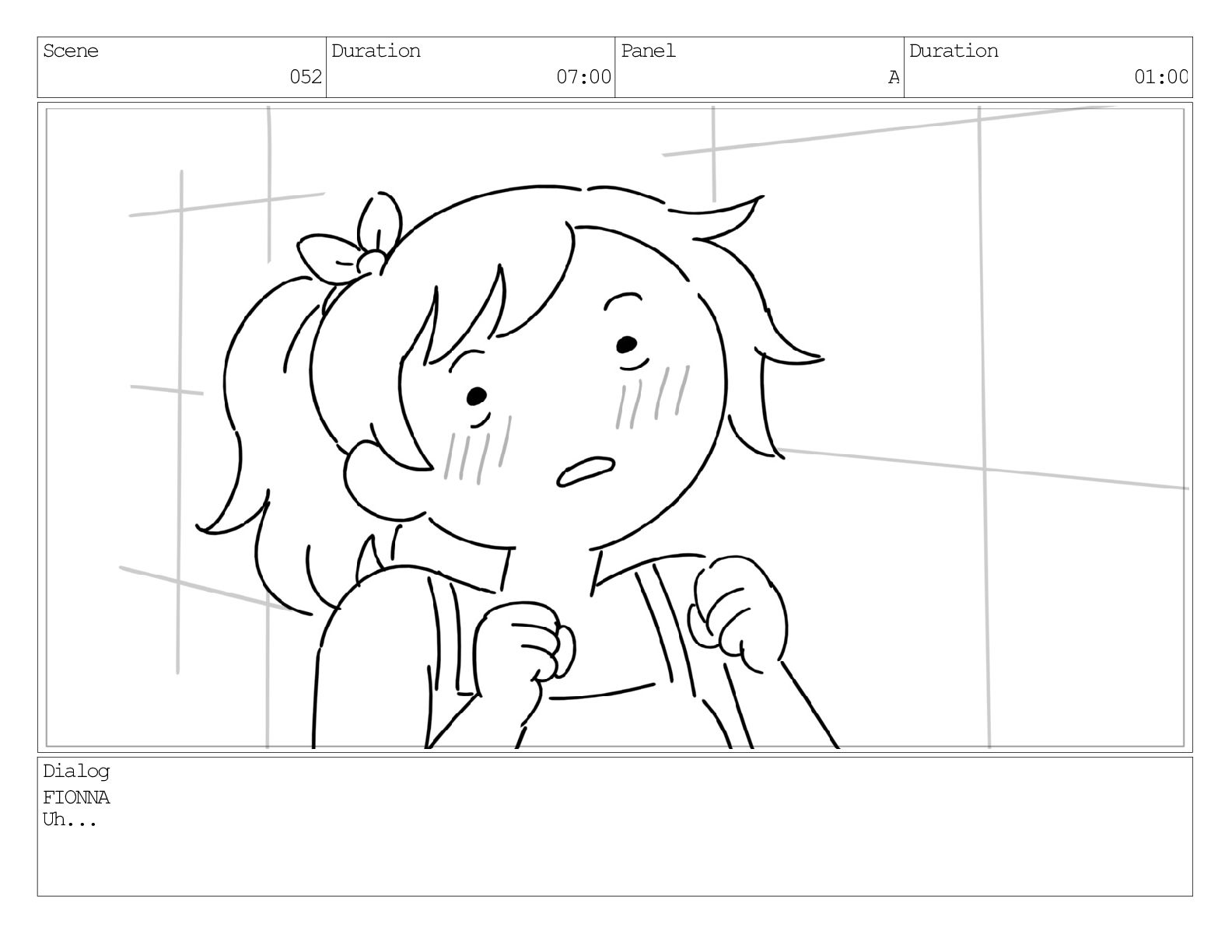 Scene 057 Duration 08:00 Panel C Duration 01:00 Dialog FIONNA
