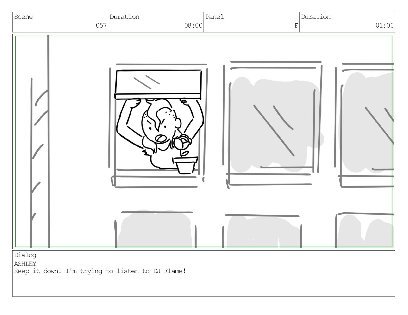 Scene 057 Duration 08:00 Panel E Duration 01:00 Dialog ASHLEY