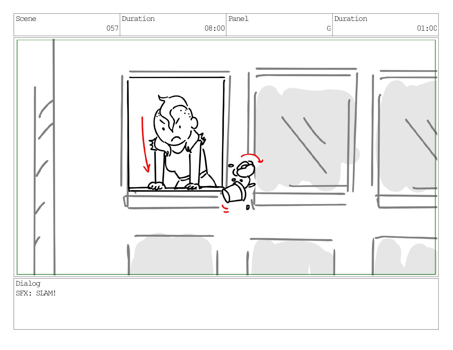 Scene 057 Duration 08:00 Panel G Duration 01:00 Dialog SFX: