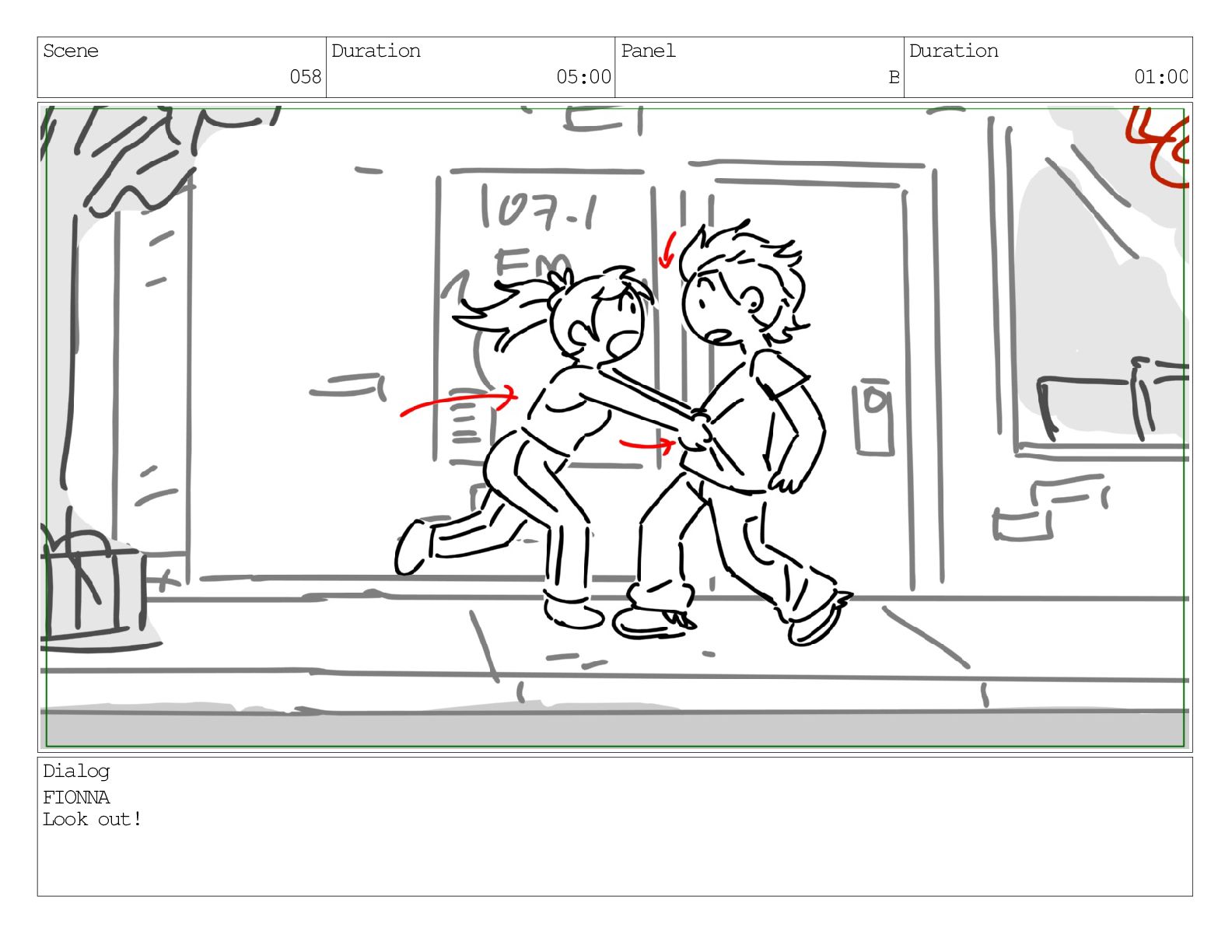 Scene 058 Duration 05:00 Panel B Duration 01:00 Dialog FIONNA