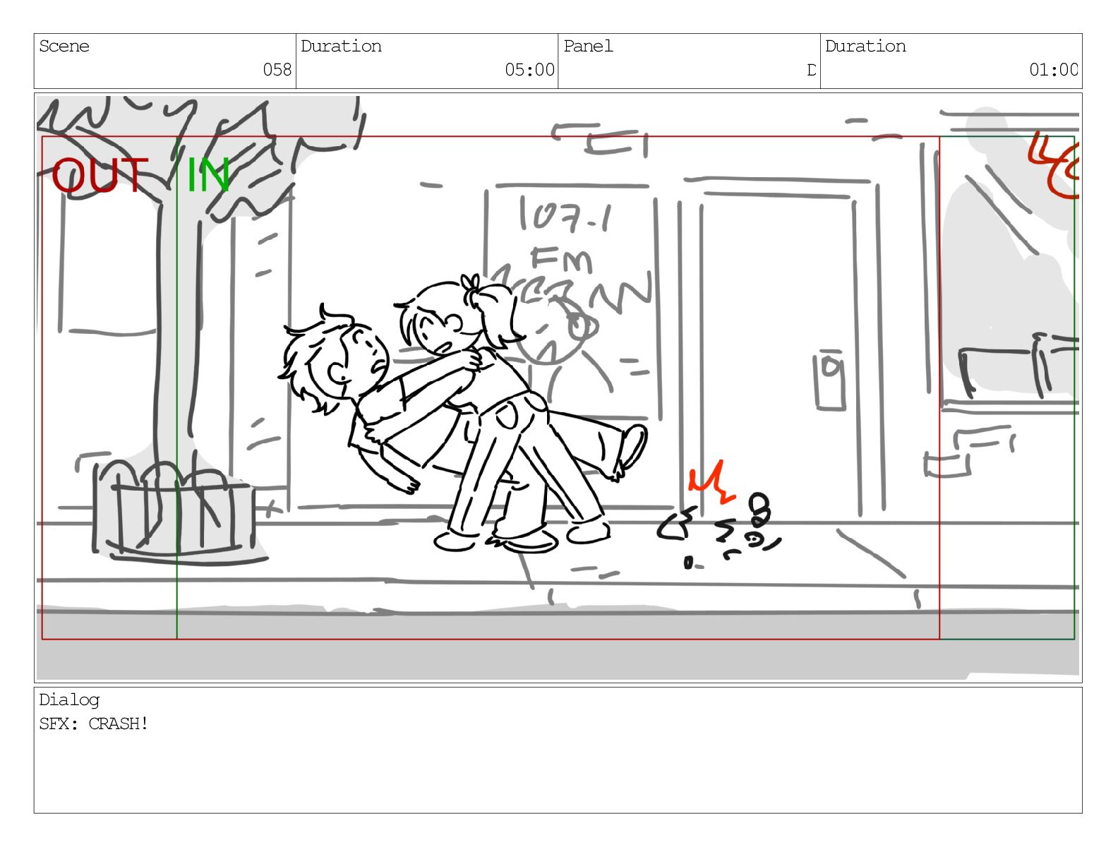 Scene 058 Duration 05:00 Panel D Duration 01:00 Dialog SFX: