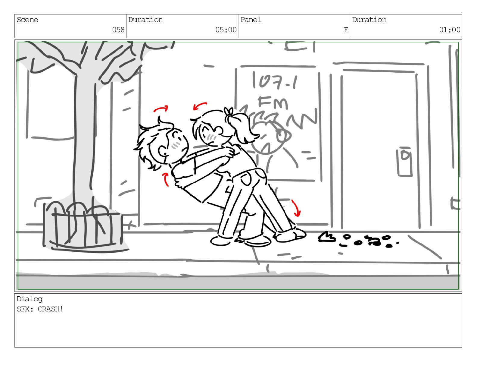 Scene 058 Duration 05:00 Panel E Duration 01:00 Dialog SFX: