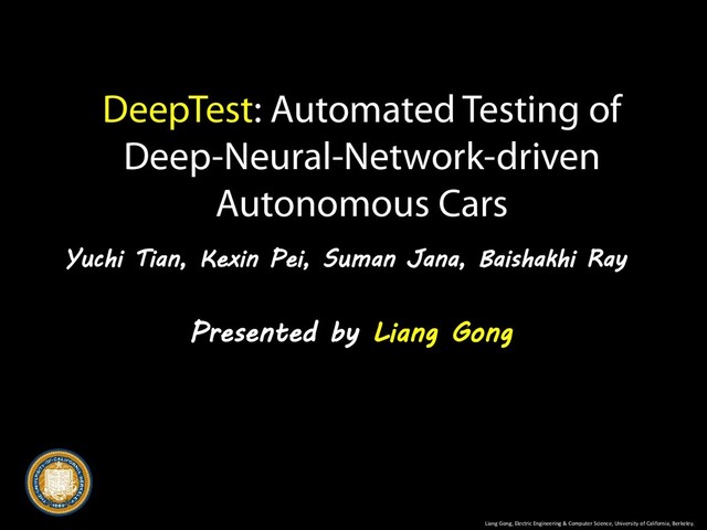 California, Berkeley. Empirically demonstrate that: 13 Changes in Neuron Coverage Changes in the Actions of Self- driving Cars correlate • Generate tests to increase neuron coverage. • Simulate realistic scenarios: fog, rain, angle, scale etc. • Found thousands of erroneous behaviors