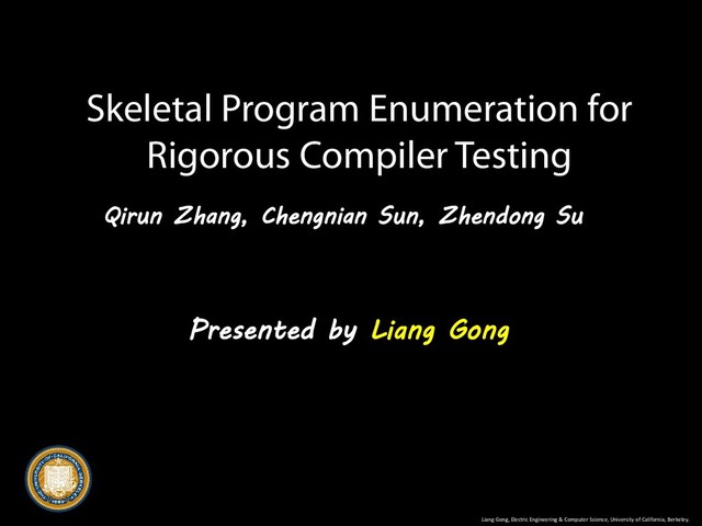 1. Presented by Liang Gong Skeletal Program Enumeration for Rigorous Compiler