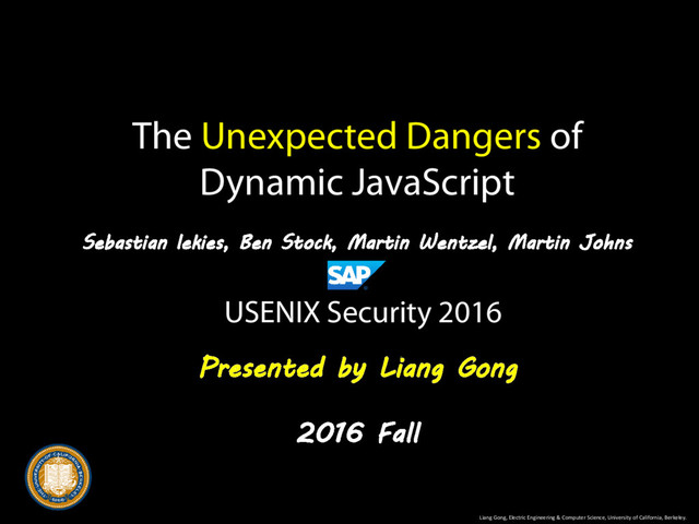 Dynamic JavaScript Liang Gong, Electric Engineering & Computer Science, University of California, Berkeley. Sebastian lekies, Ben Stock, Martin Wentzel, Martin Johns USENIX Security 2016
