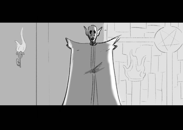An action storyboard showcasing a fight between a barbarian and a vampire.