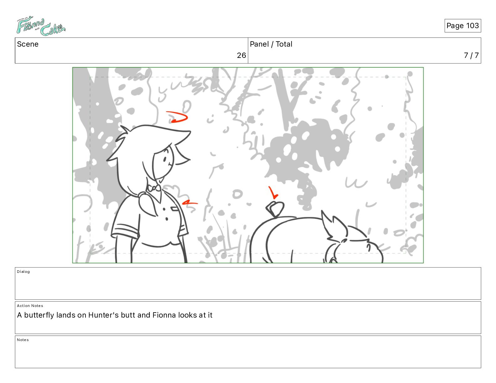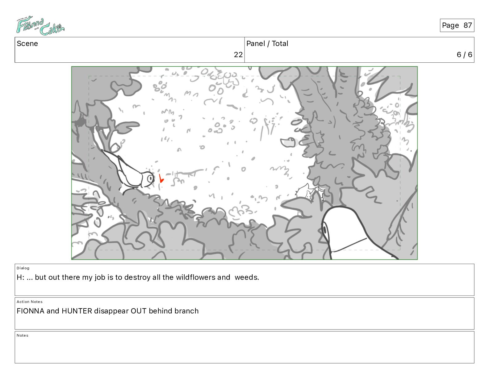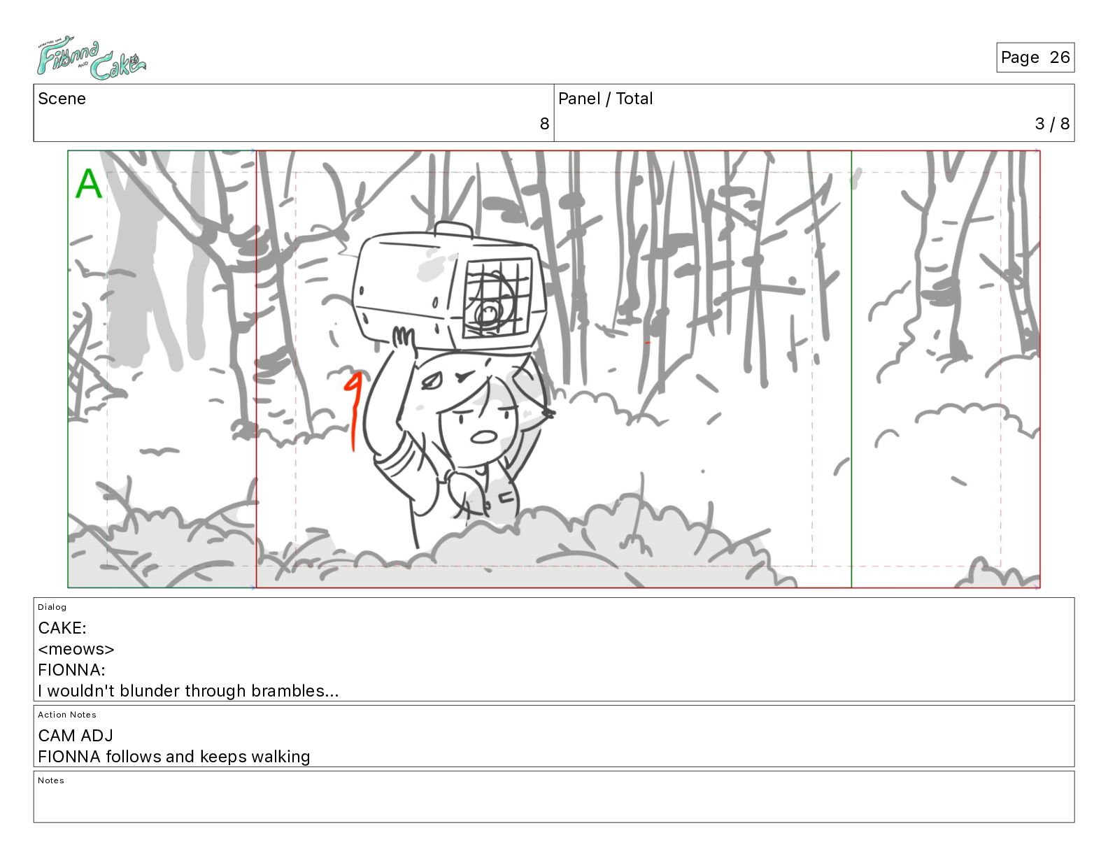 <meows> FIONNA: I wouldn't blunder through brambles... Action Notes CAM ADJ FIONNA follows and keeps walking Notes Page 26