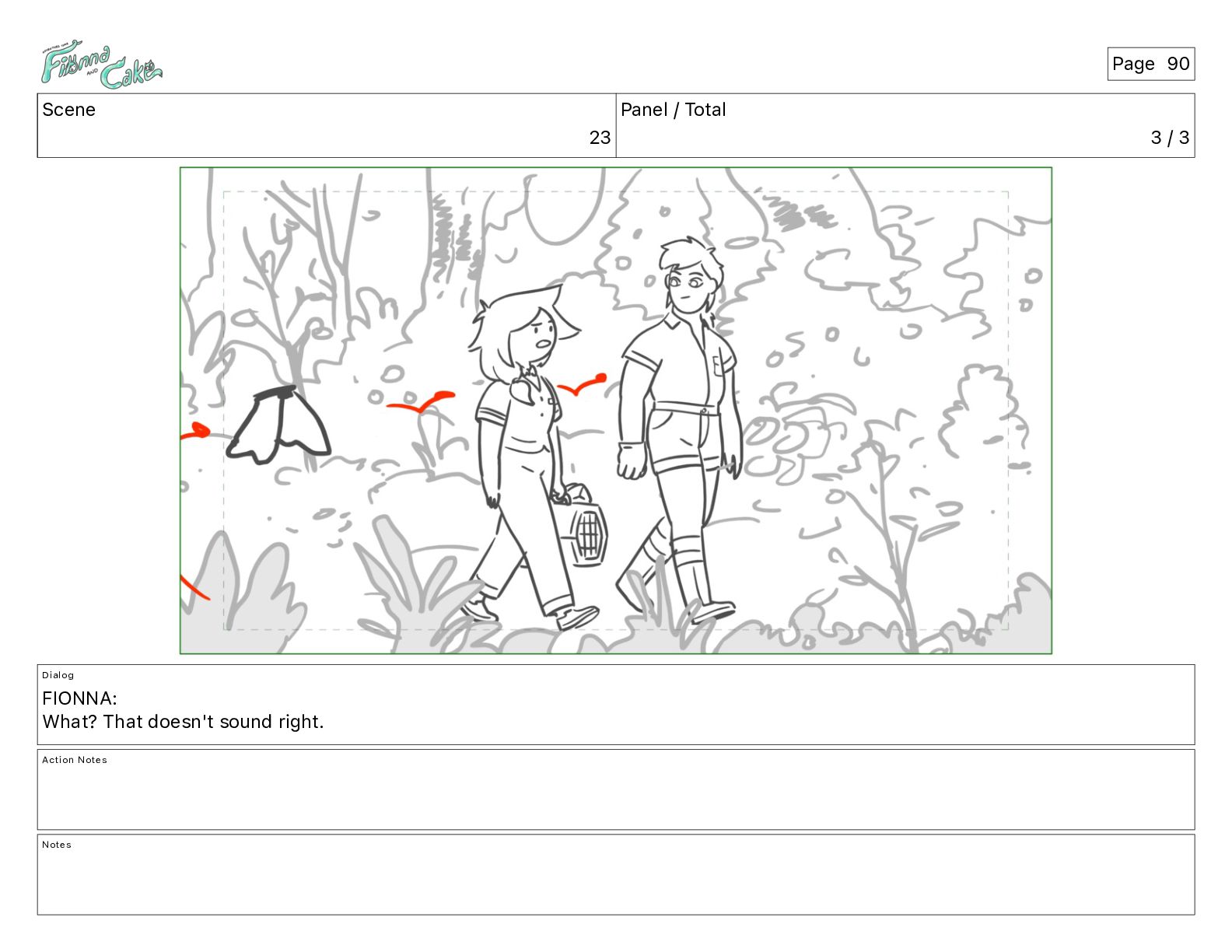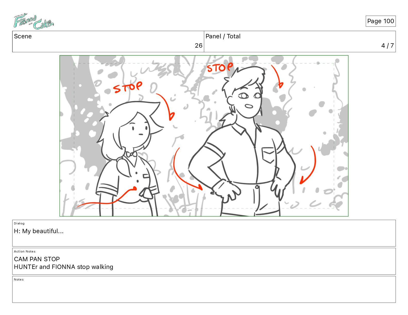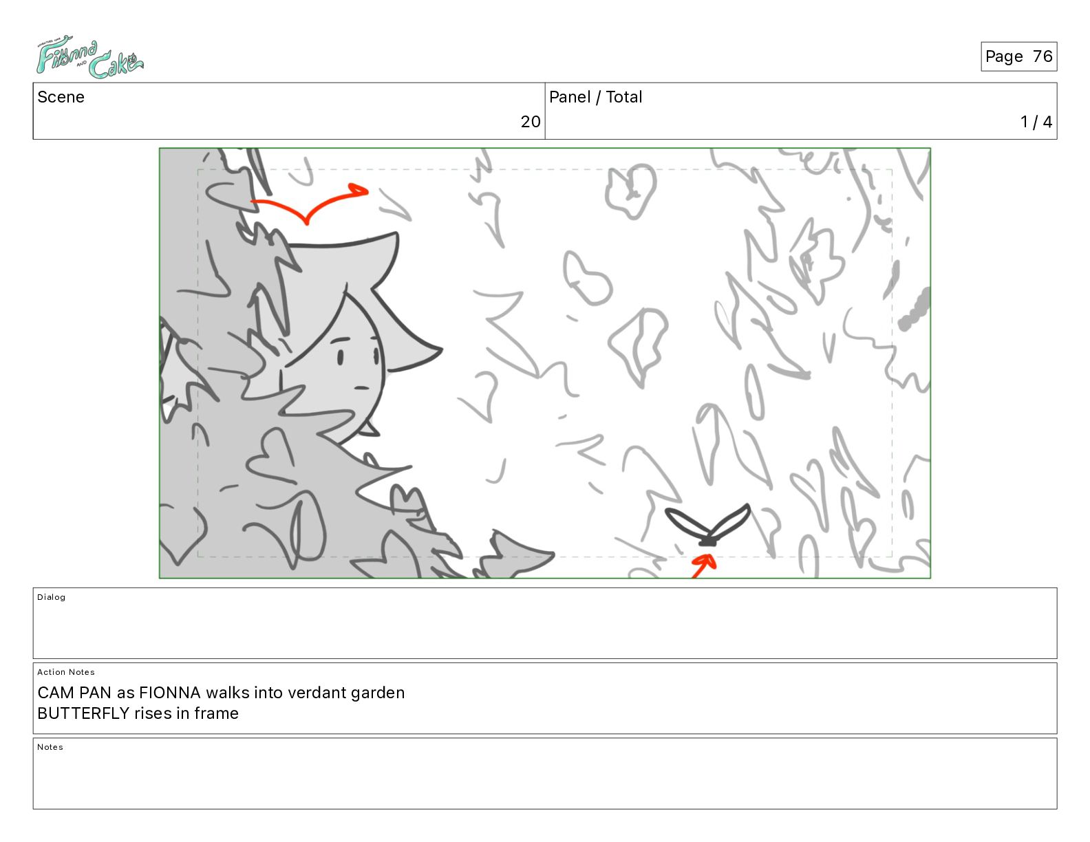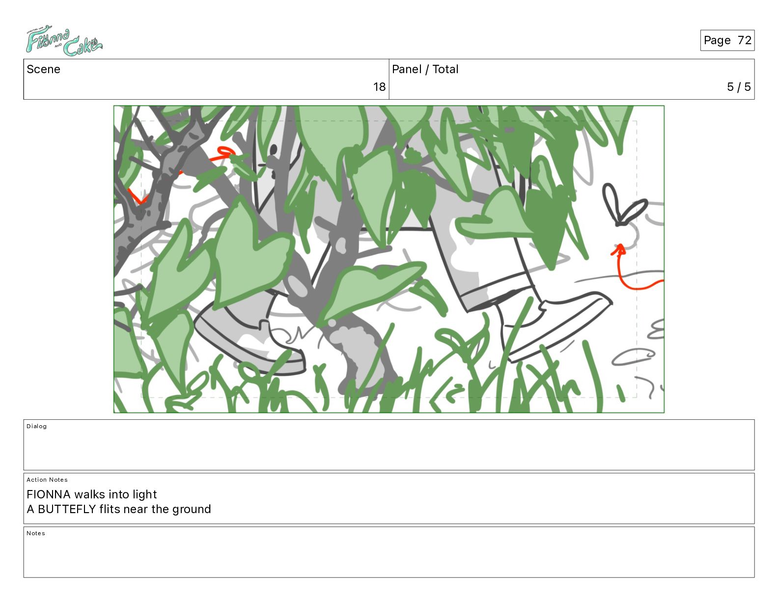 <meows> FIONNA: I wouldn't blunder through brambles... Action Notes CAM ADJ FIONNA follows and keeps walking Notes Page 26