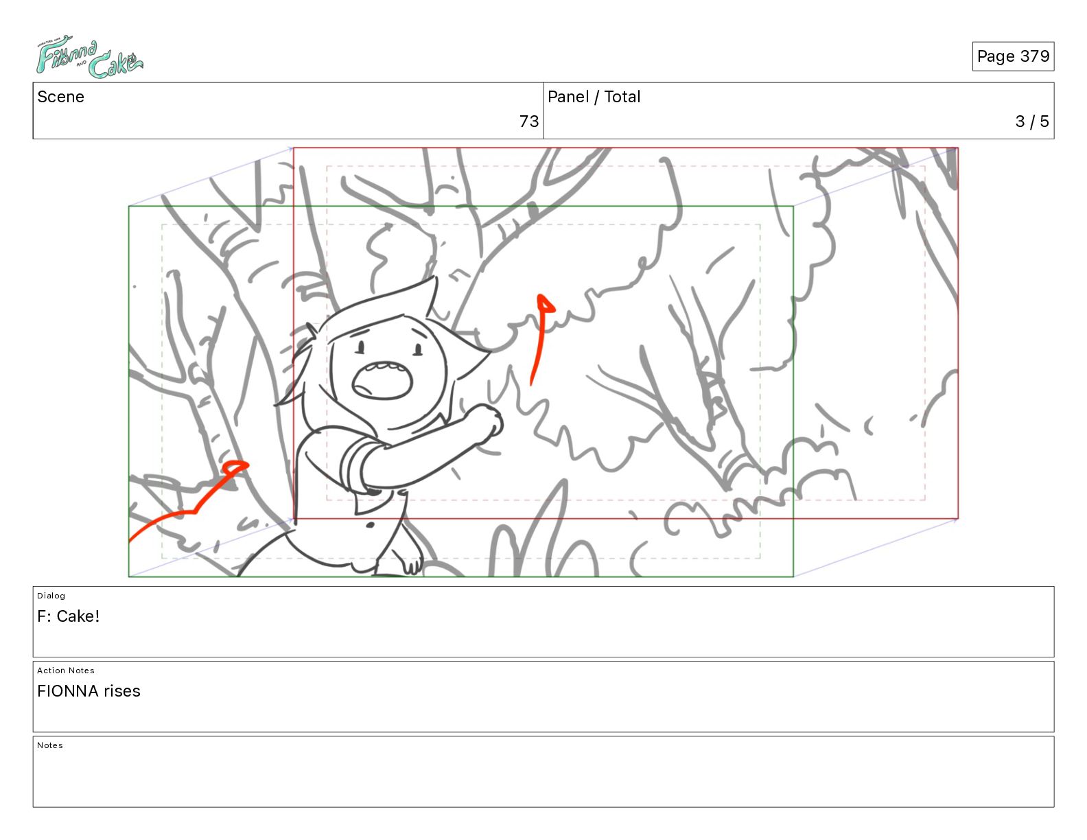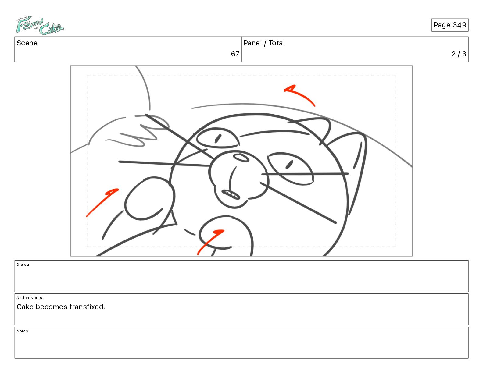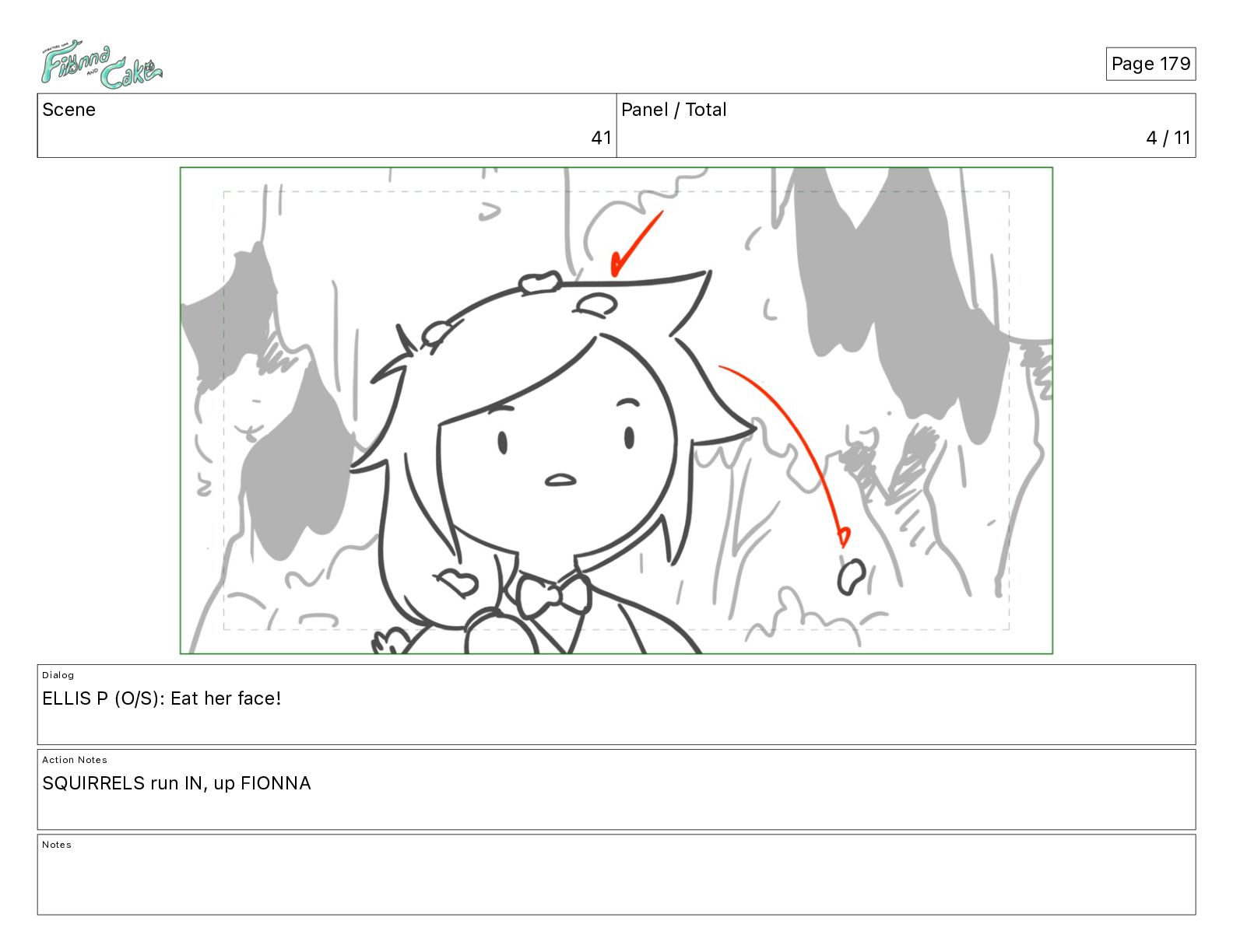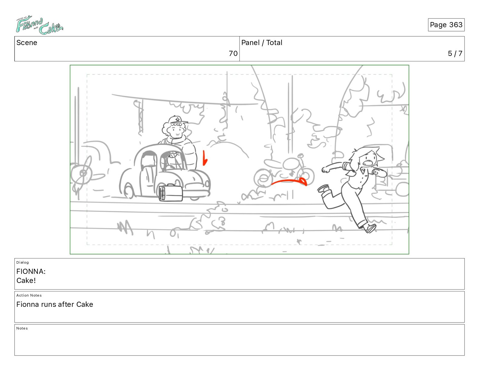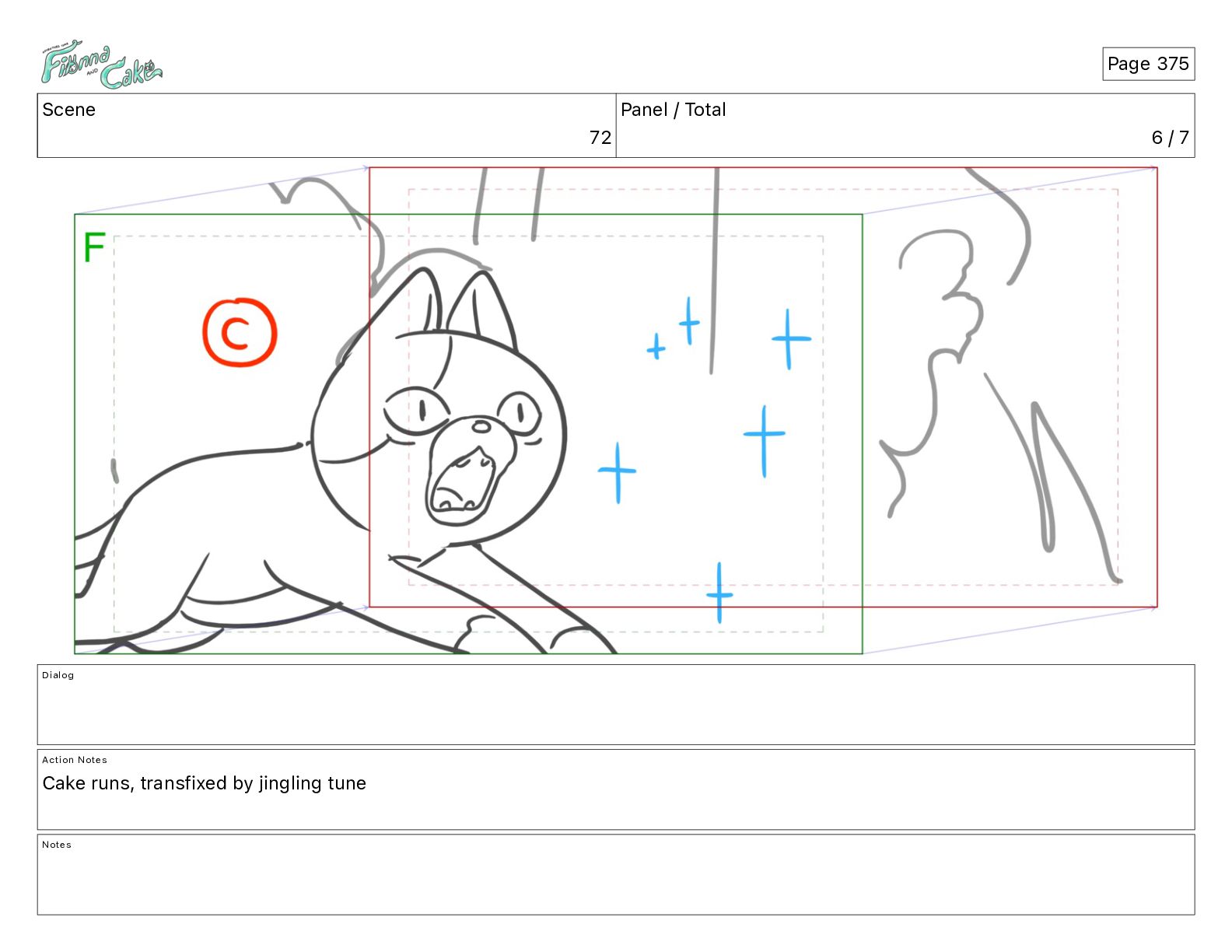 Cake! Action Notes CAM PAN FIONNA runs after Cake Notes Page 377