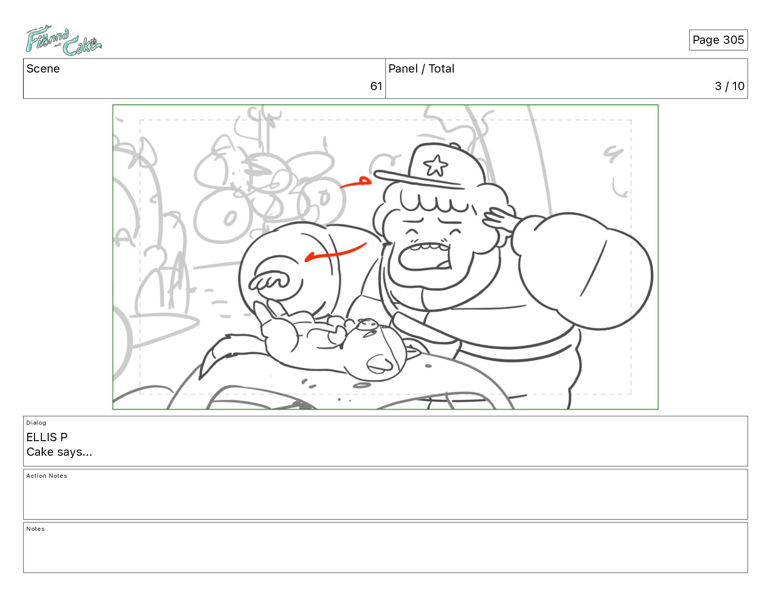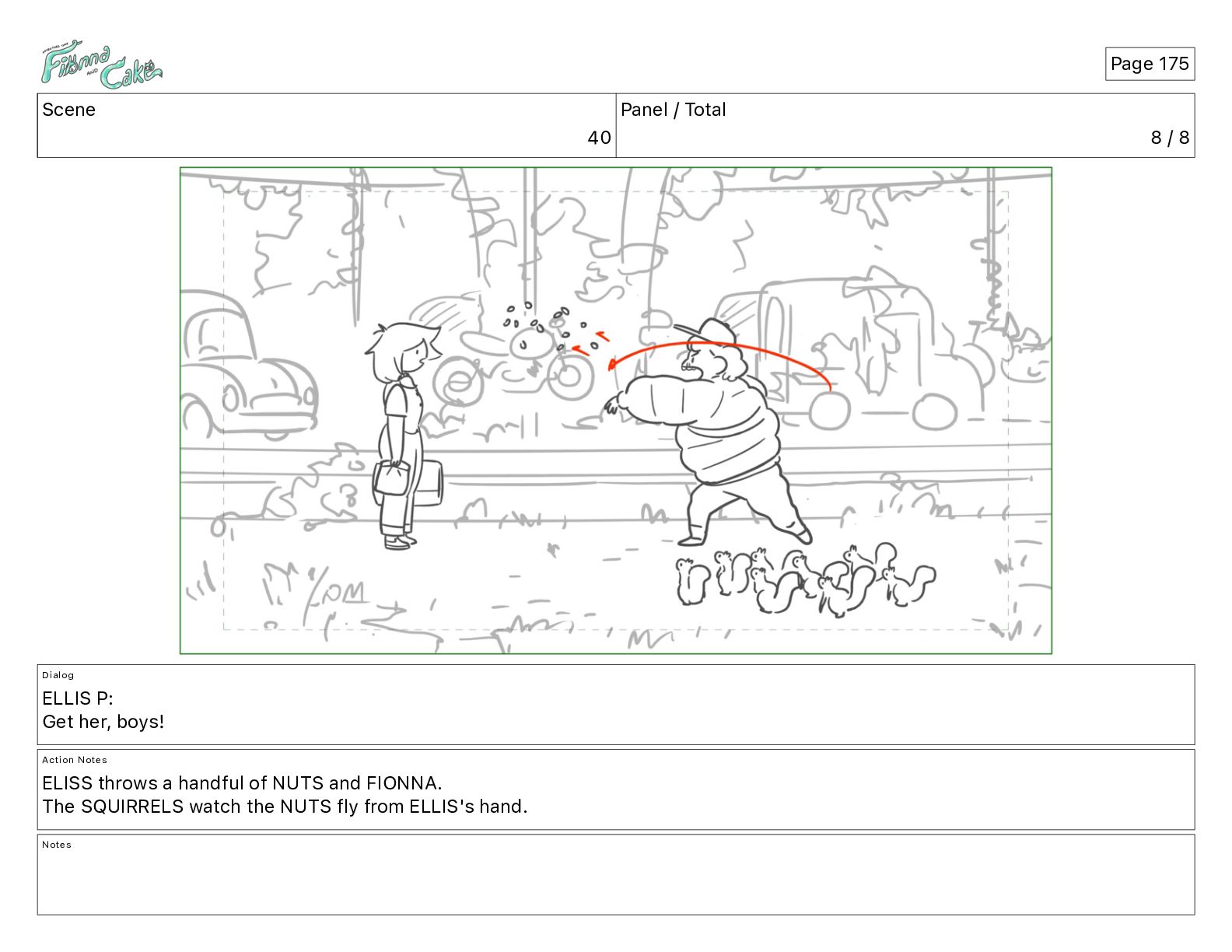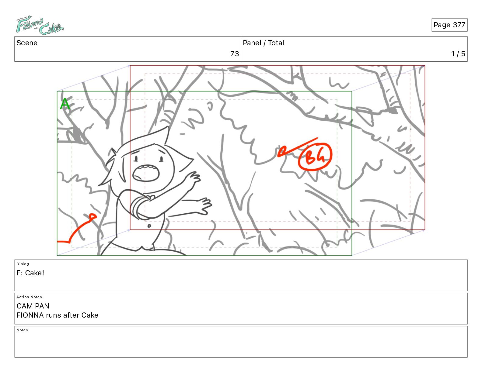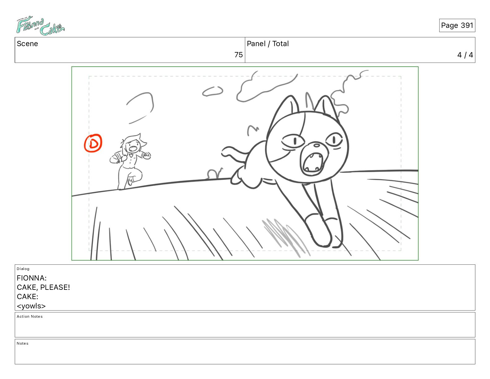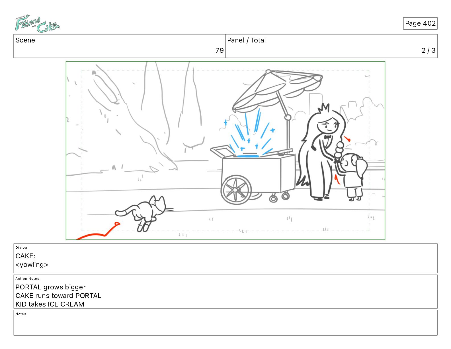 Cake! Action Notes CAM PAN FIONNA runs after Cake Notes Page 377