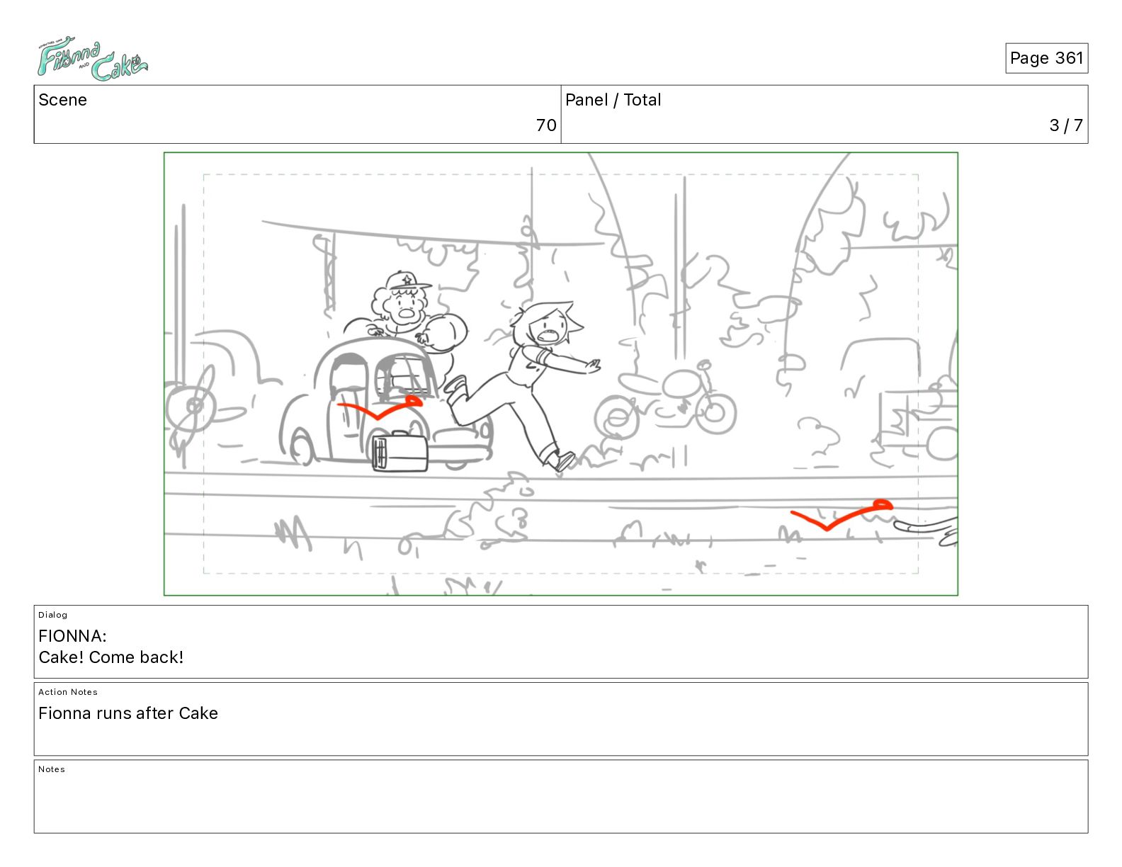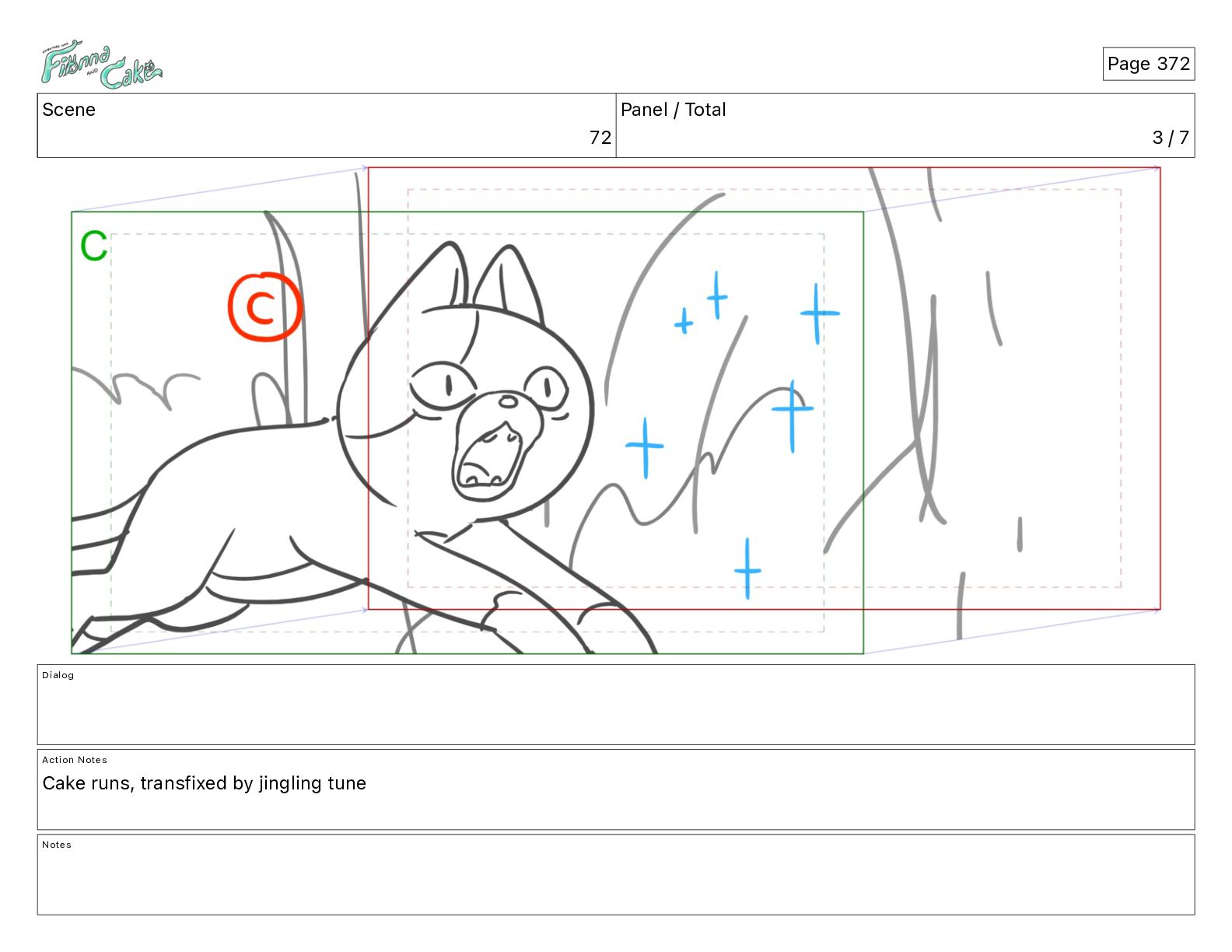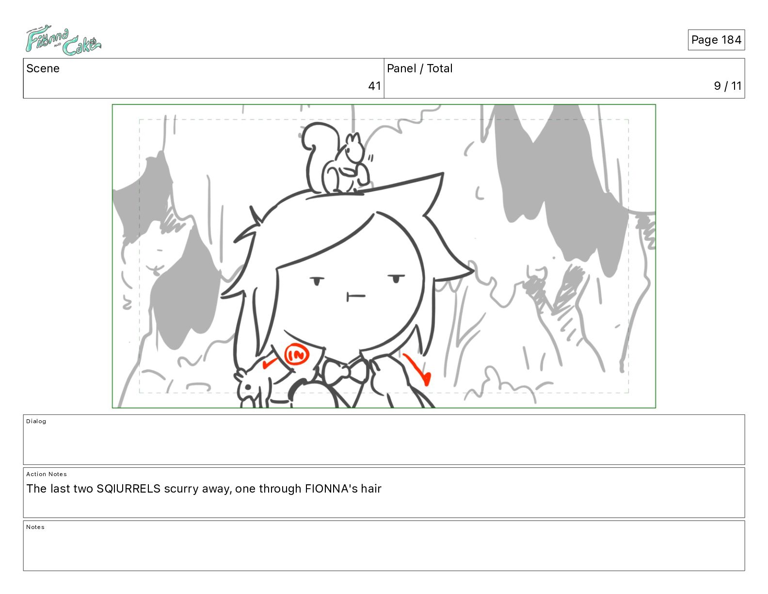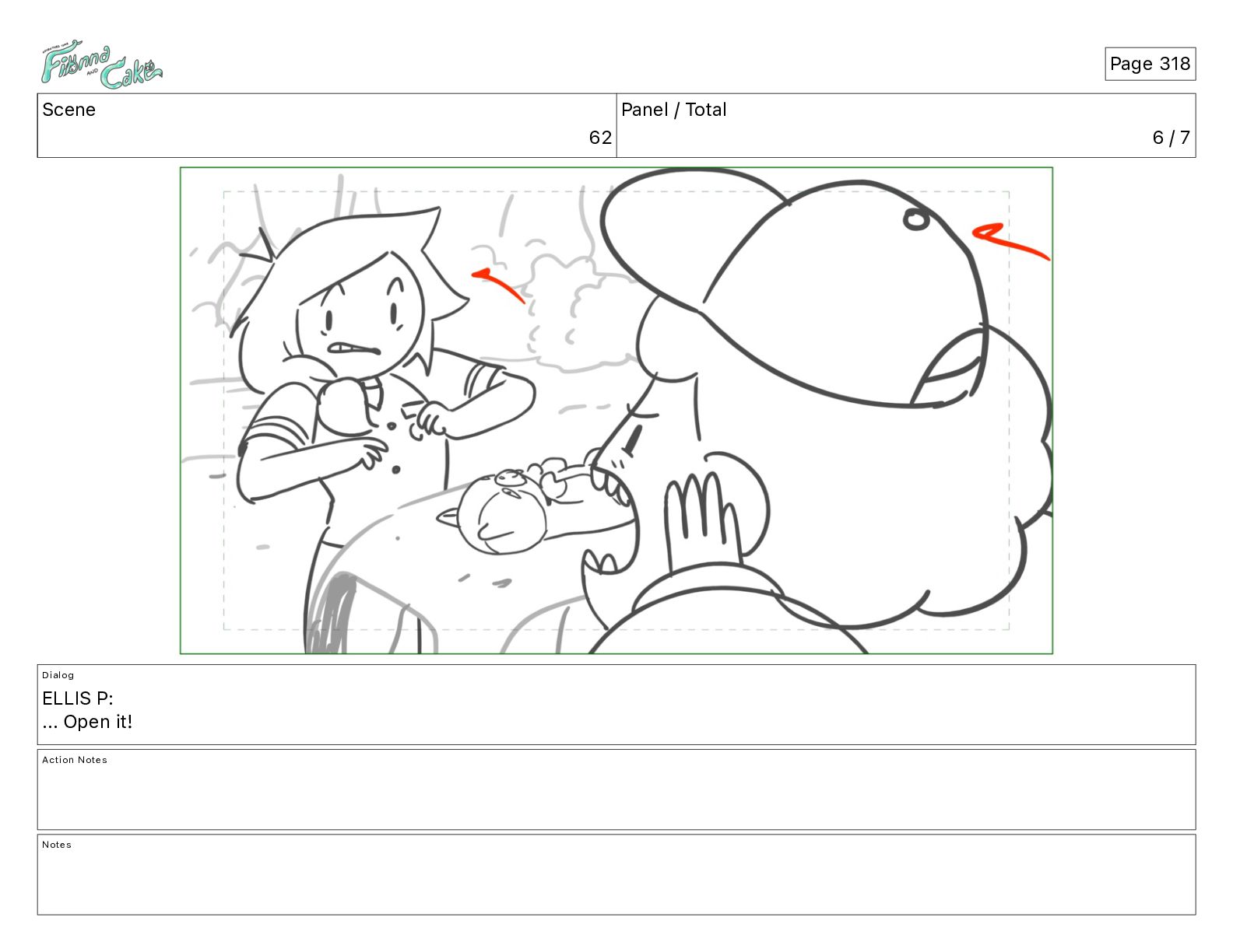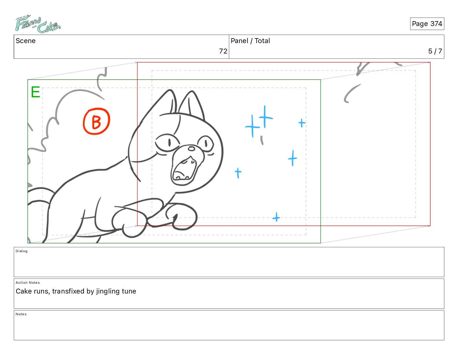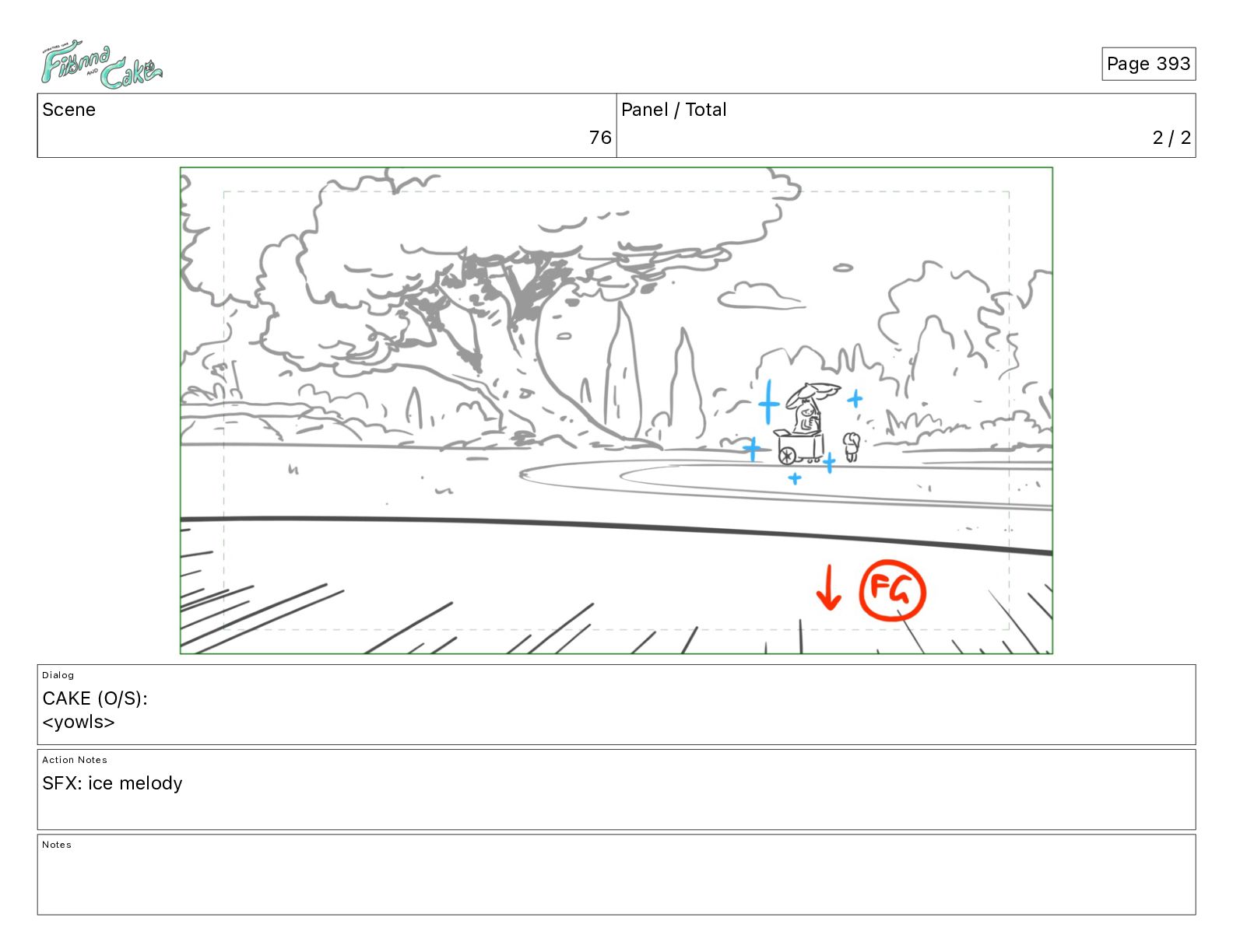 Cake! Action Notes CAM PAN FIONNA runs after Cake Notes Page 377