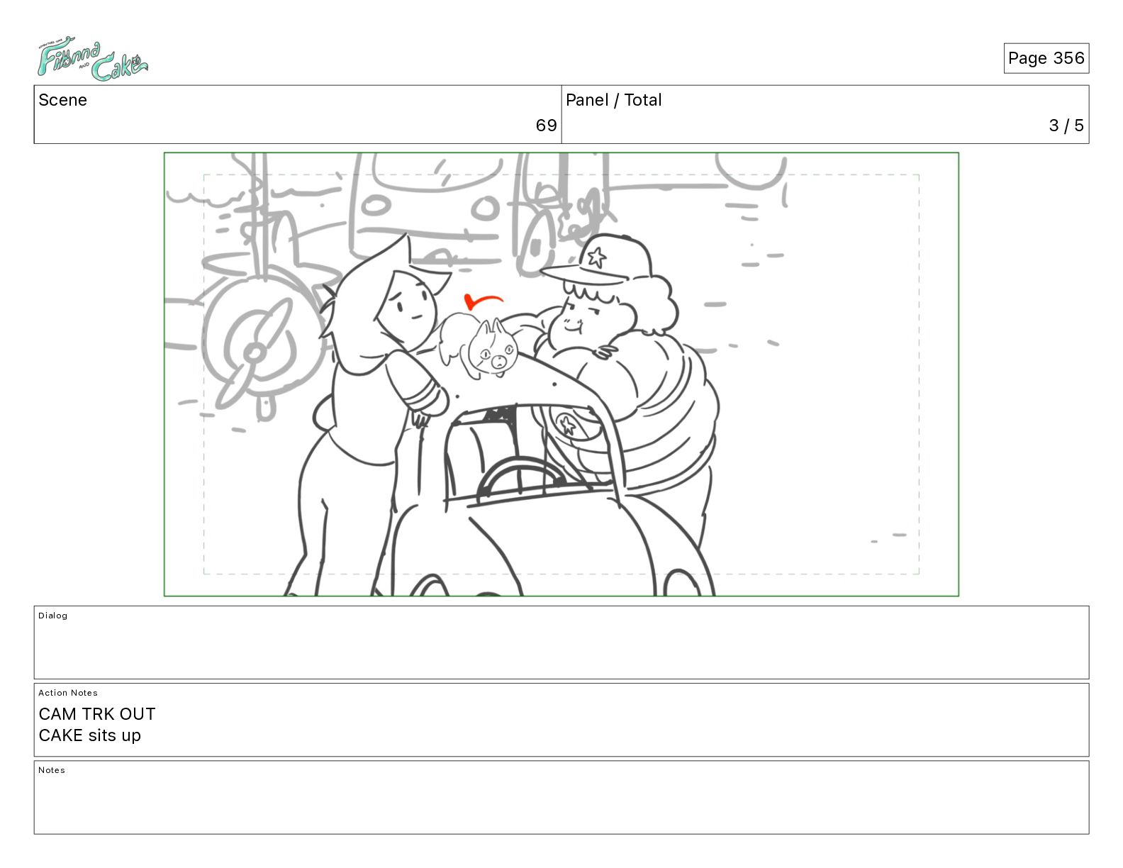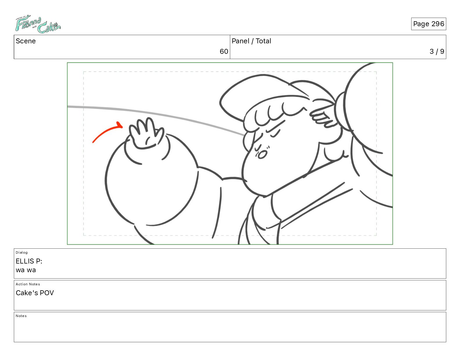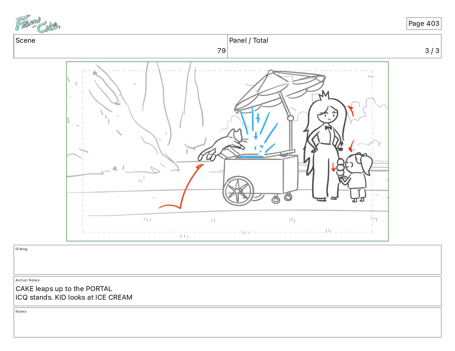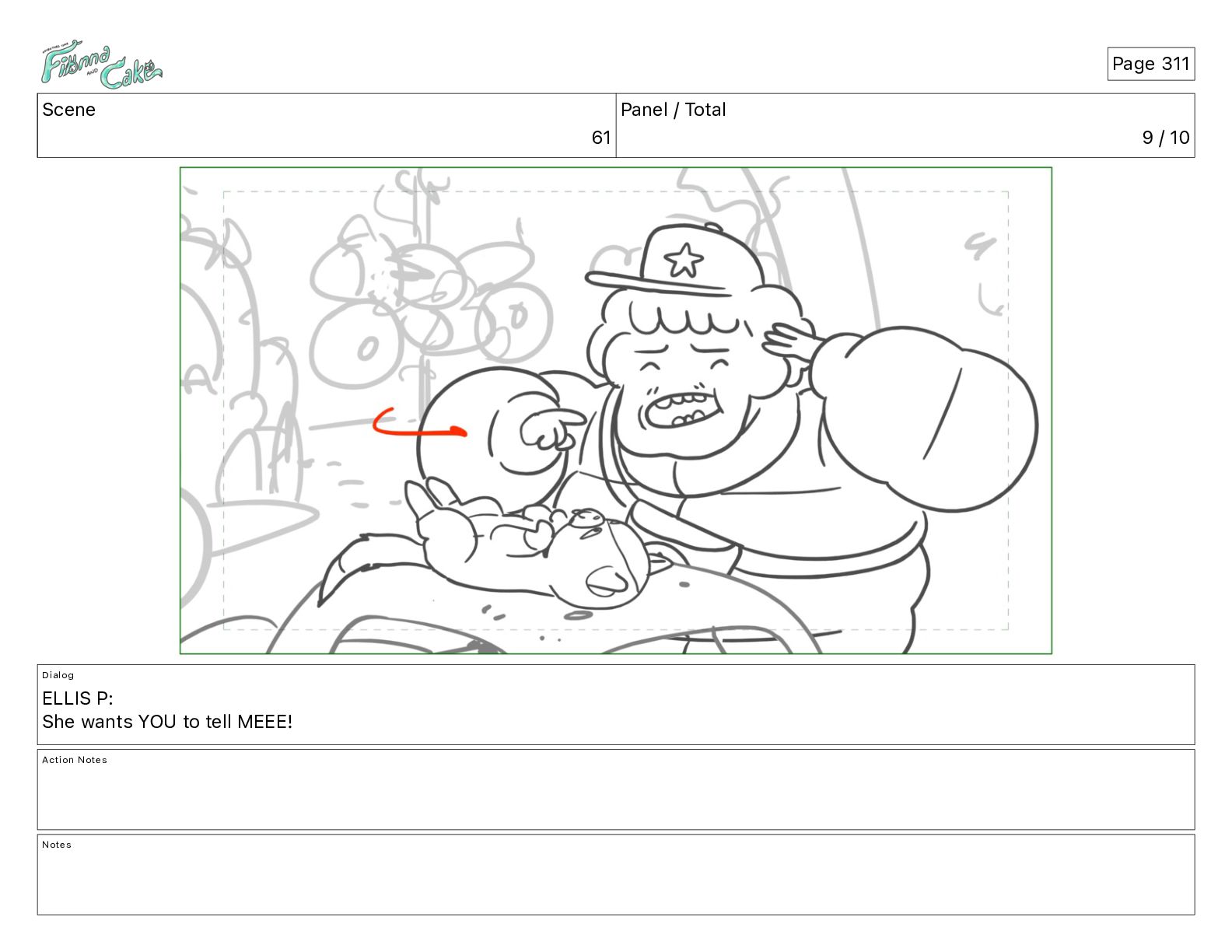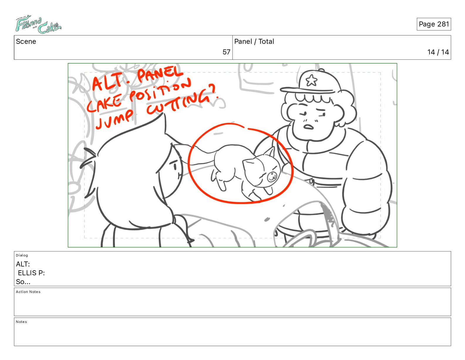 Cake! Action Notes CAM PAN FIONNA runs after Cake Notes Page 377