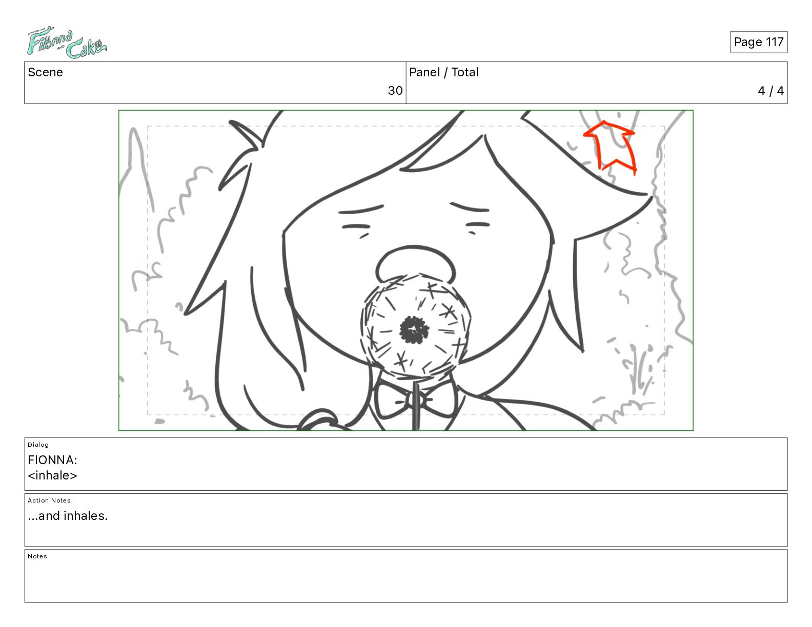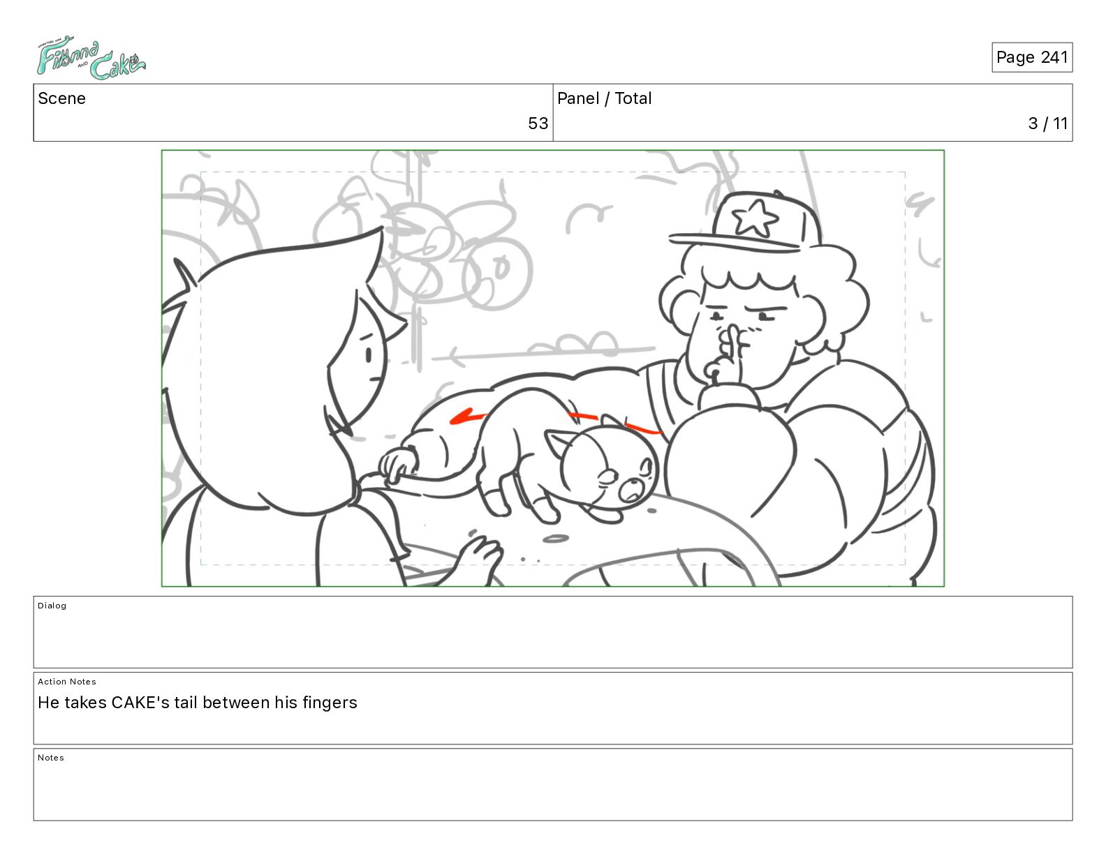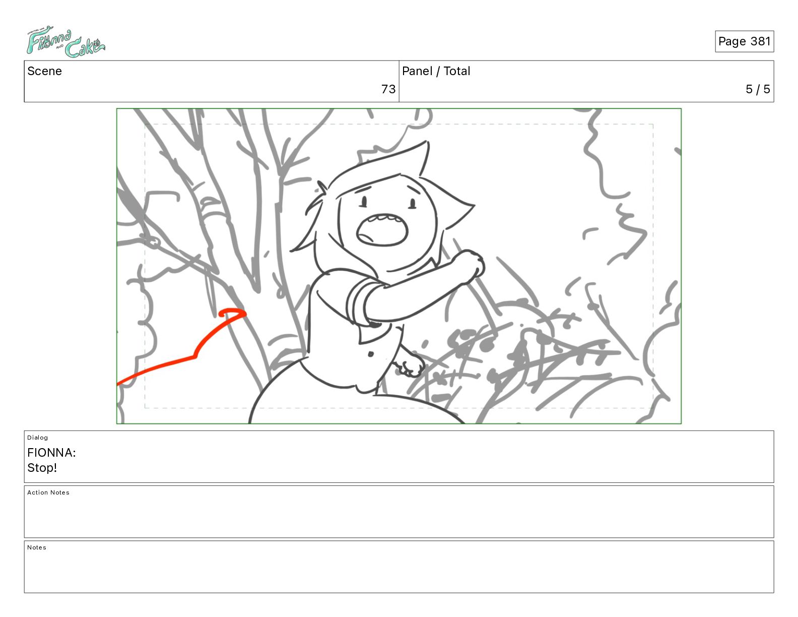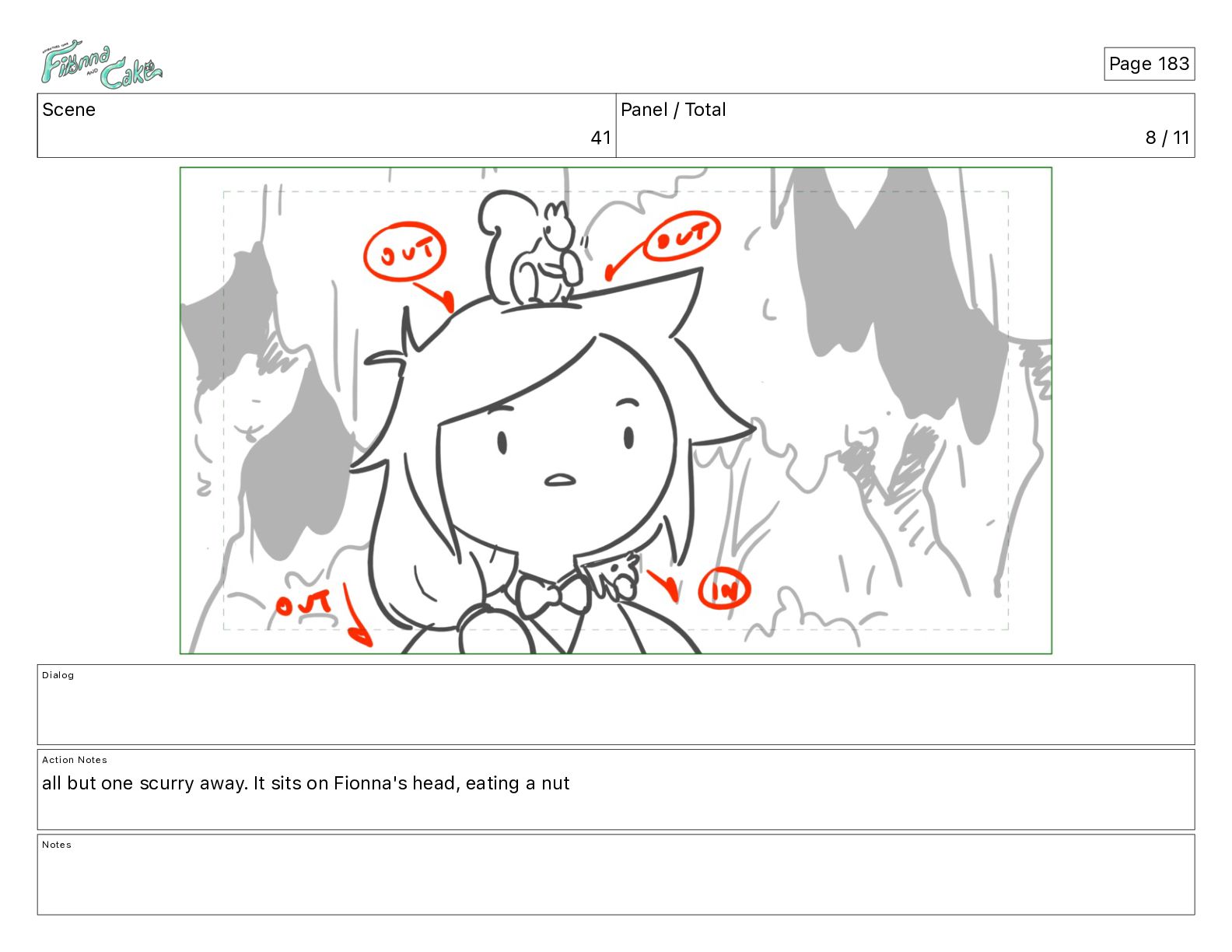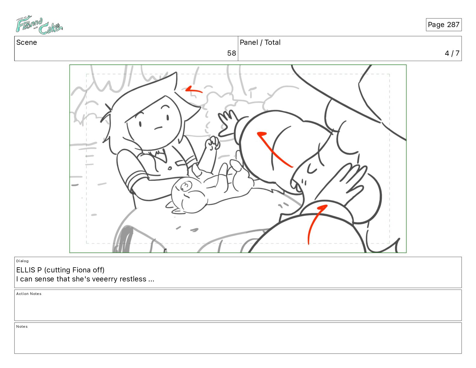Cake! Action Notes CAM PAN FIONNA runs after Cake Notes Page 377