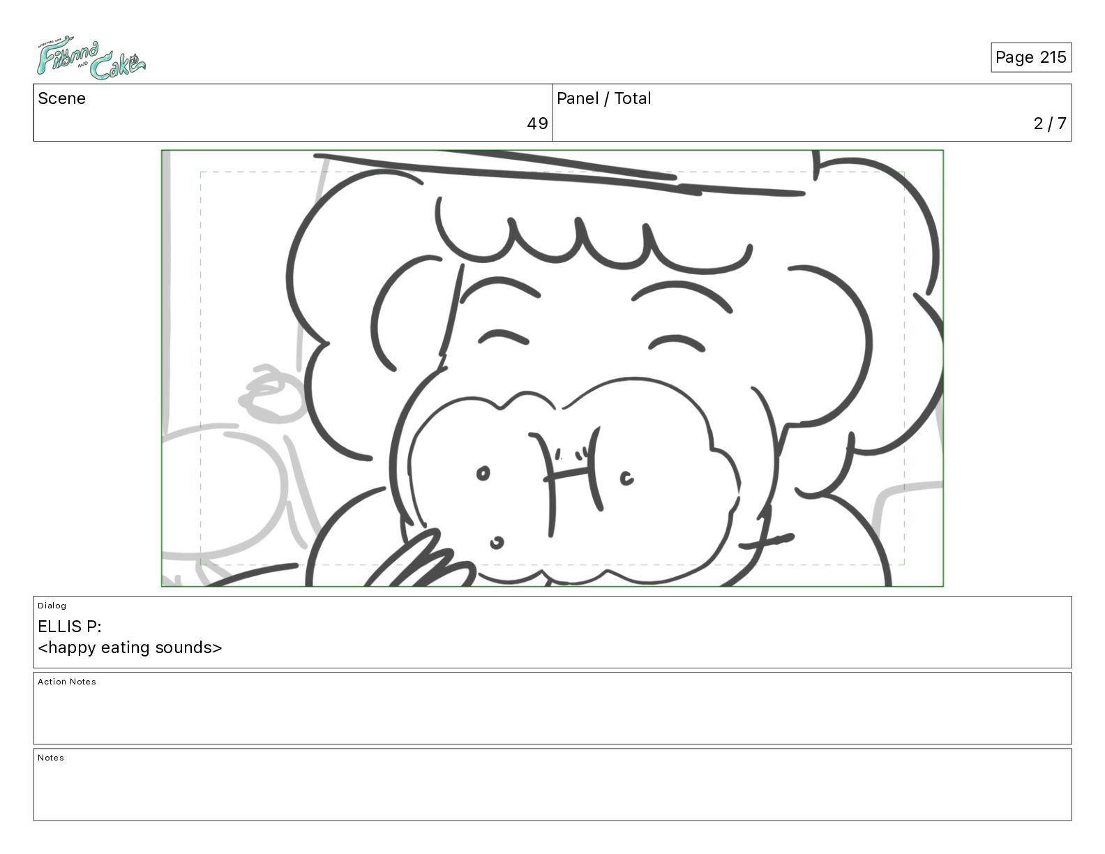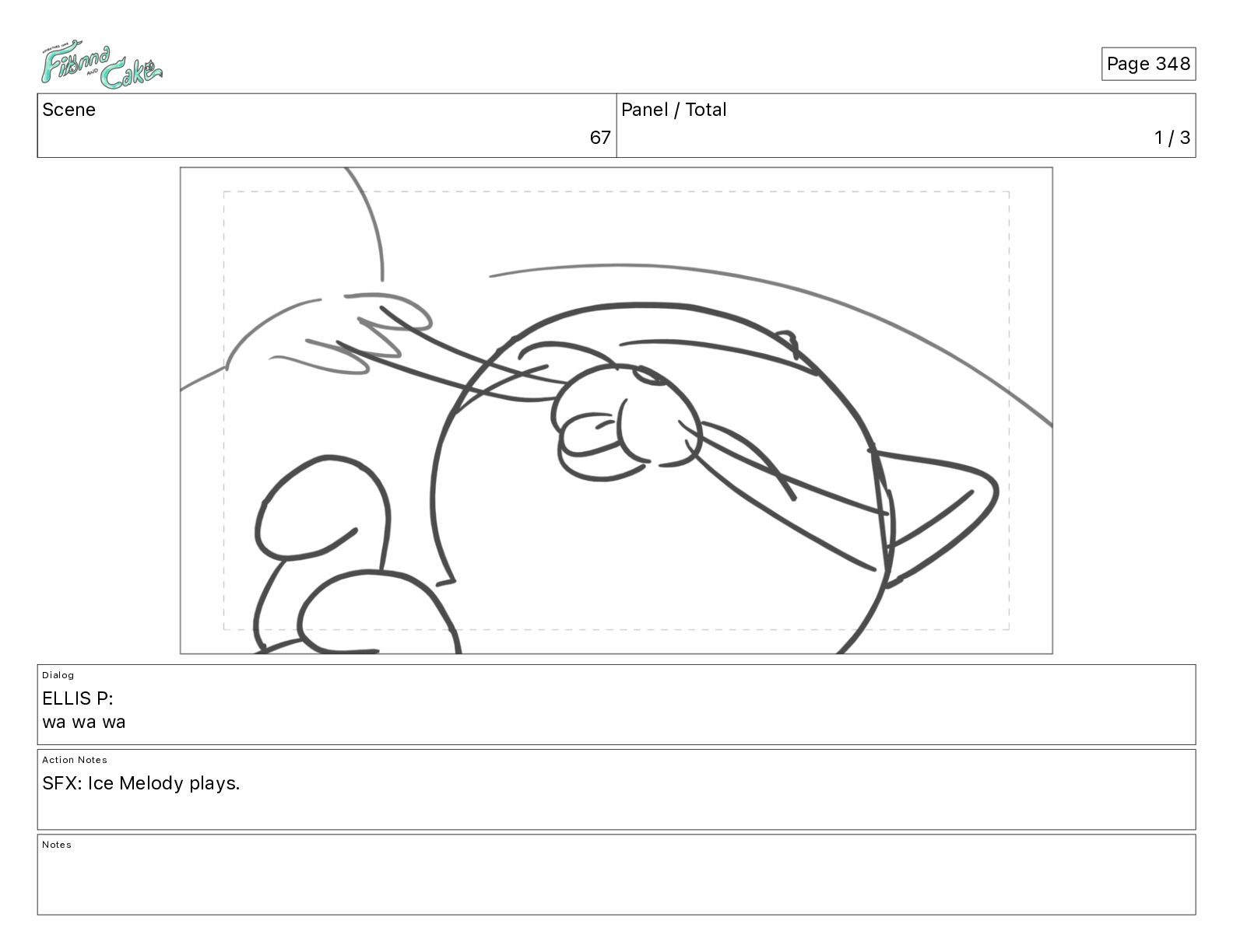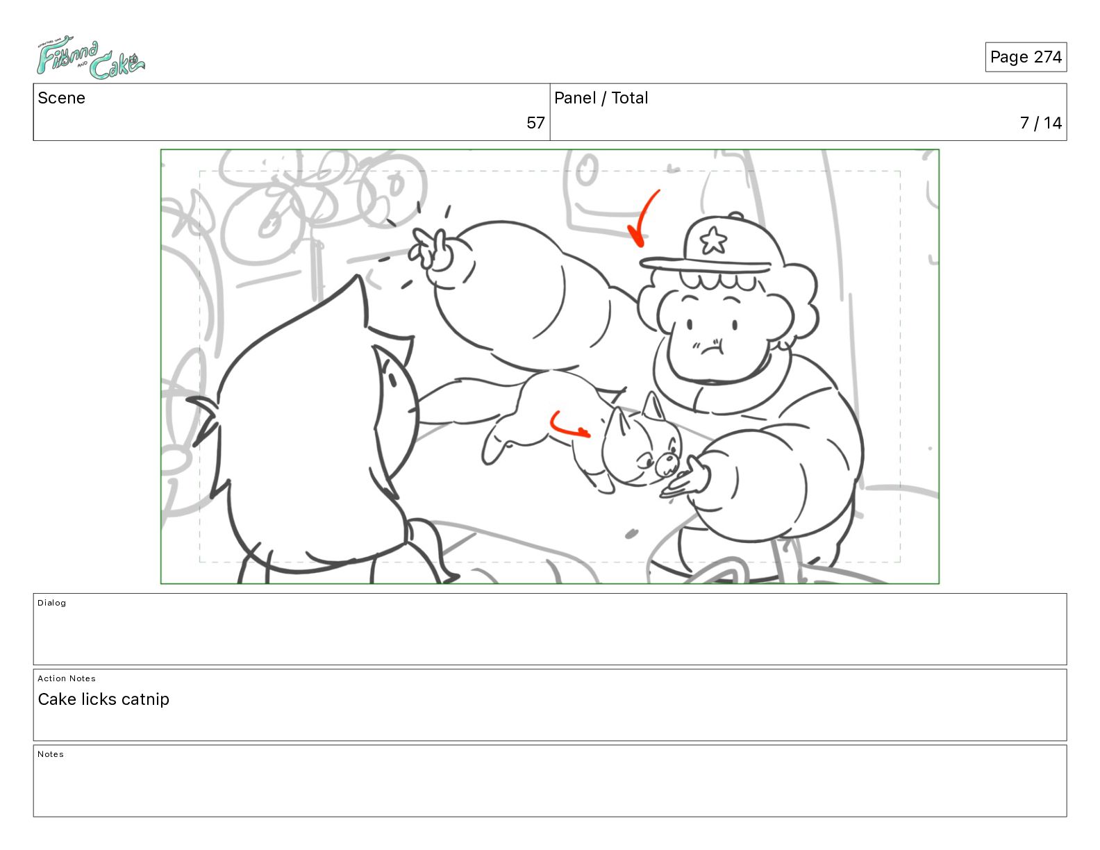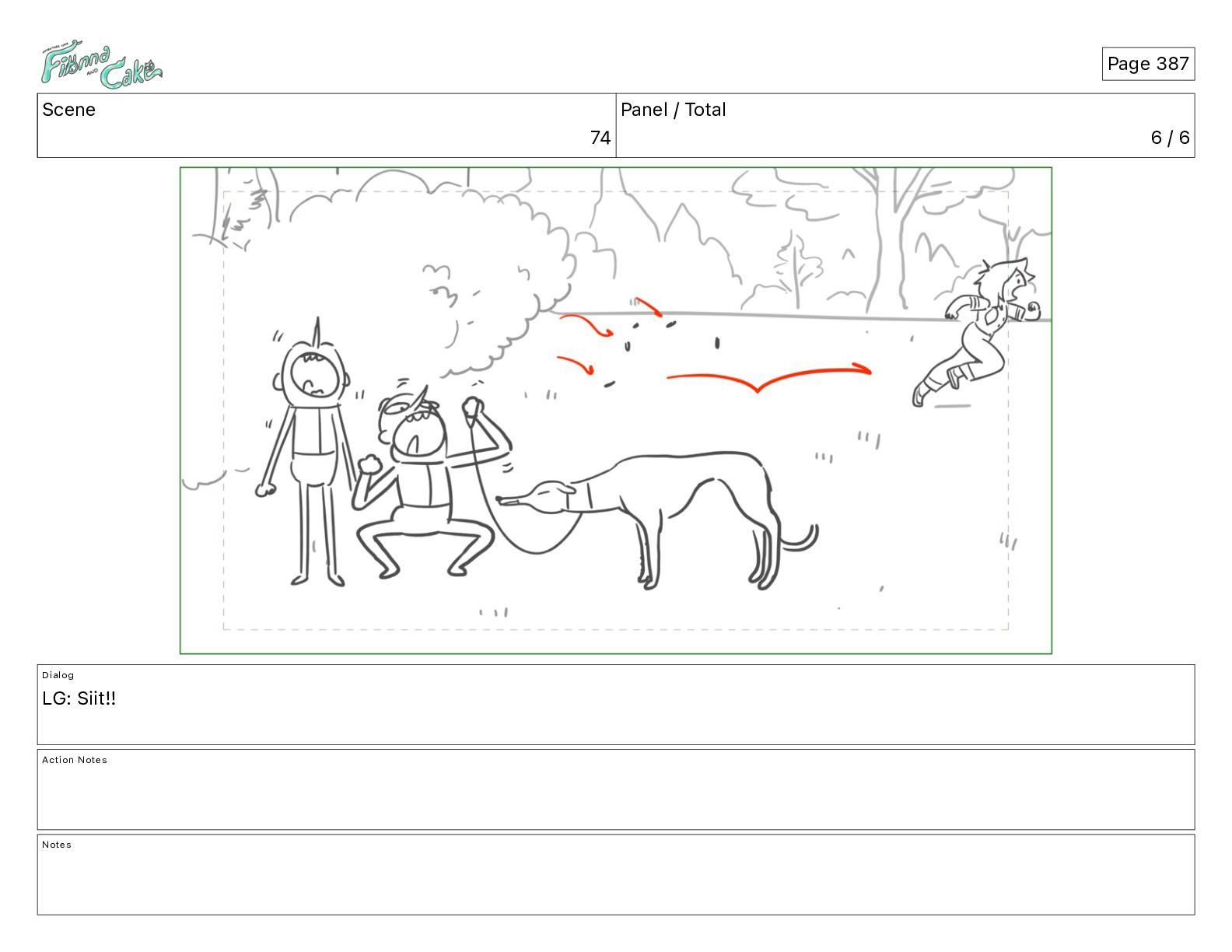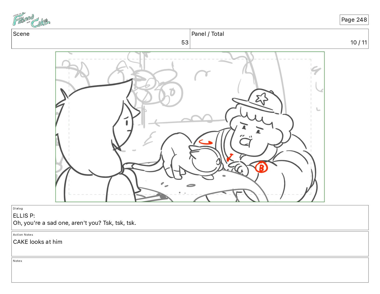 Cake! Action Notes CAM PAN FIONNA runs after Cake Notes Page 377