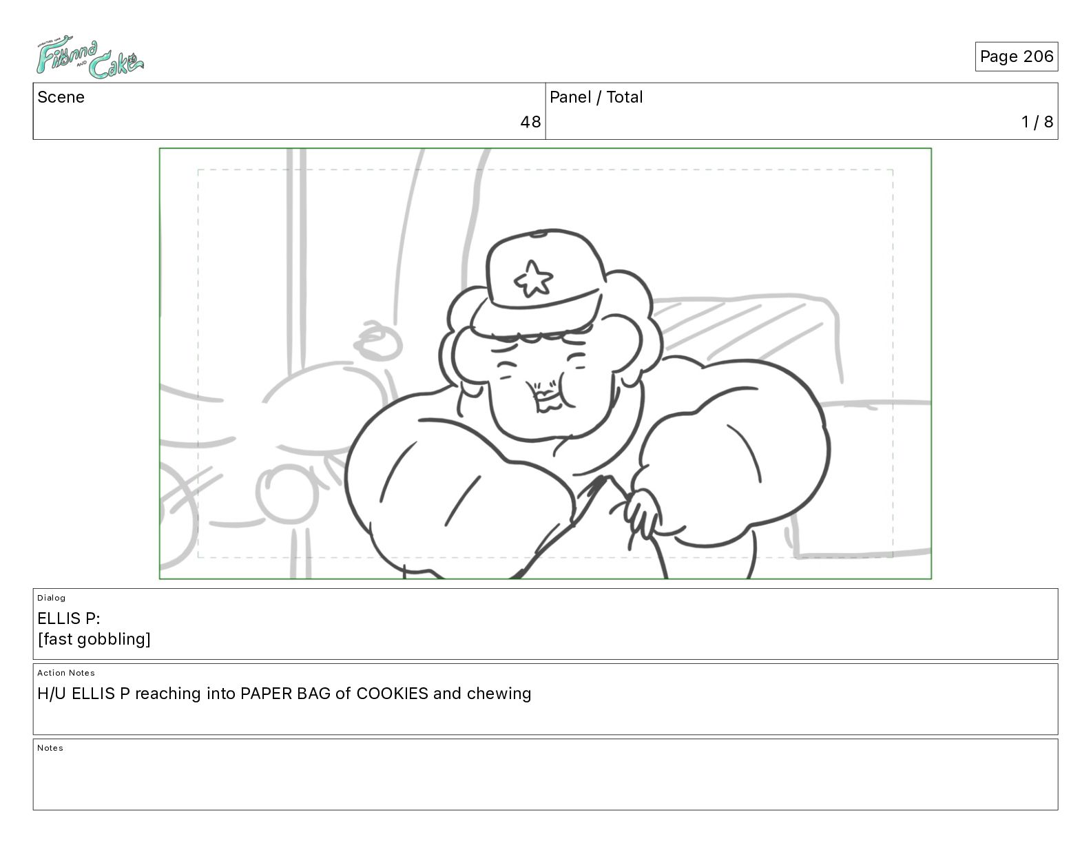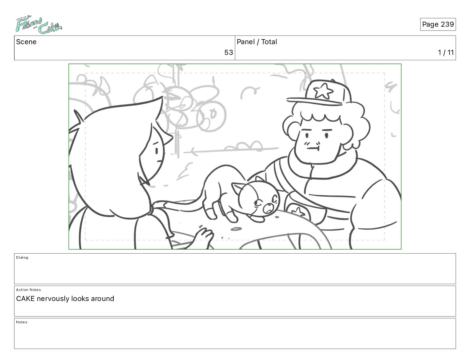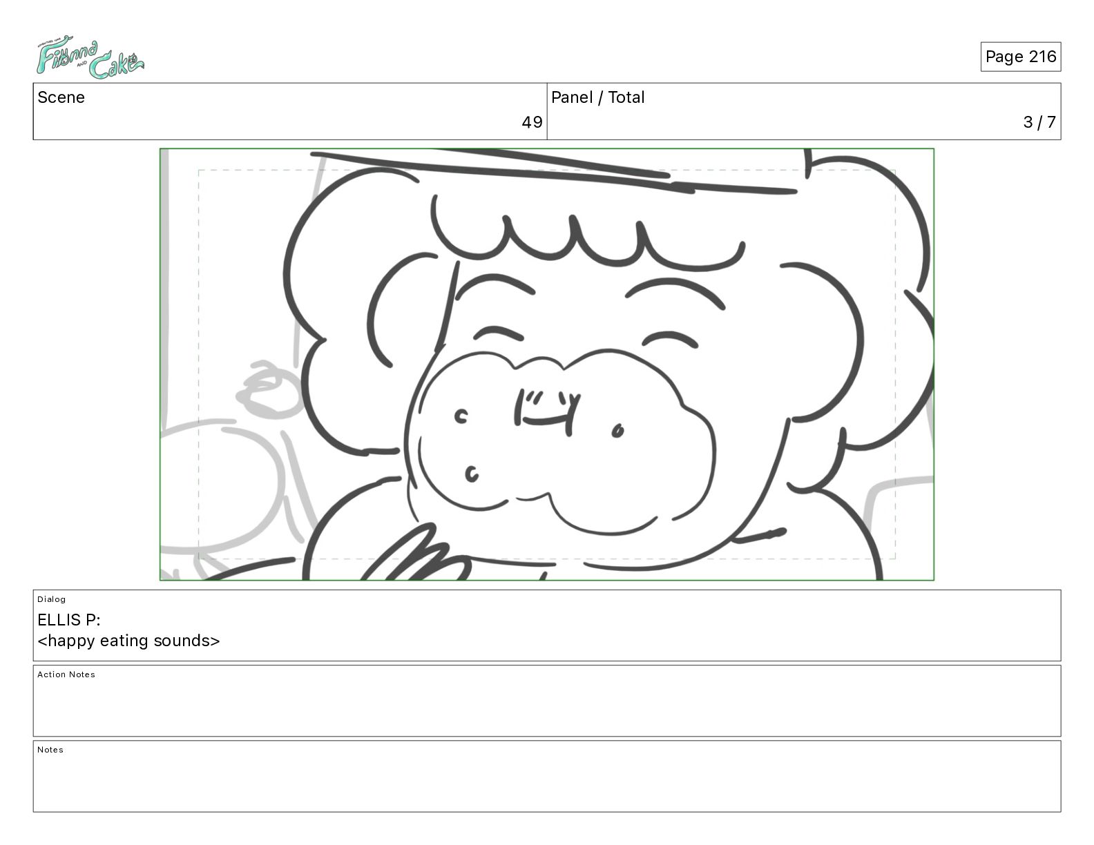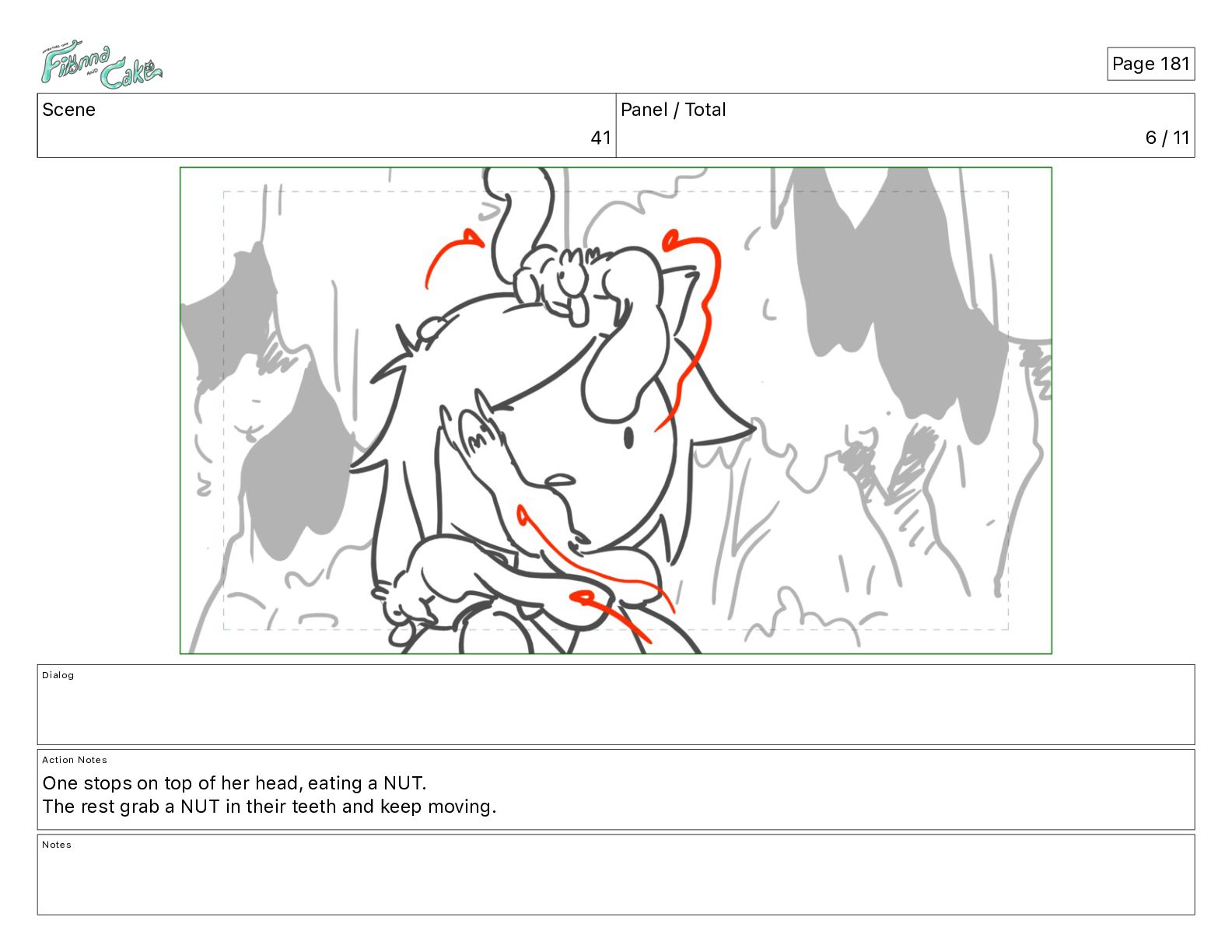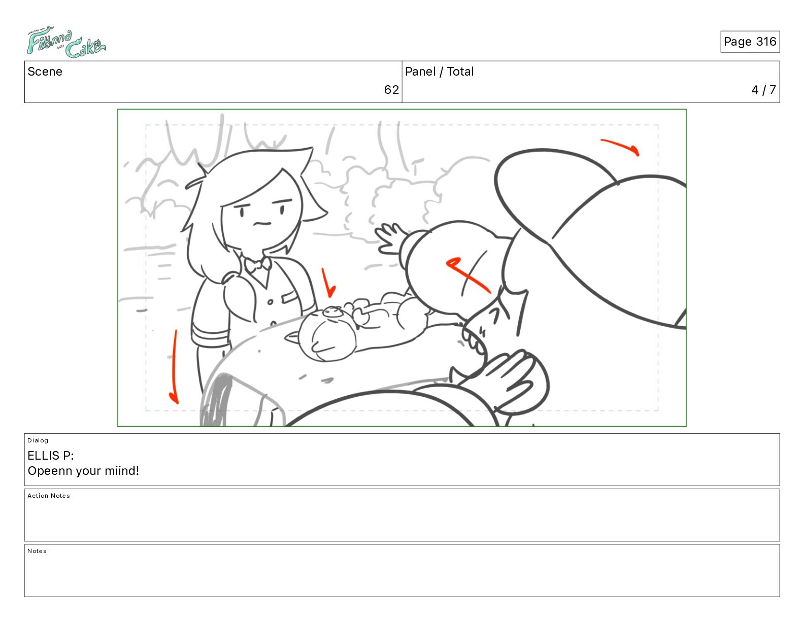 Cake! Action Notes CAM PAN FIONNA runs after Cake Notes Page 377
