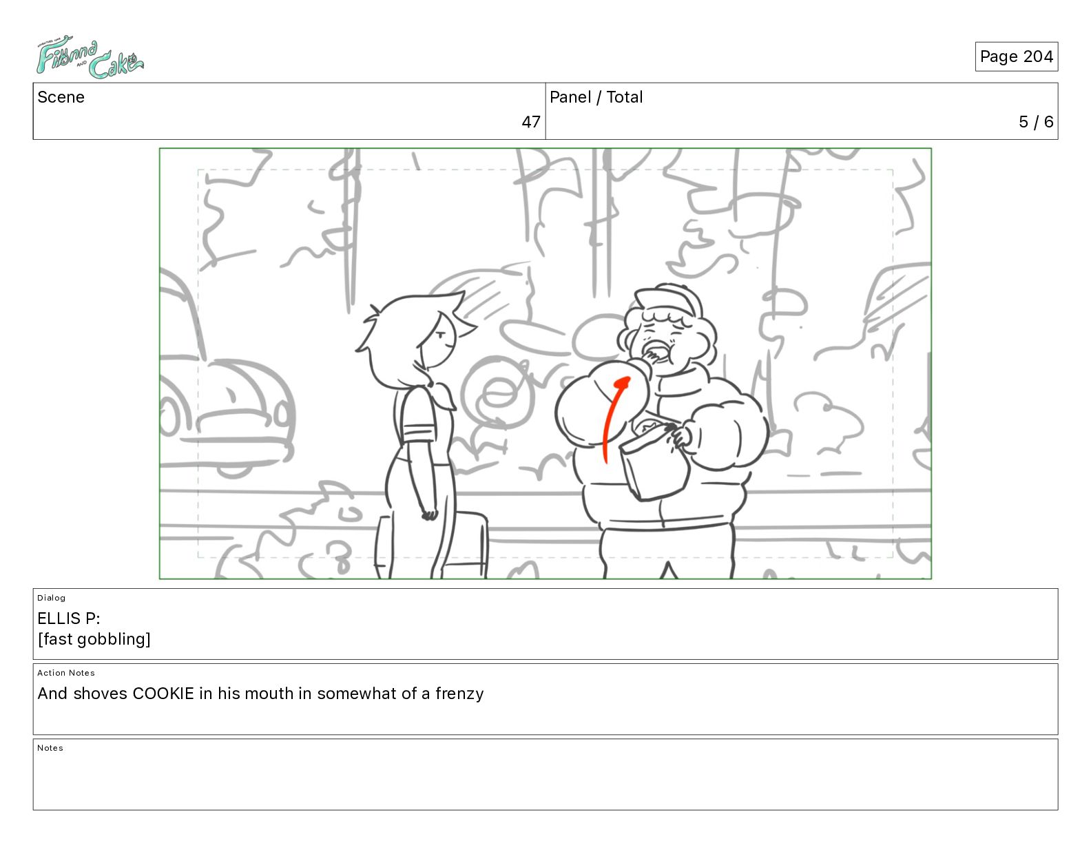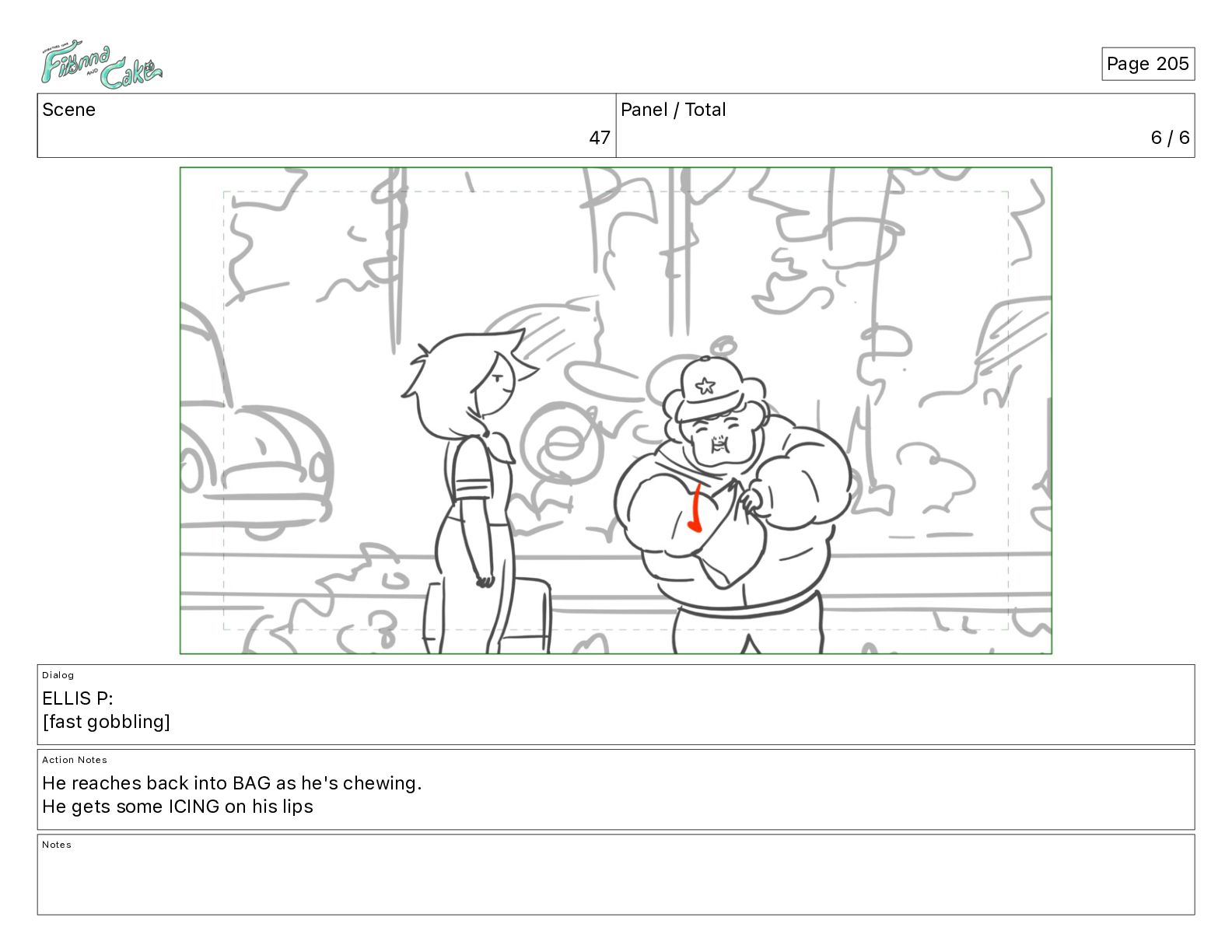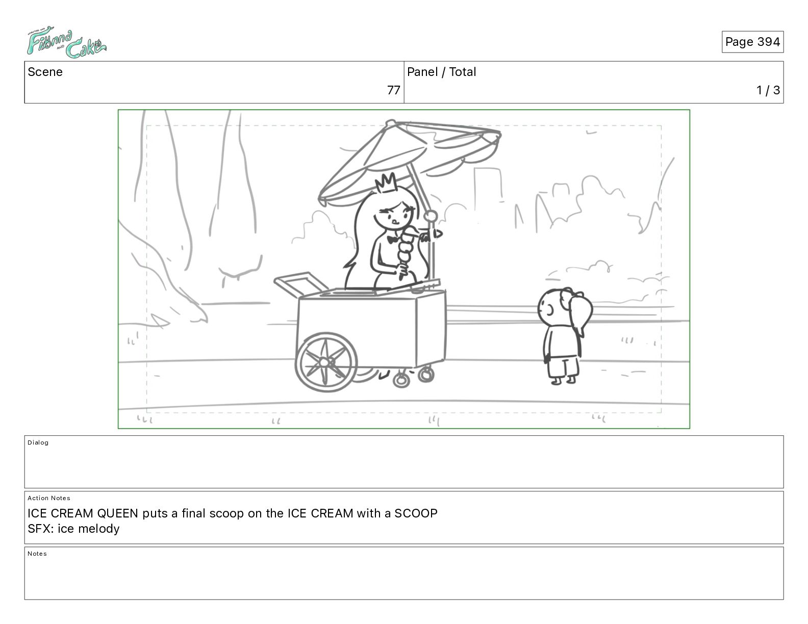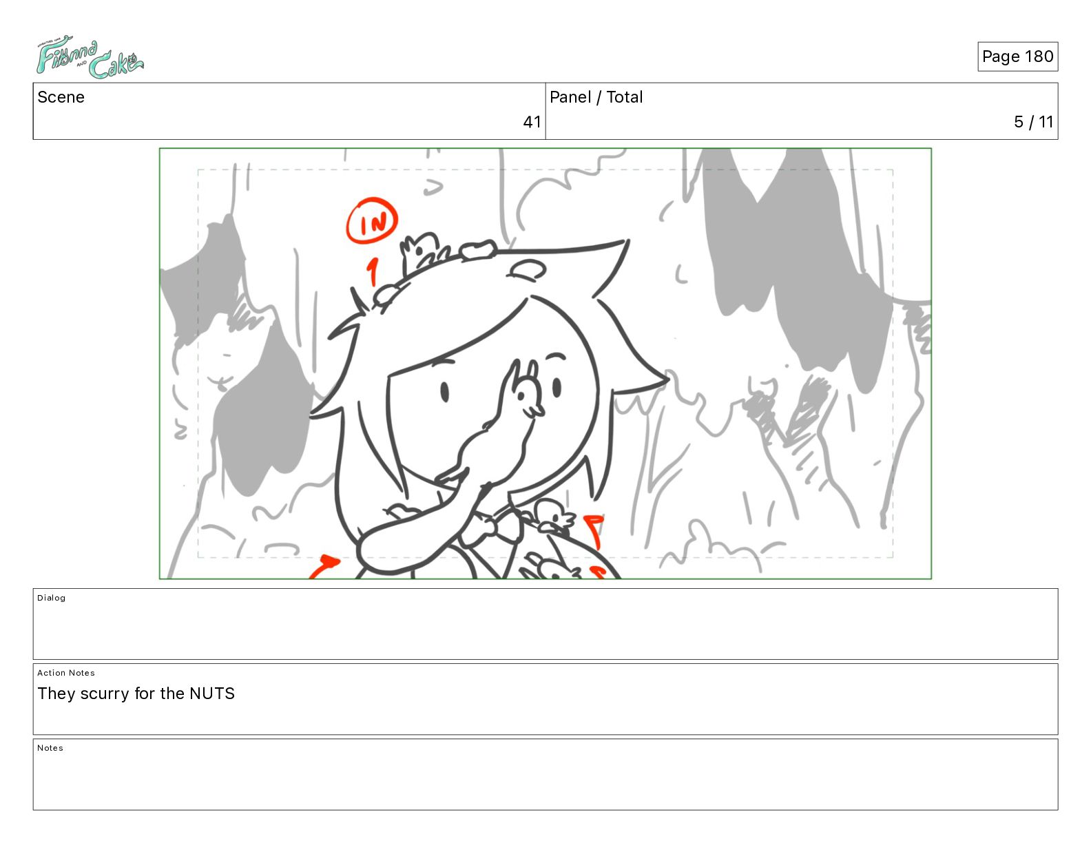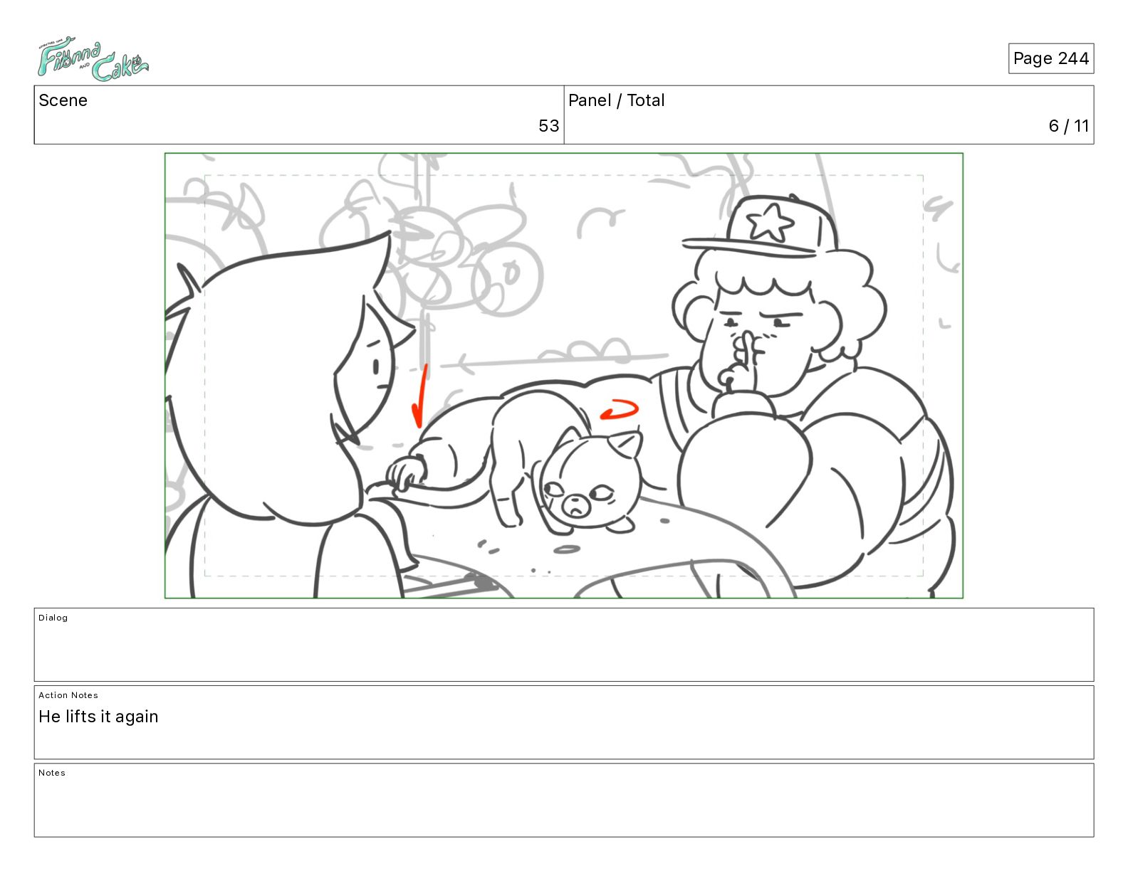 Cake! Action Notes CAM PAN FIONNA runs after Cake Notes Page 377