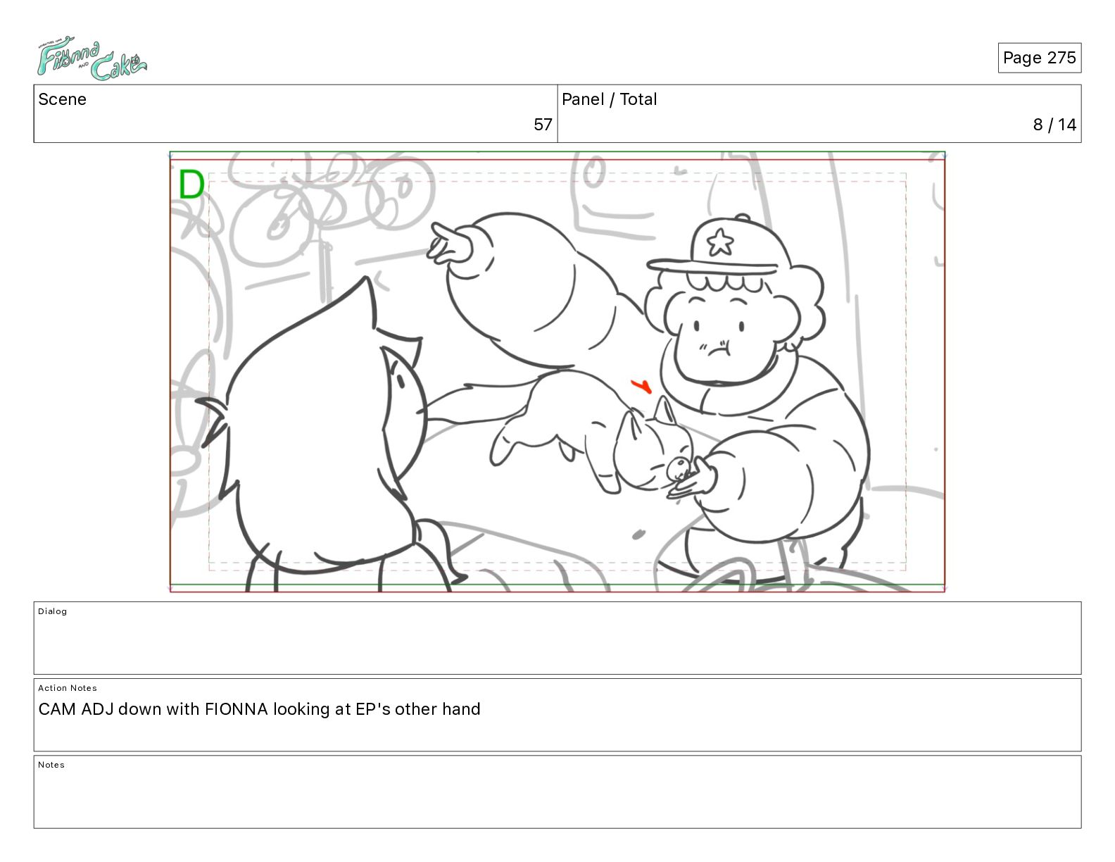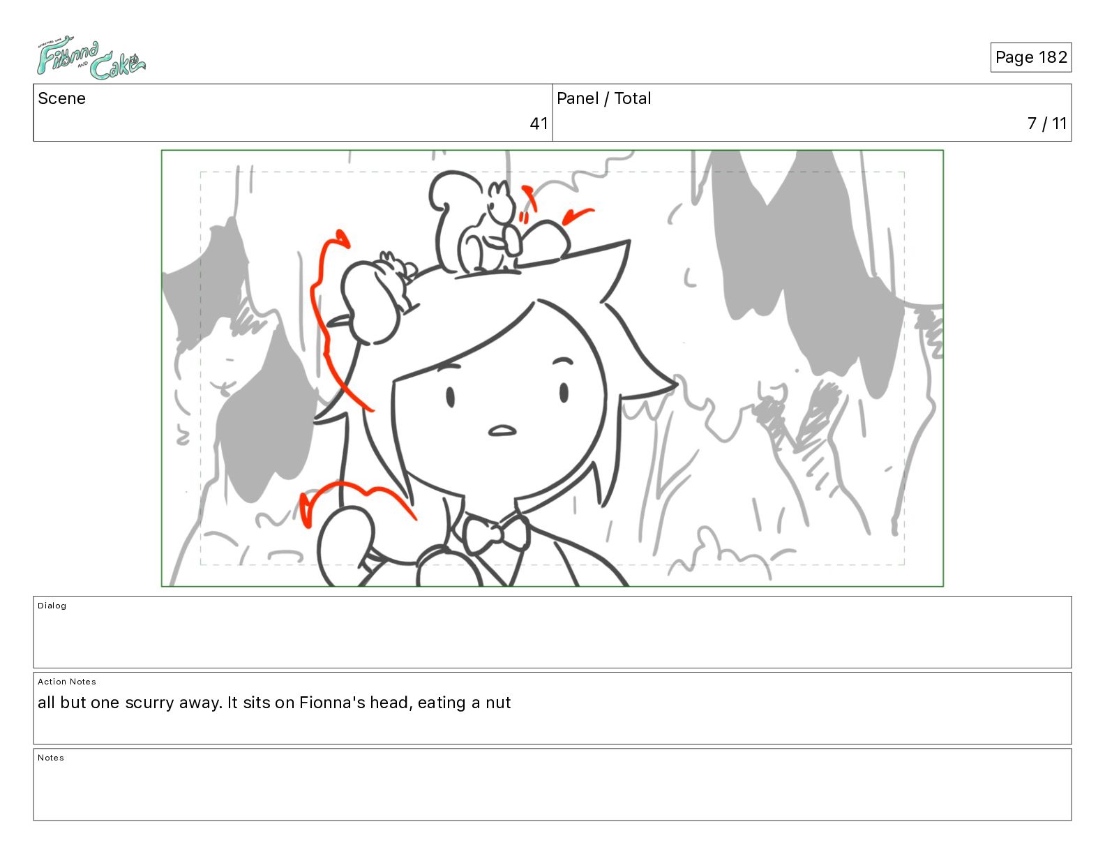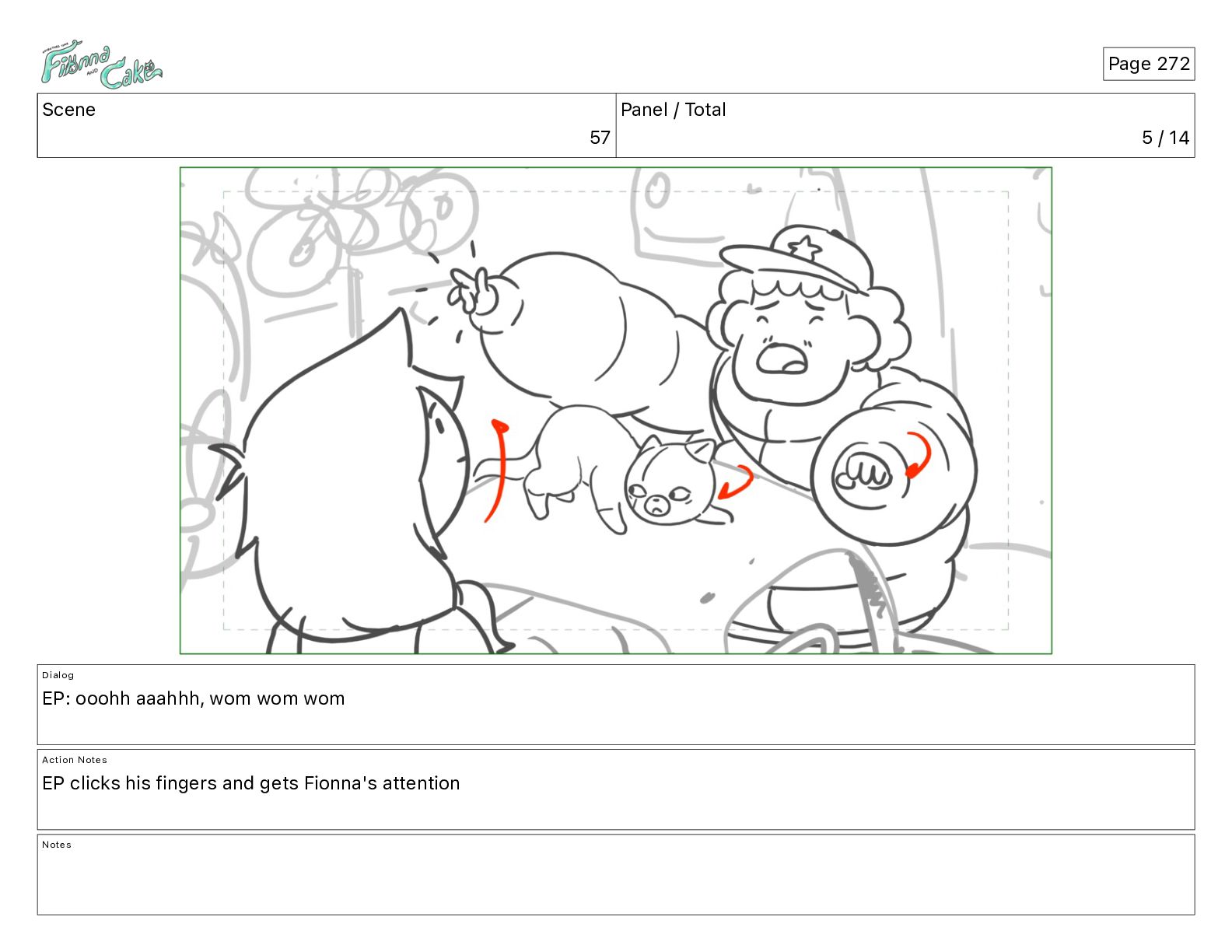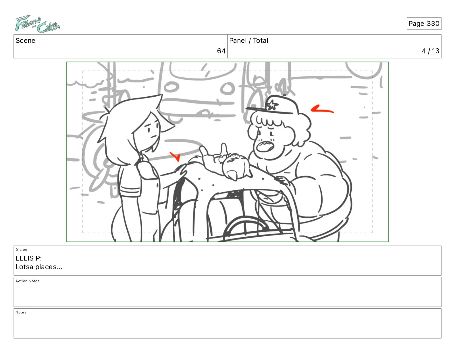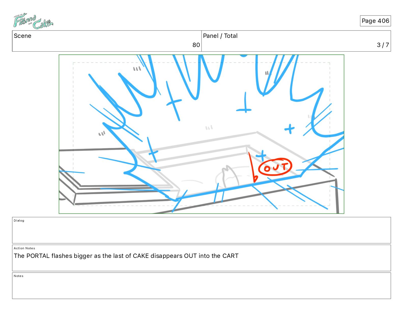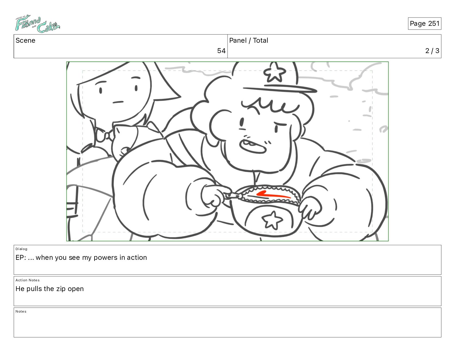 Cake! Action Notes CAM PAN FIONNA runs after Cake Notes Page 377