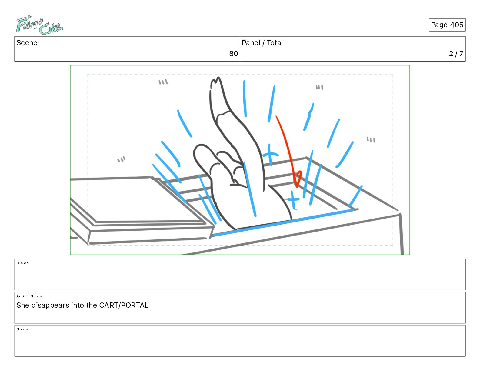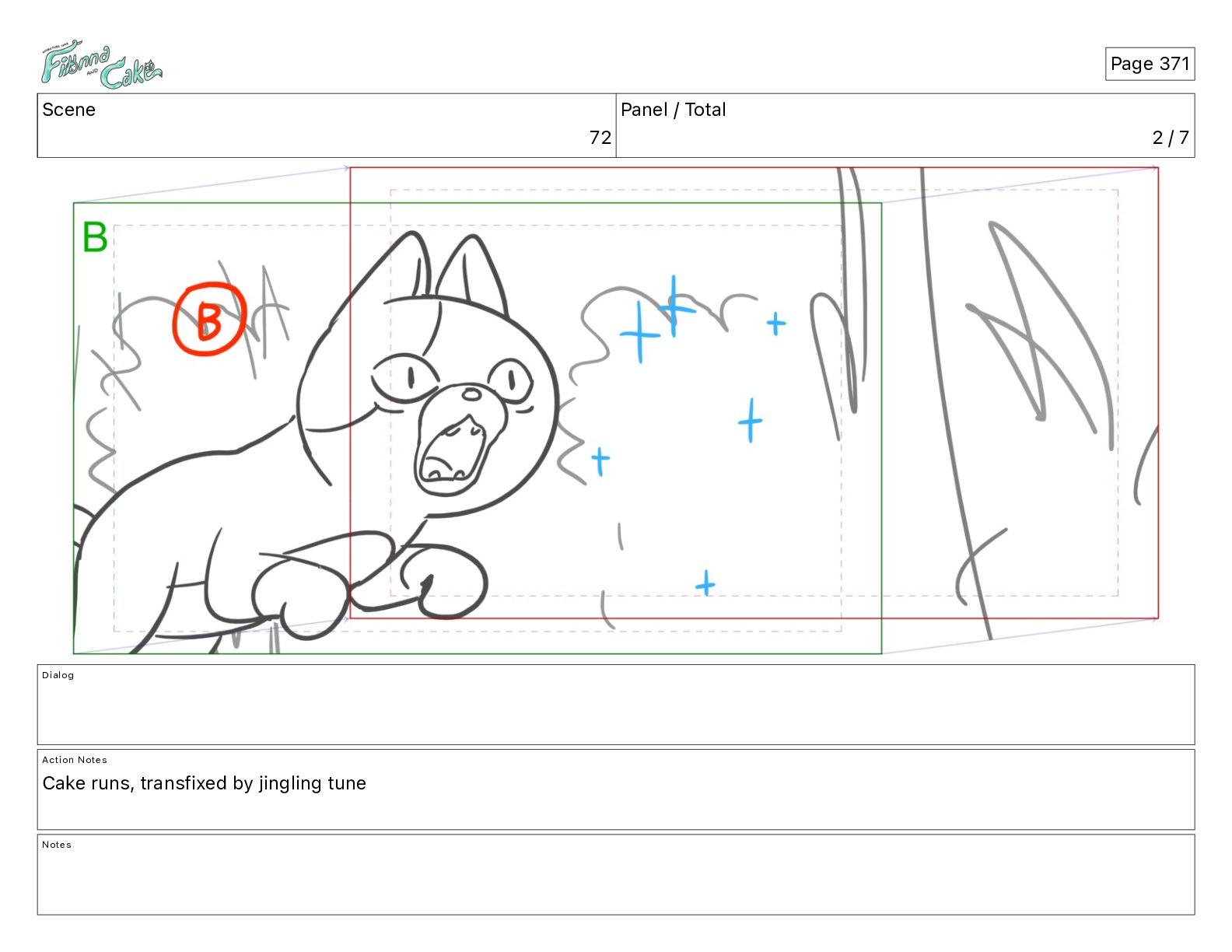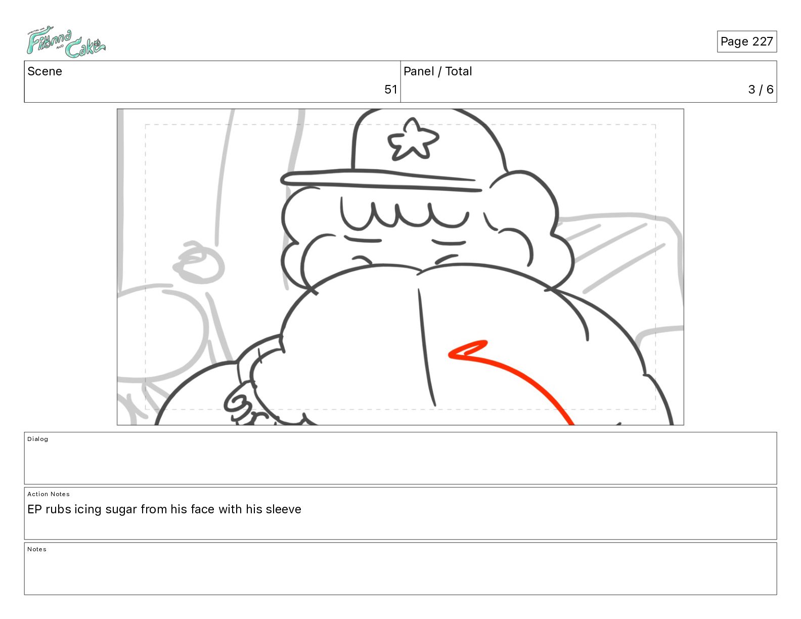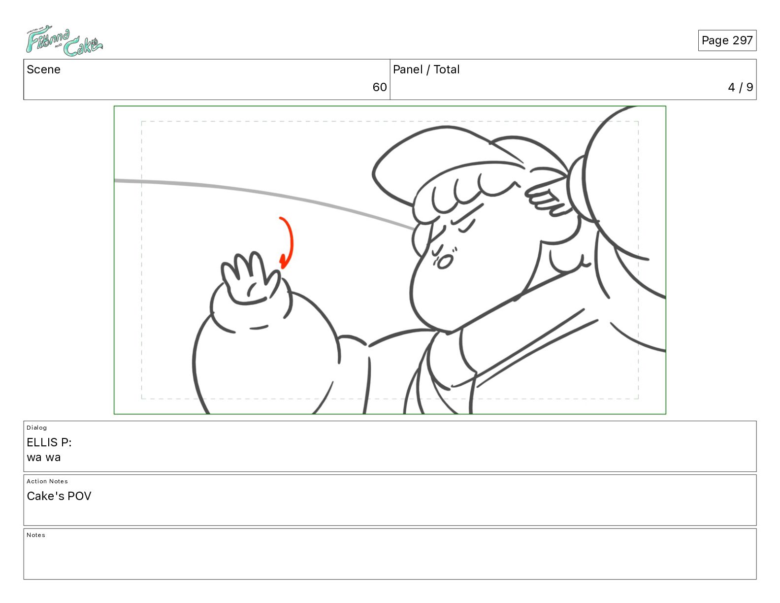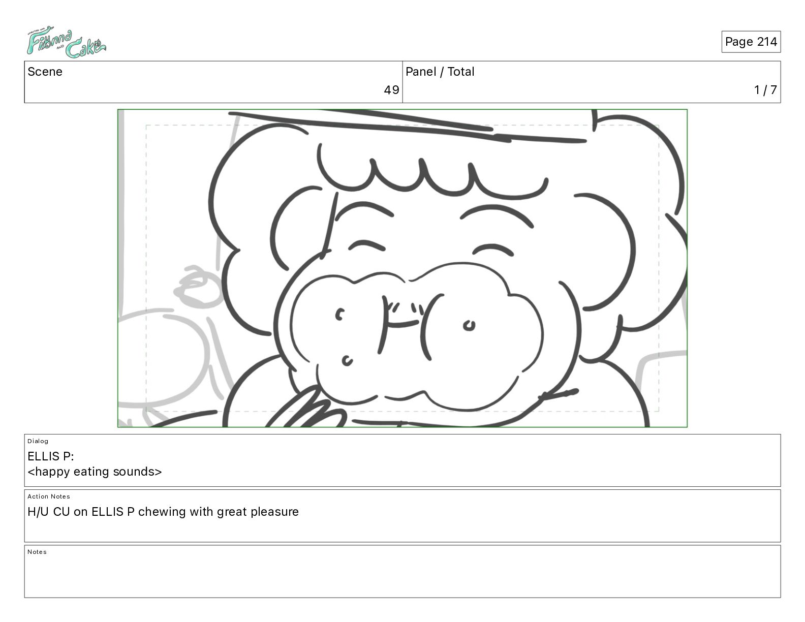 Cake! Action Notes CAM PAN FIONNA runs after Cake Notes Page 377