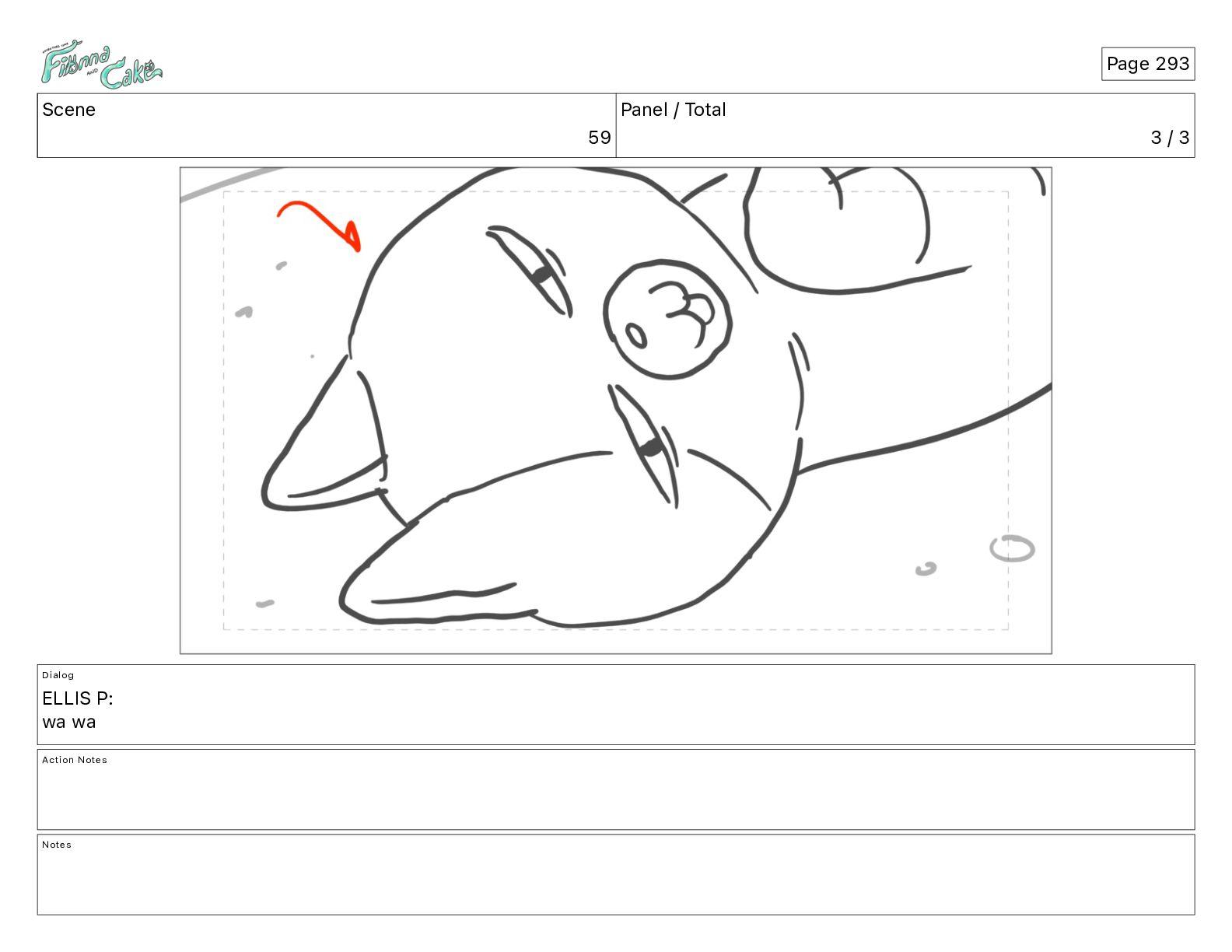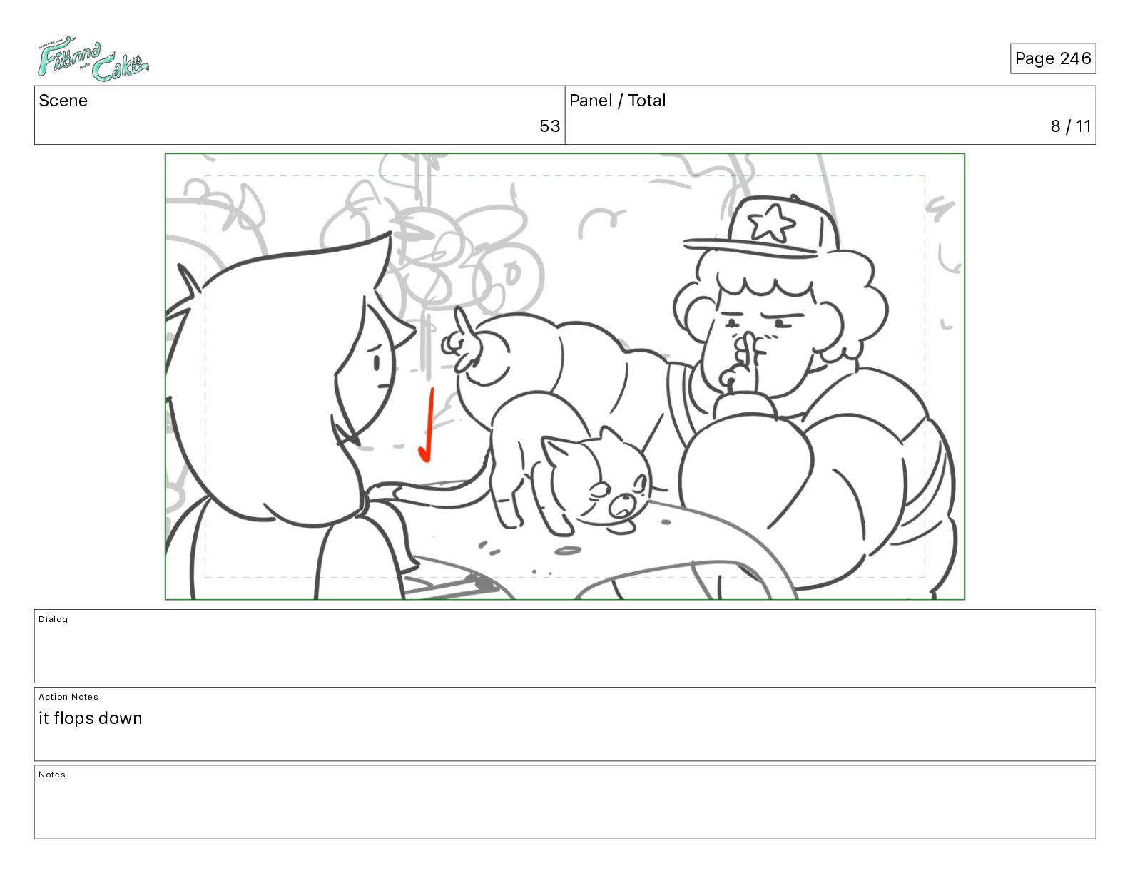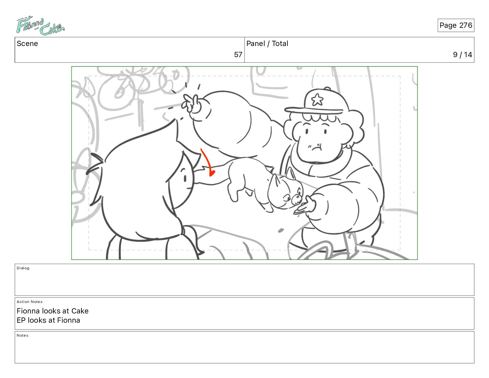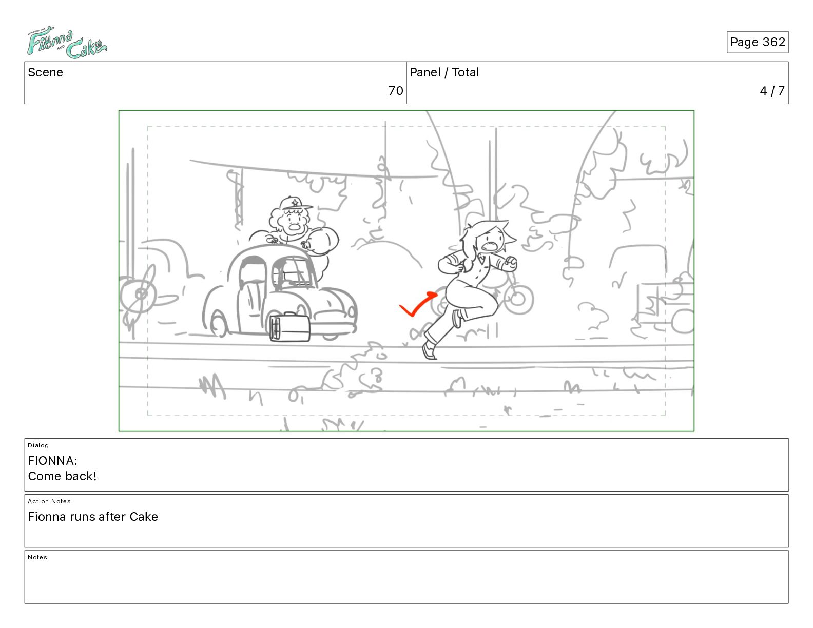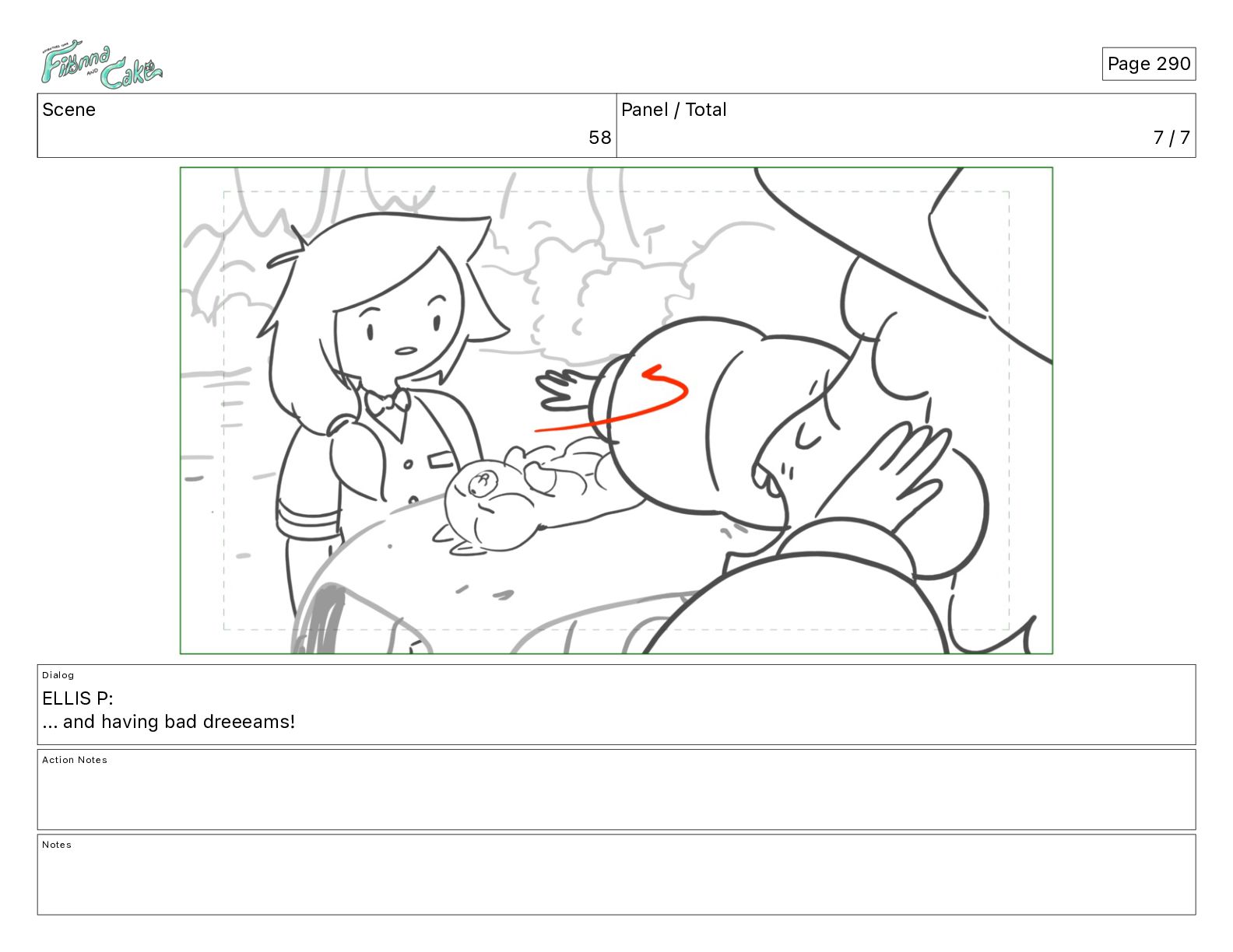 Cake! Action Notes CAM PAN FIONNA runs after Cake Notes Page 377