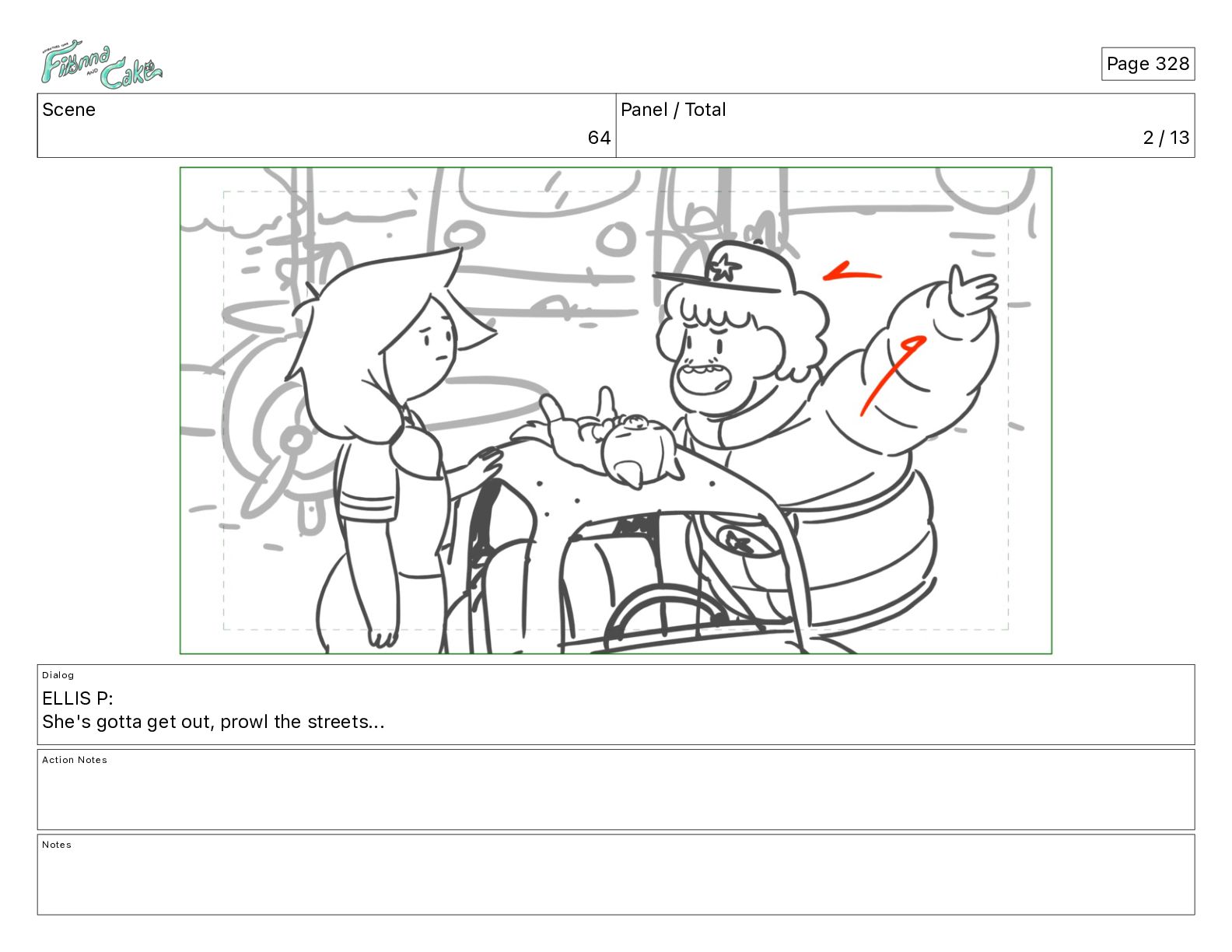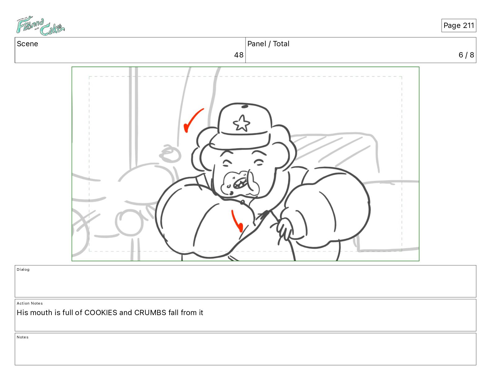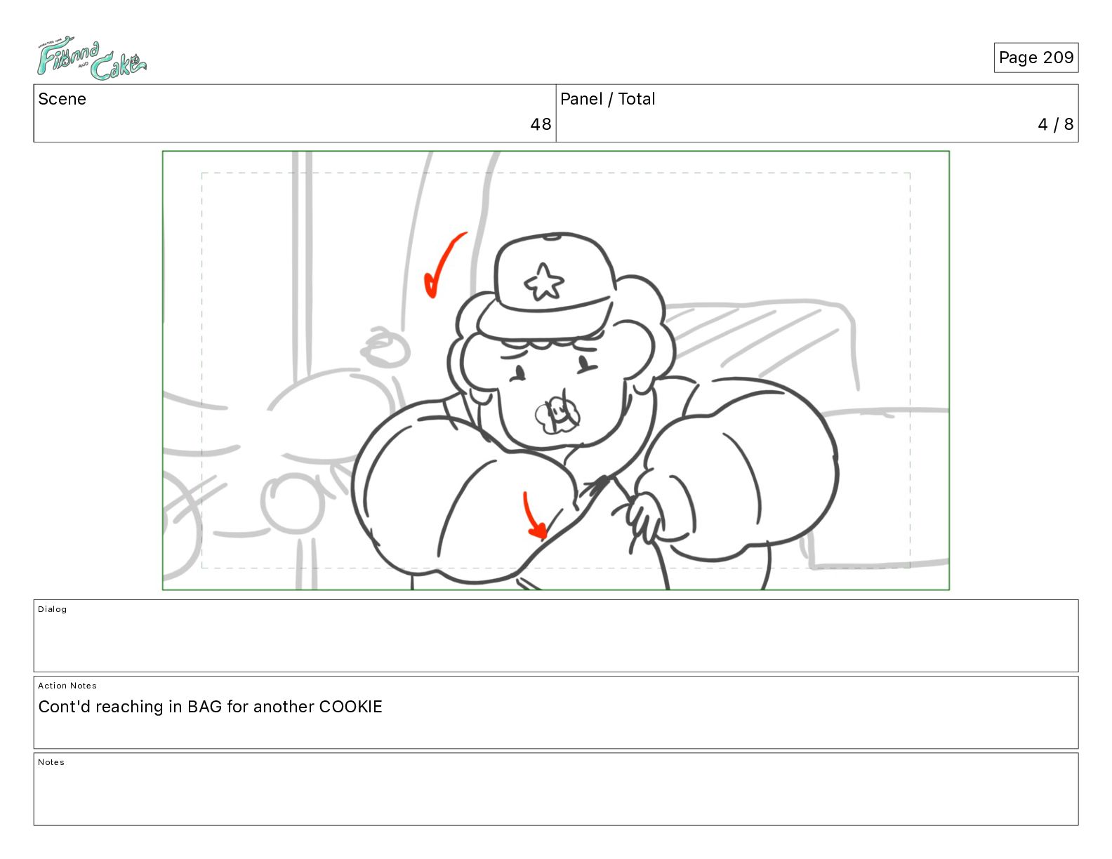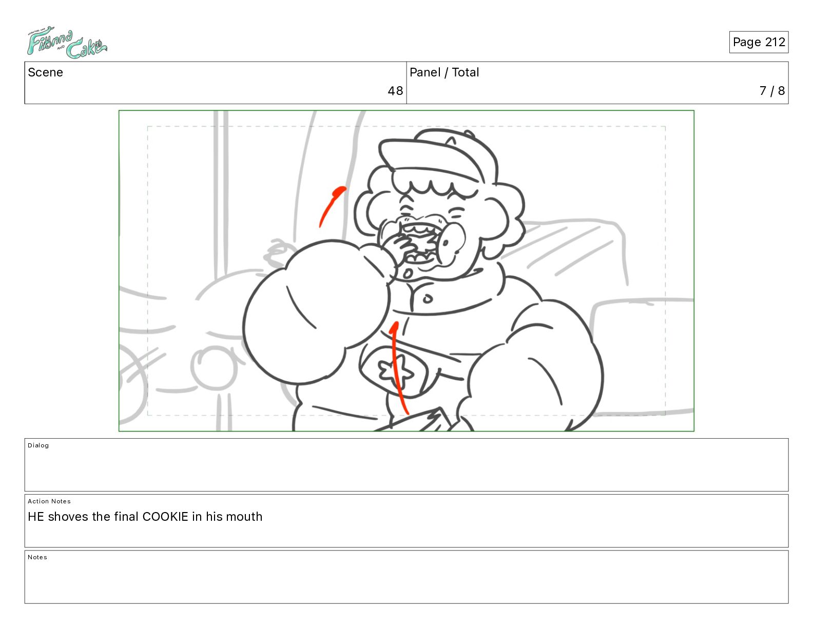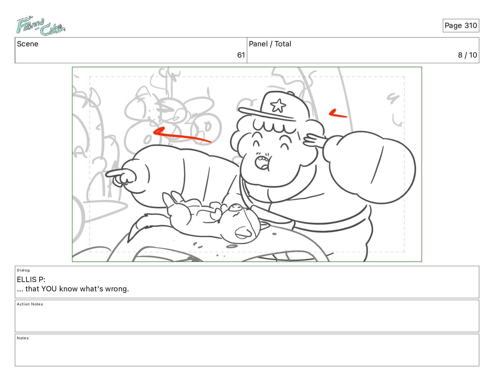 Cake! Action Notes CAM PAN FIONNA runs after Cake Notes Page 377
