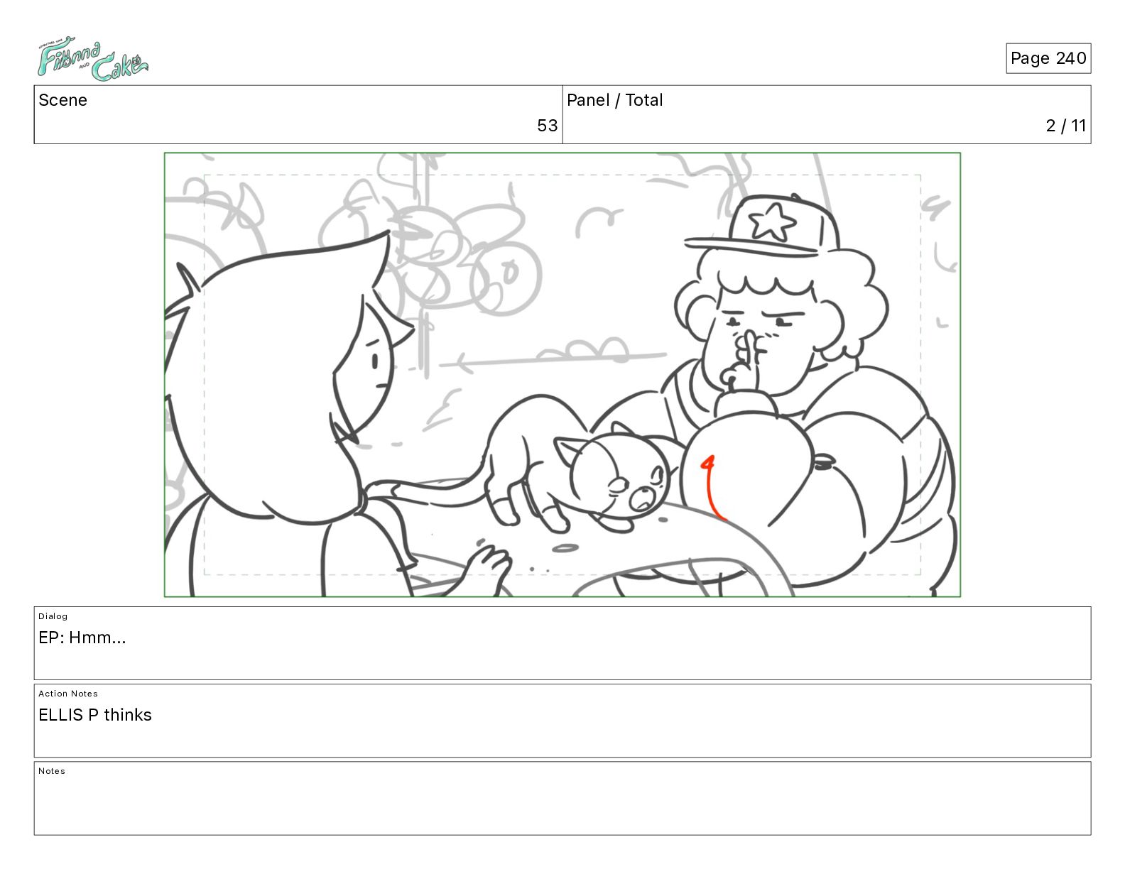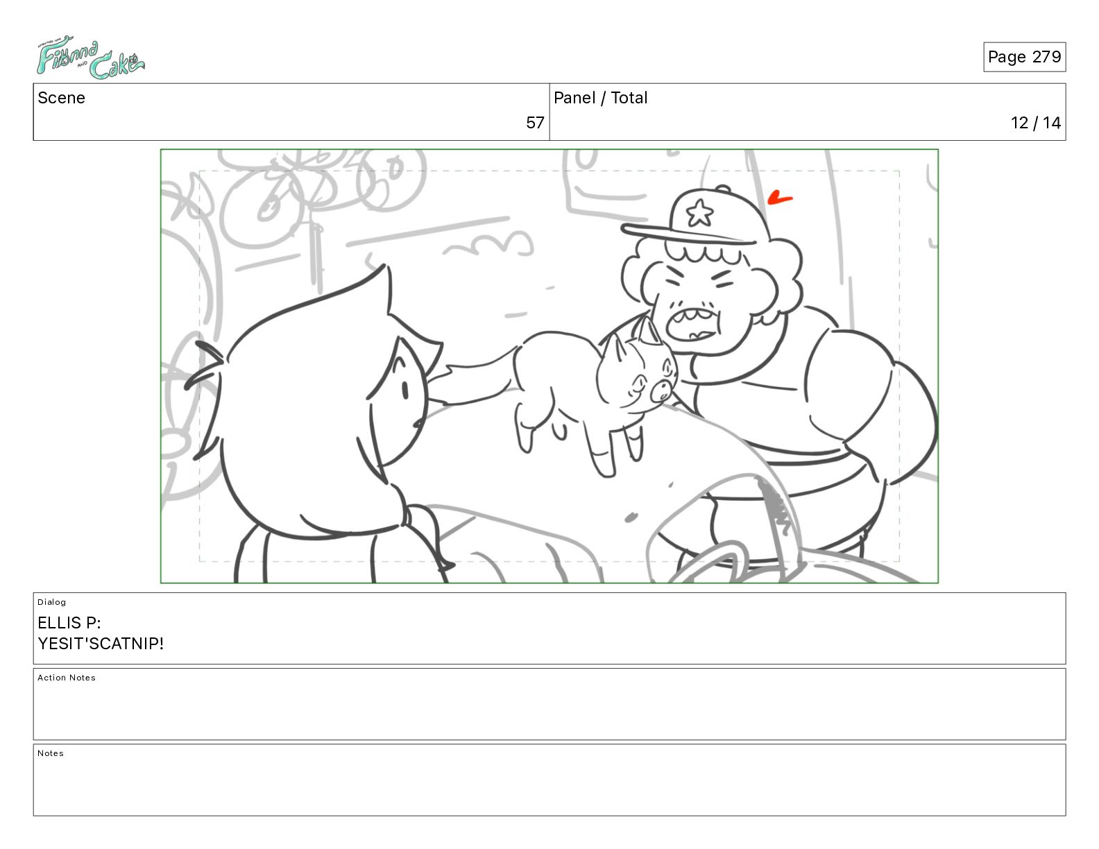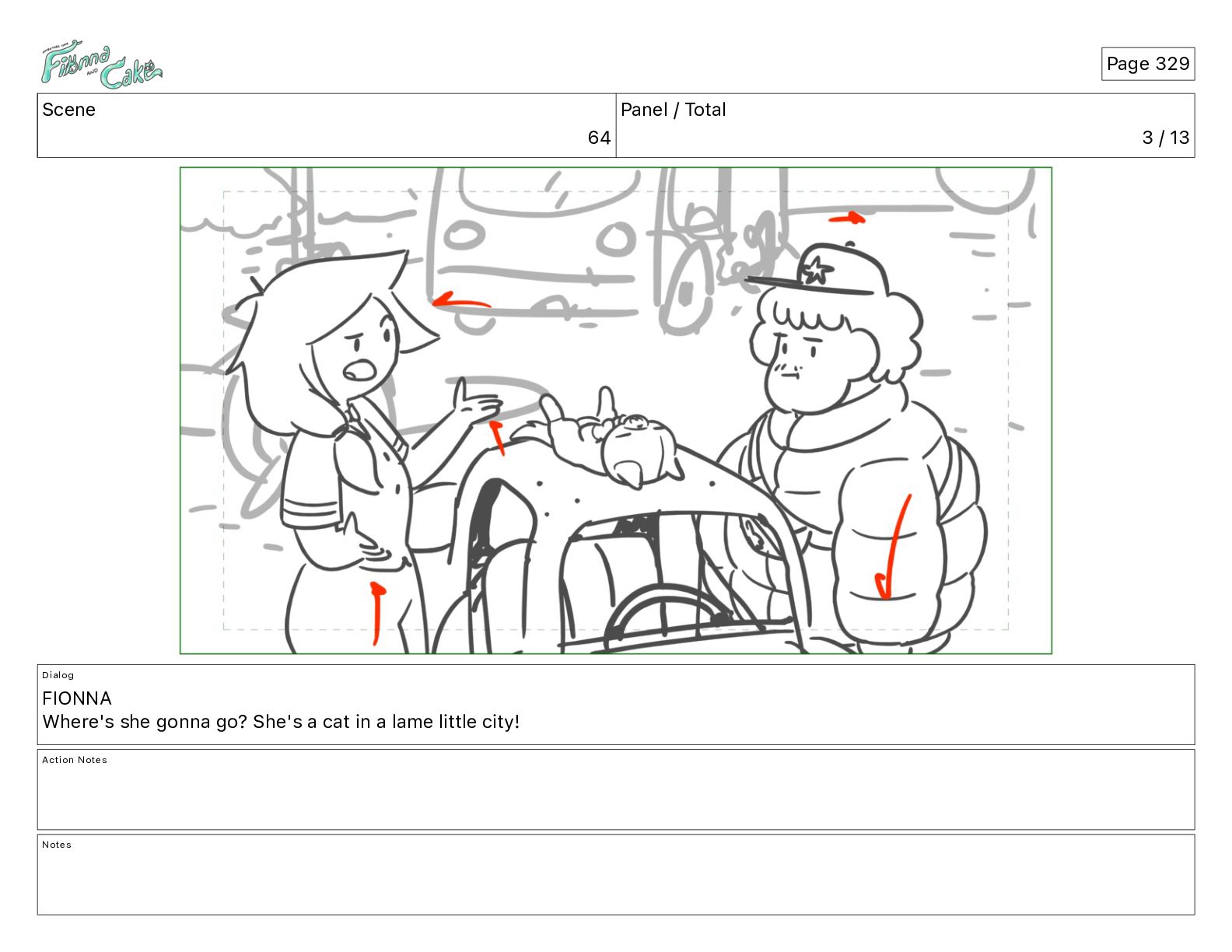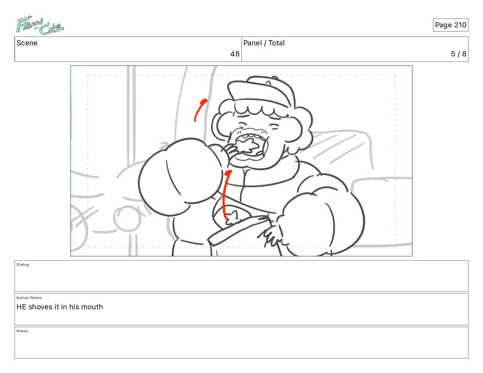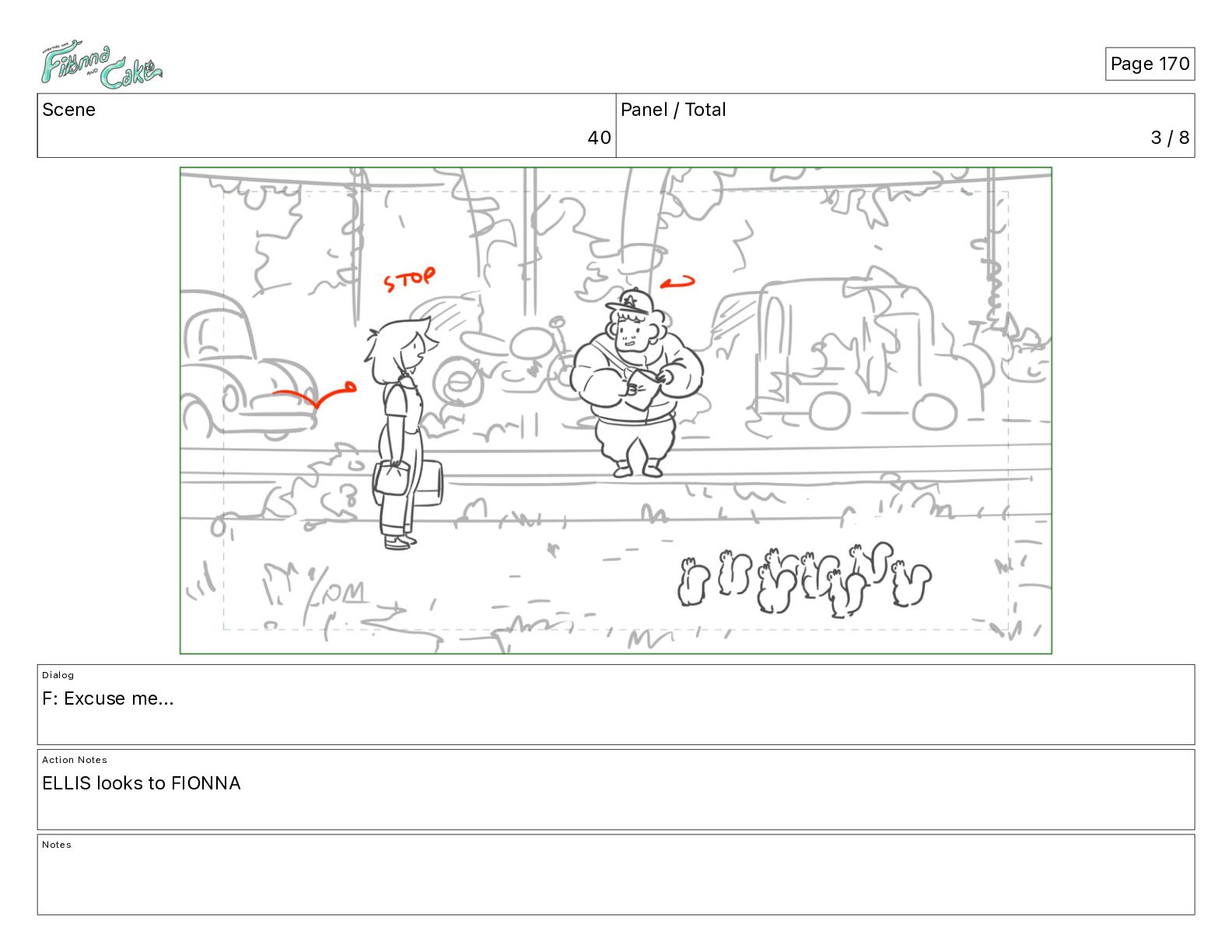 Cake! Action Notes CAM PAN FIONNA runs after Cake Notes Page 377