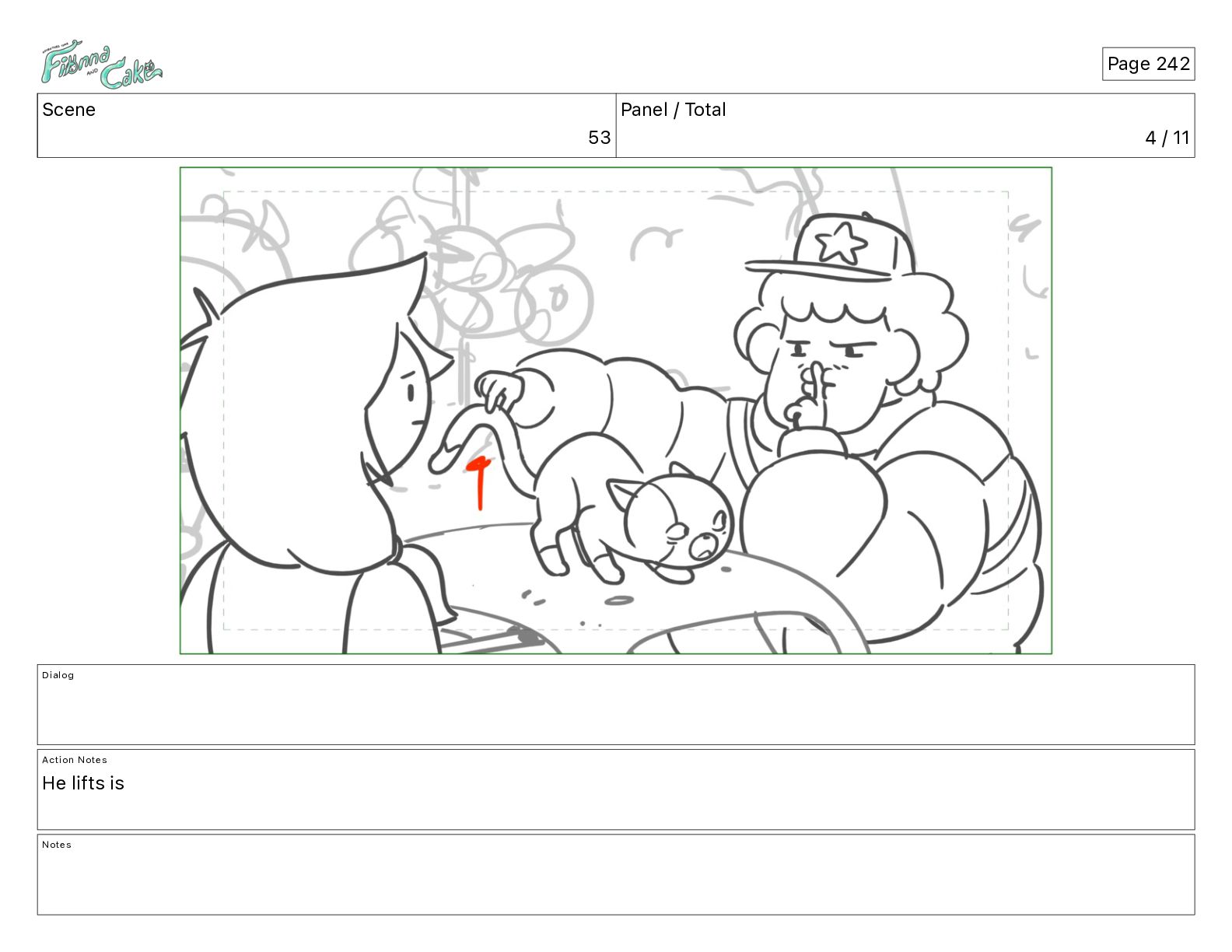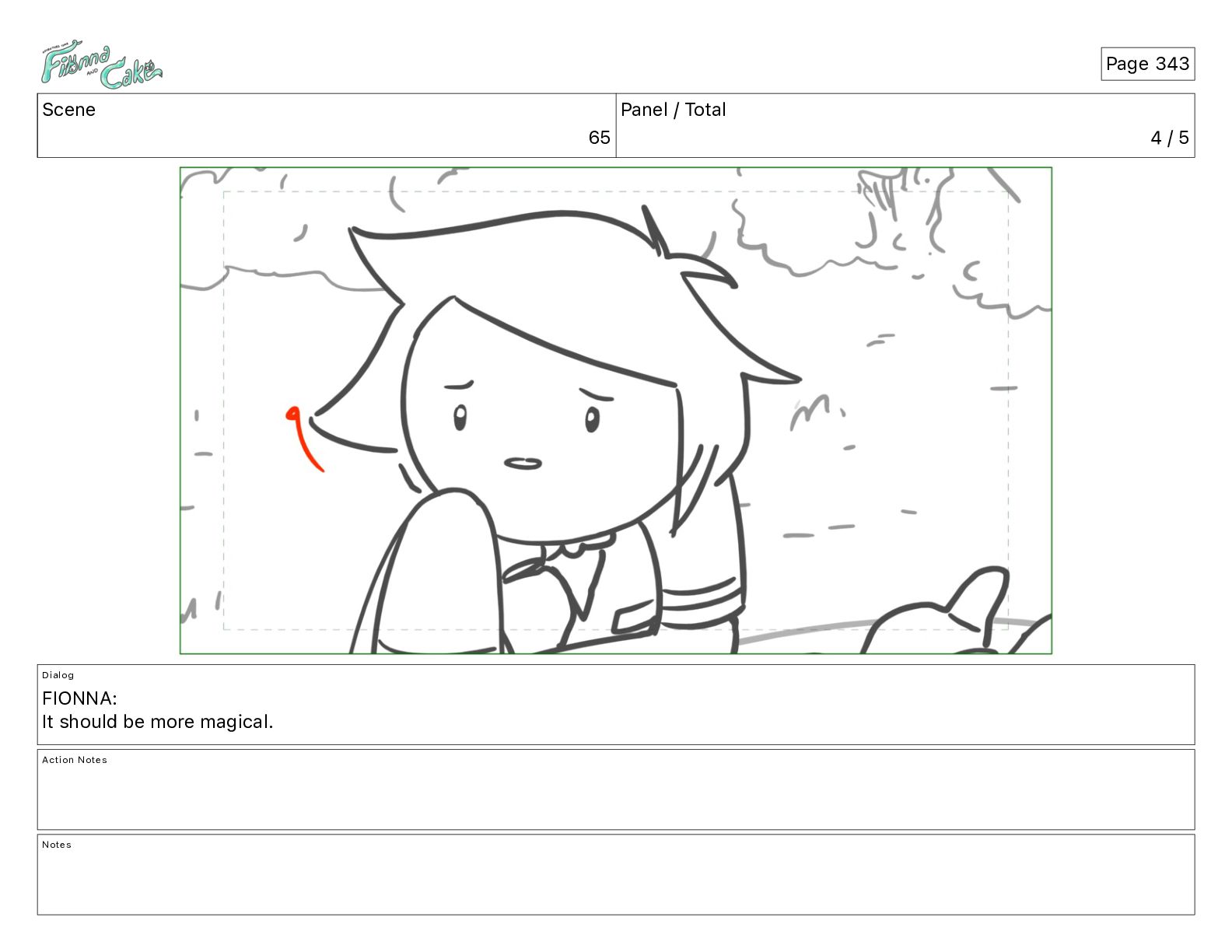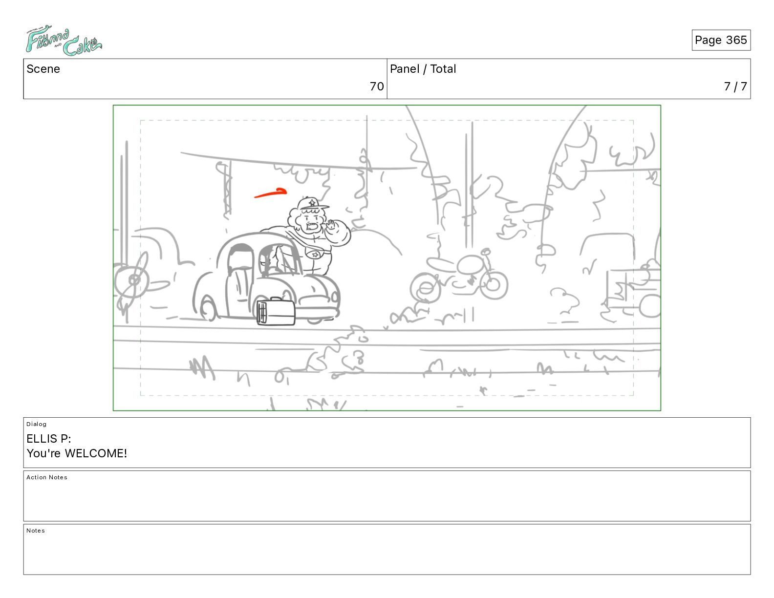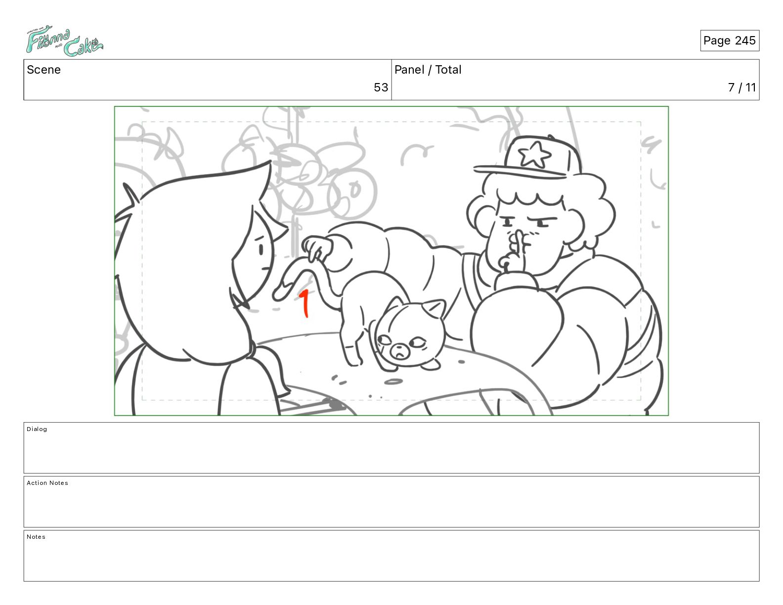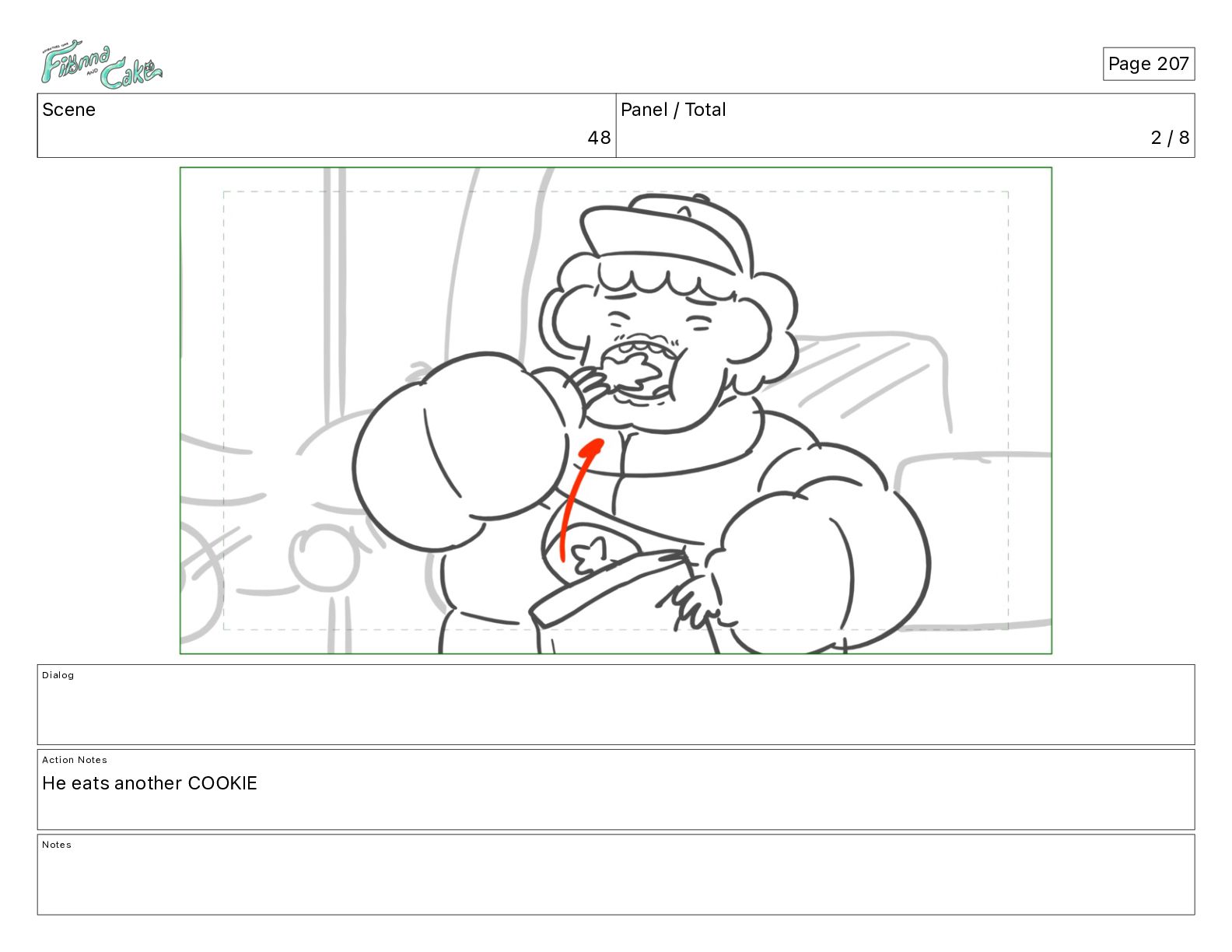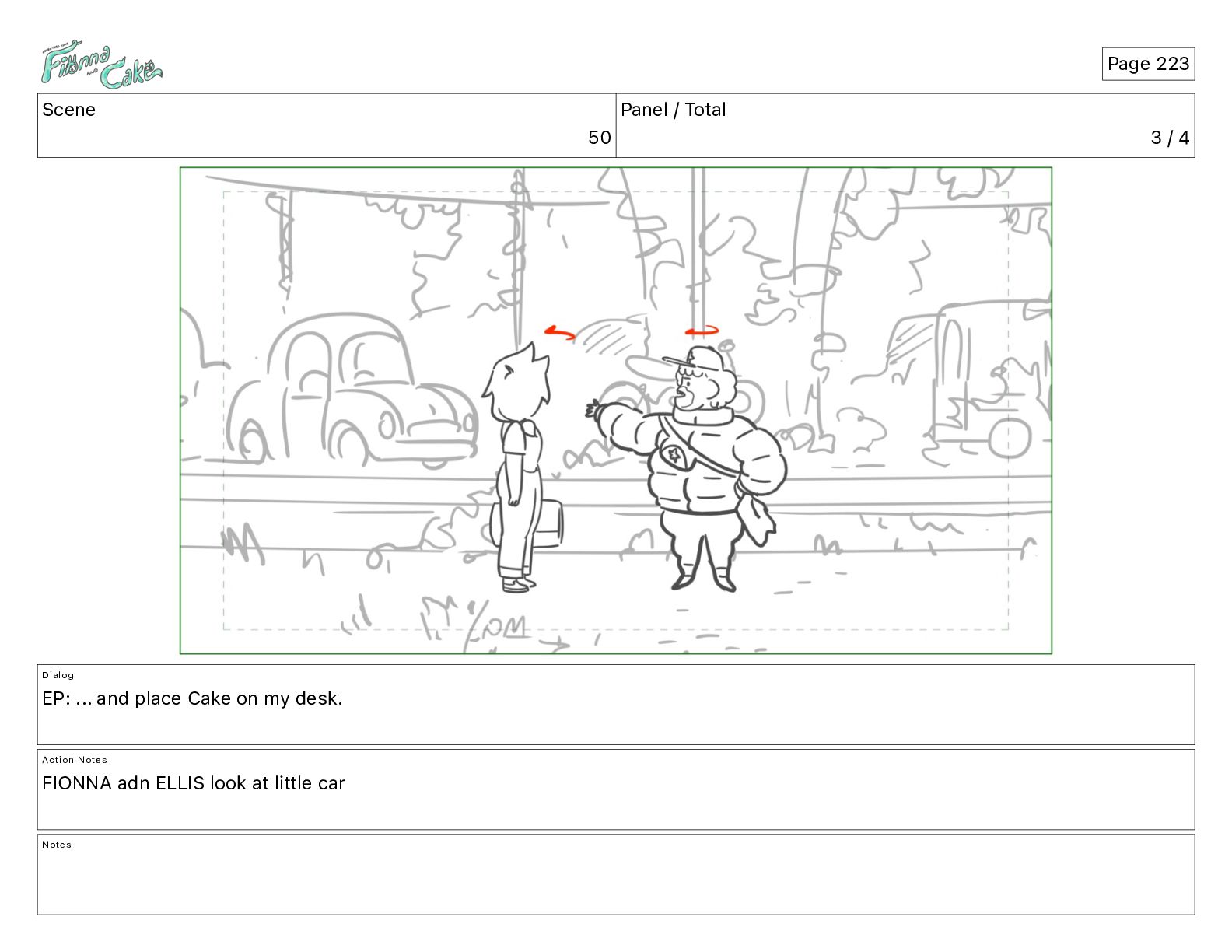 Cake! Action Notes CAM PAN FIONNA runs after Cake Notes Page 377