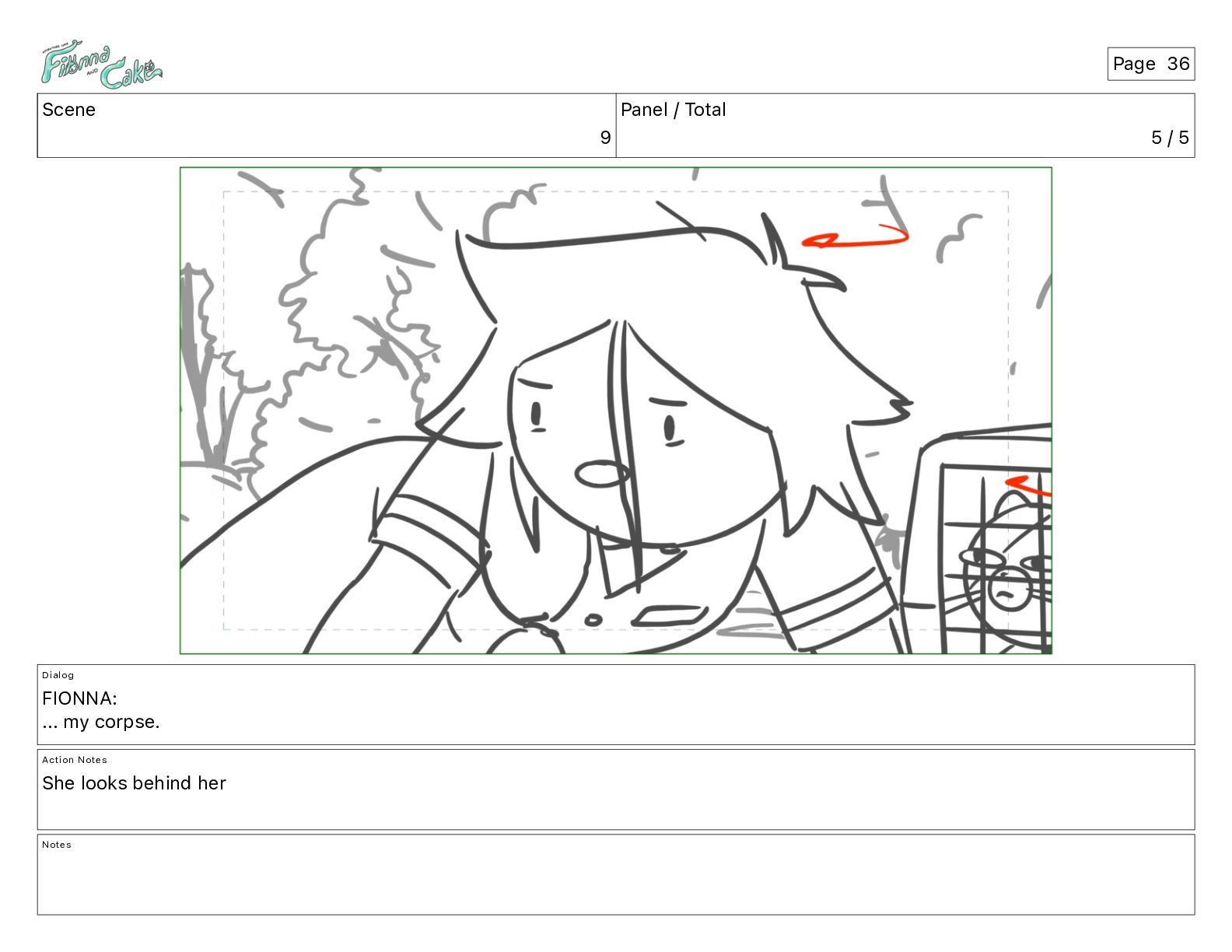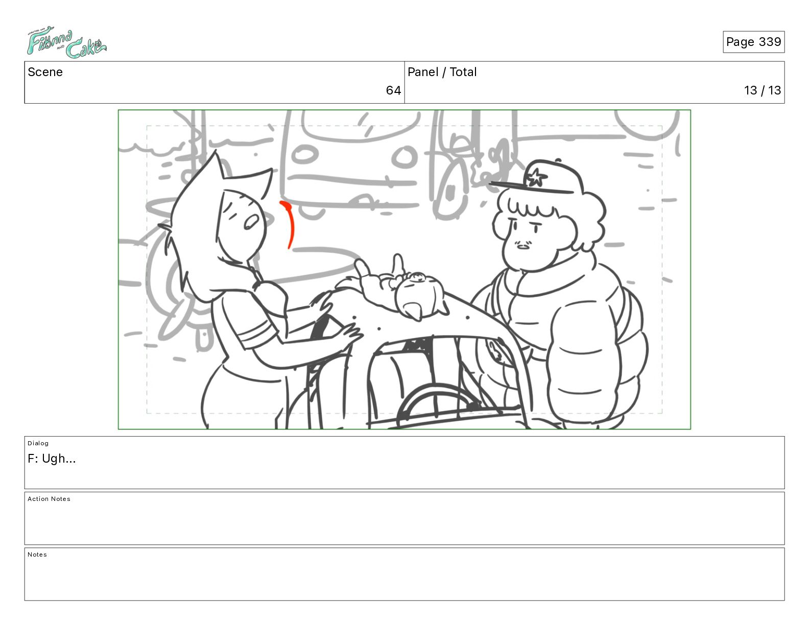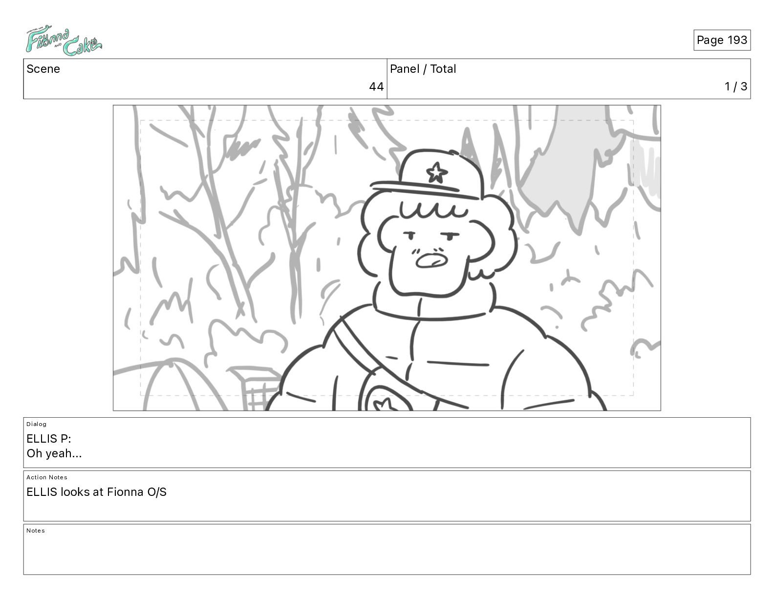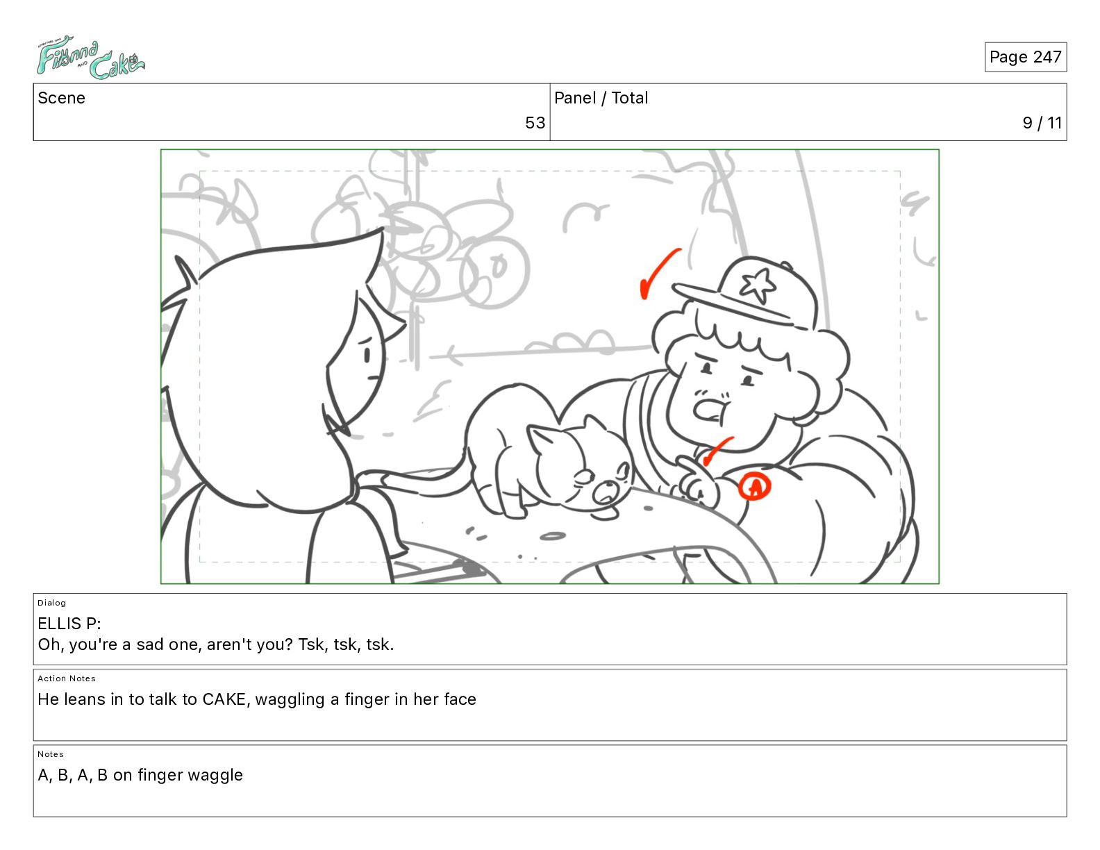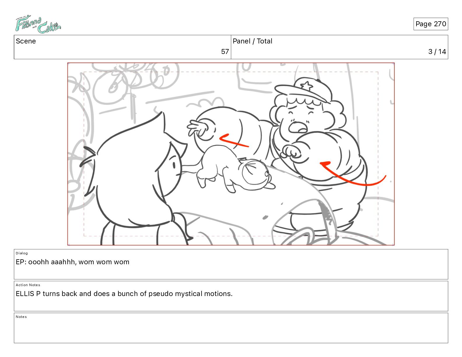 Cake! Action Notes CAM PAN FIONNA runs after Cake Notes Page 377