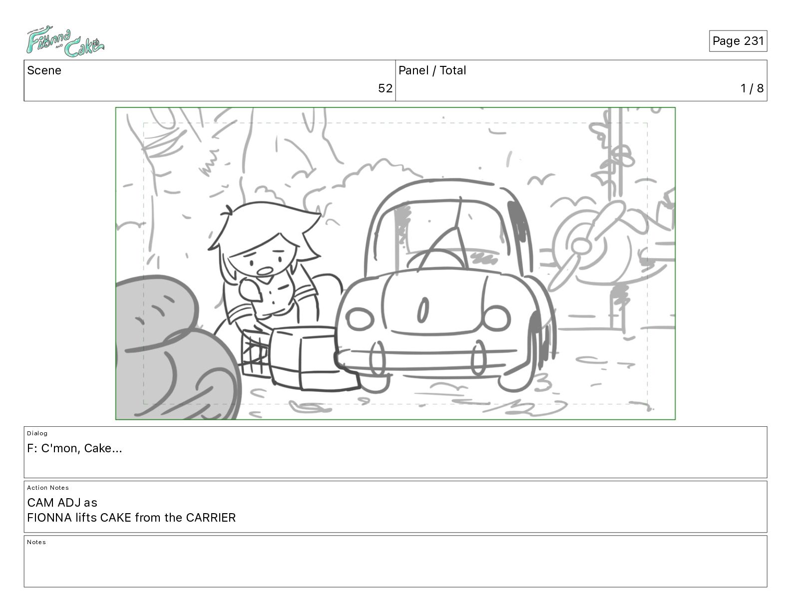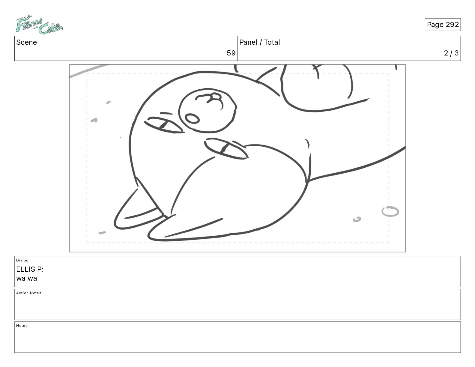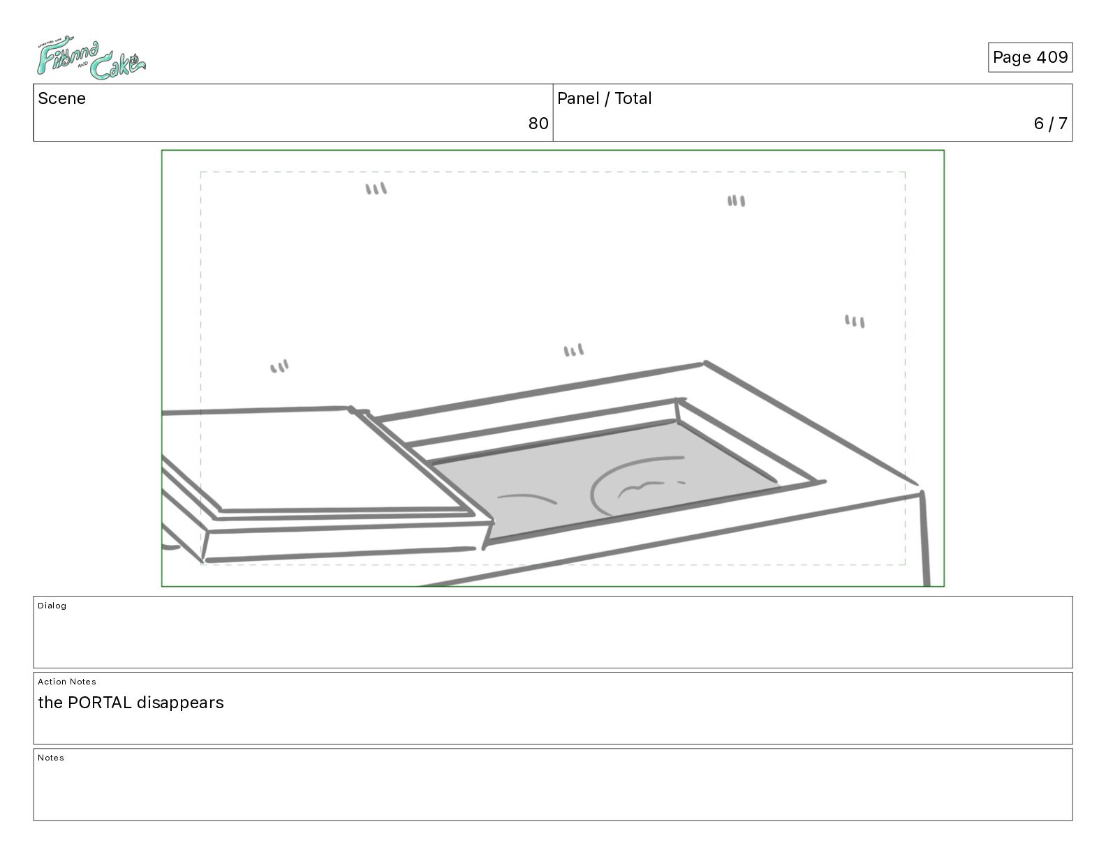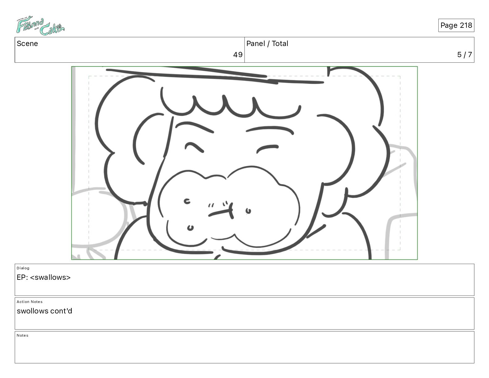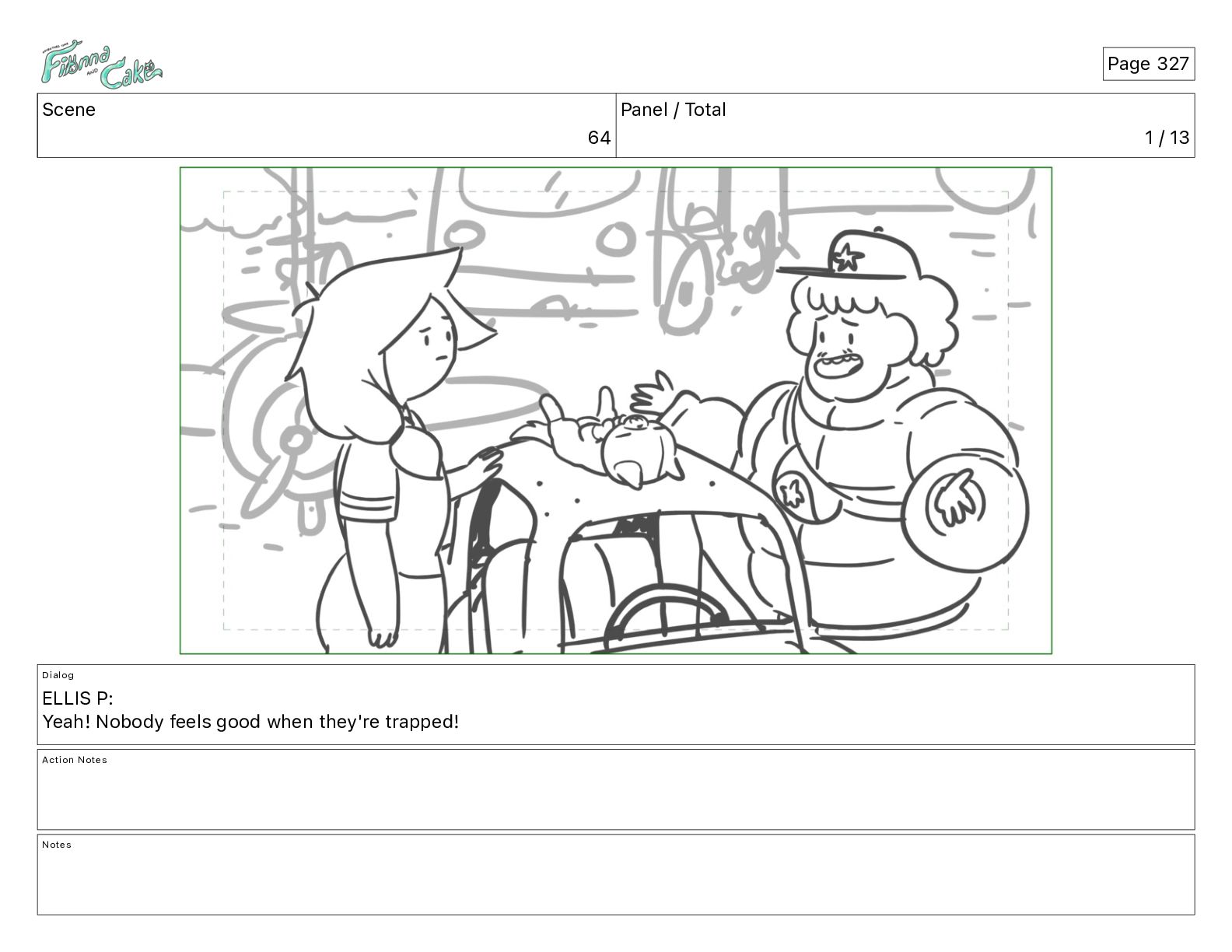 Cake! Action Notes CAM PAN FIONNA runs after Cake Notes Page 377