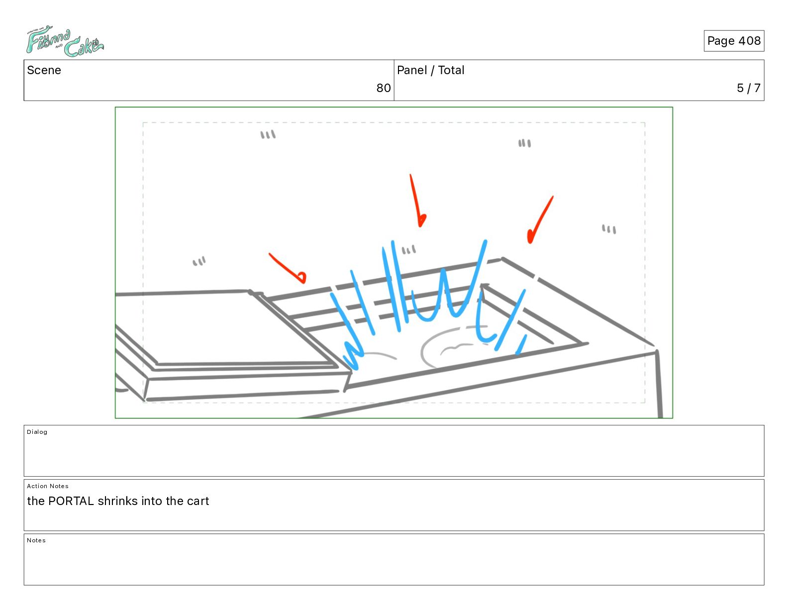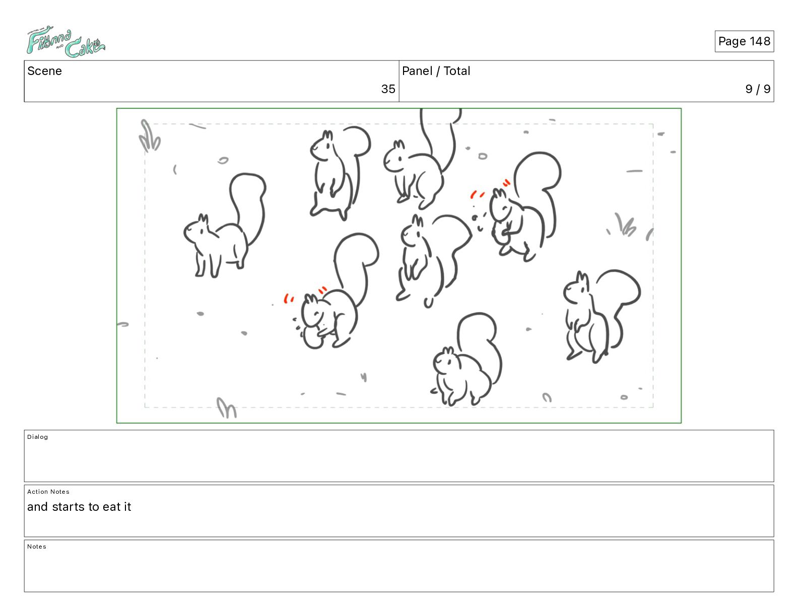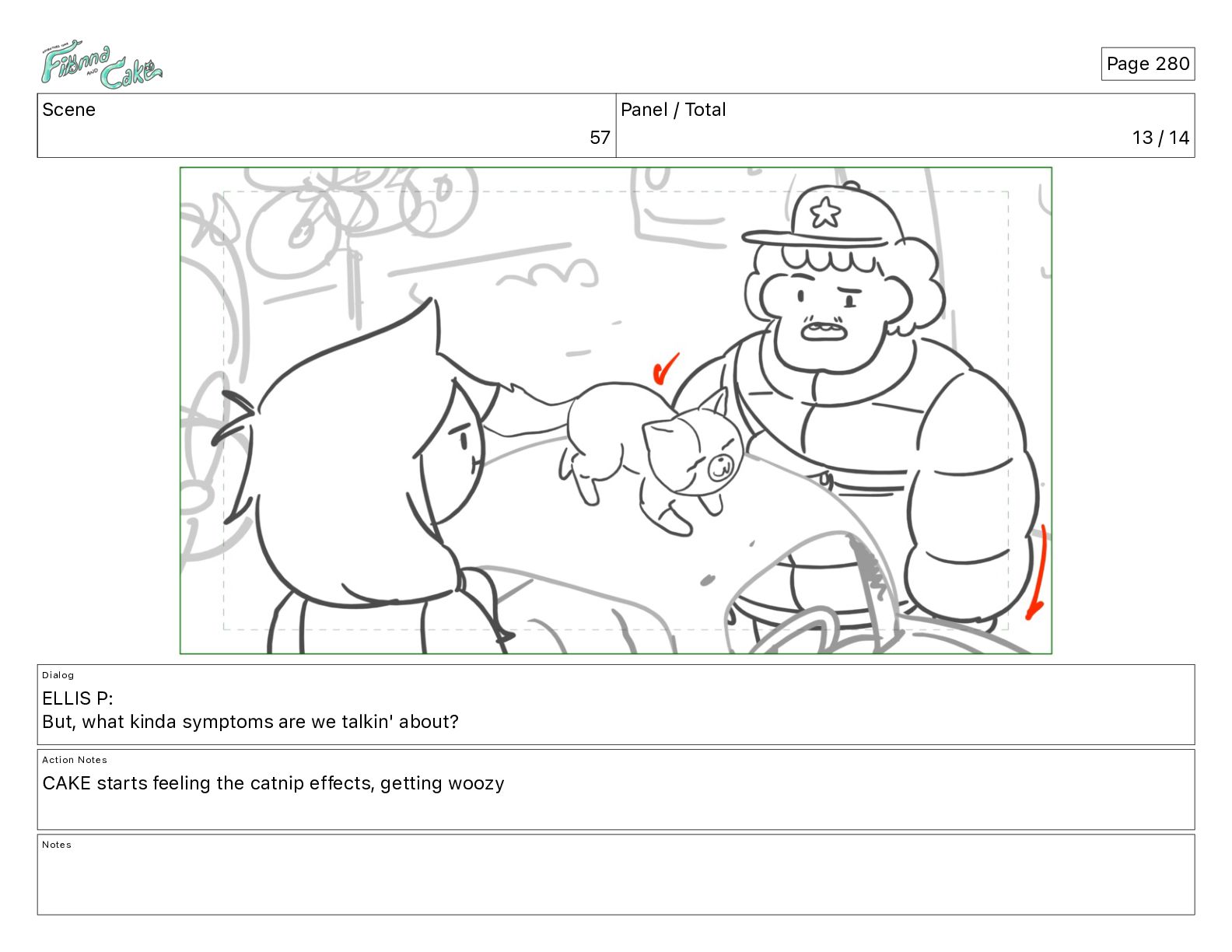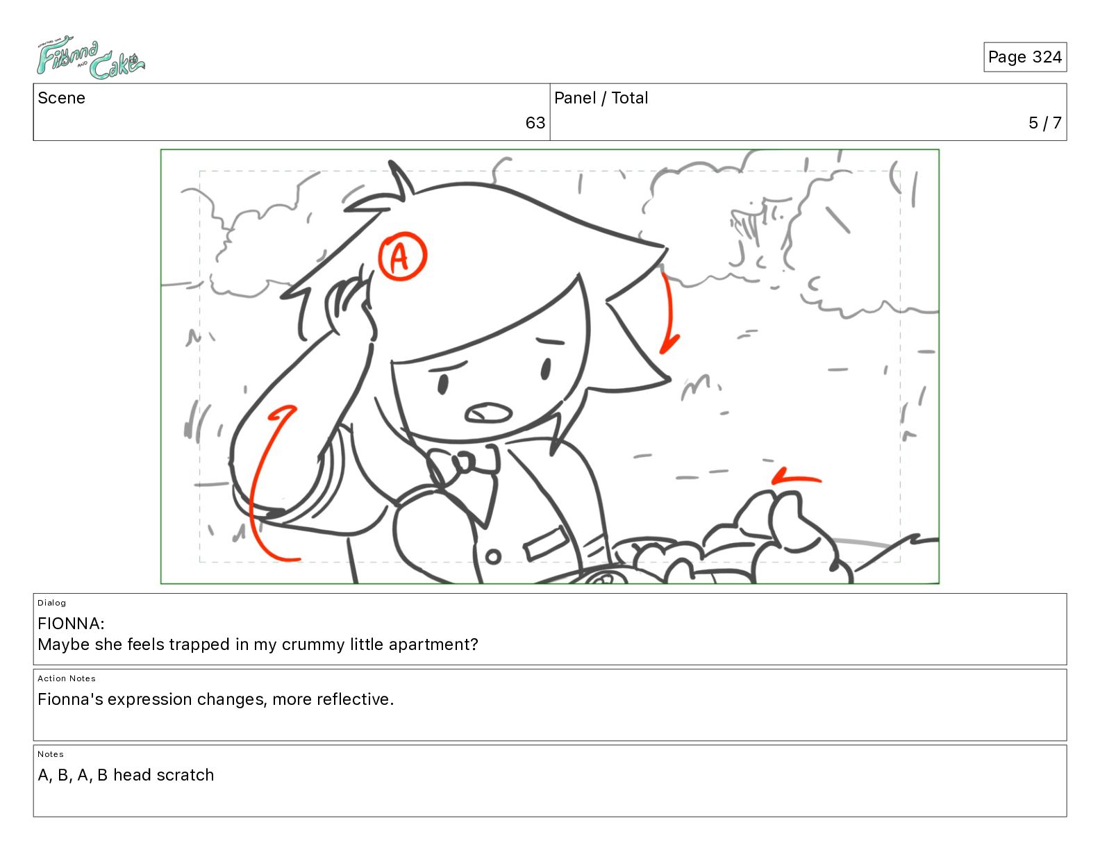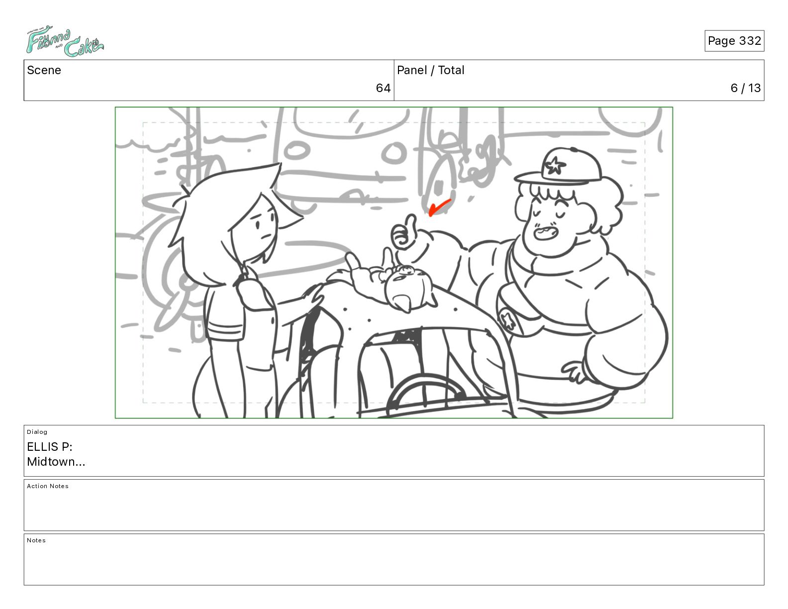 Cake! Action Notes CAM PAN FIONNA runs after Cake Notes Page 377
