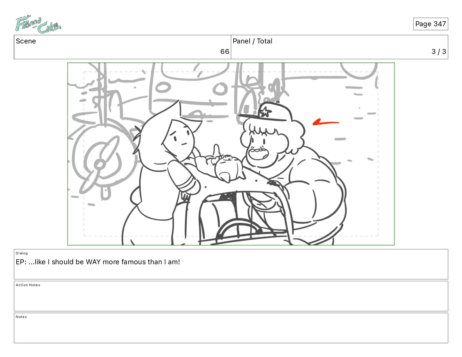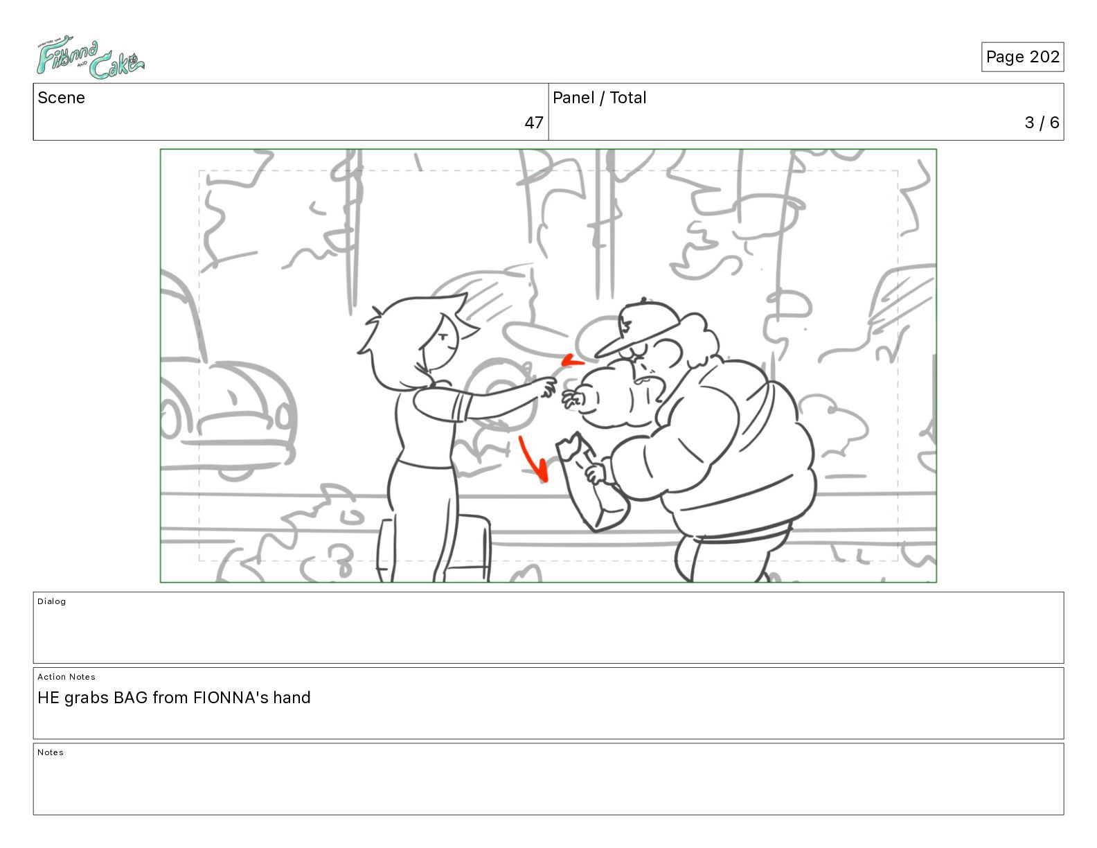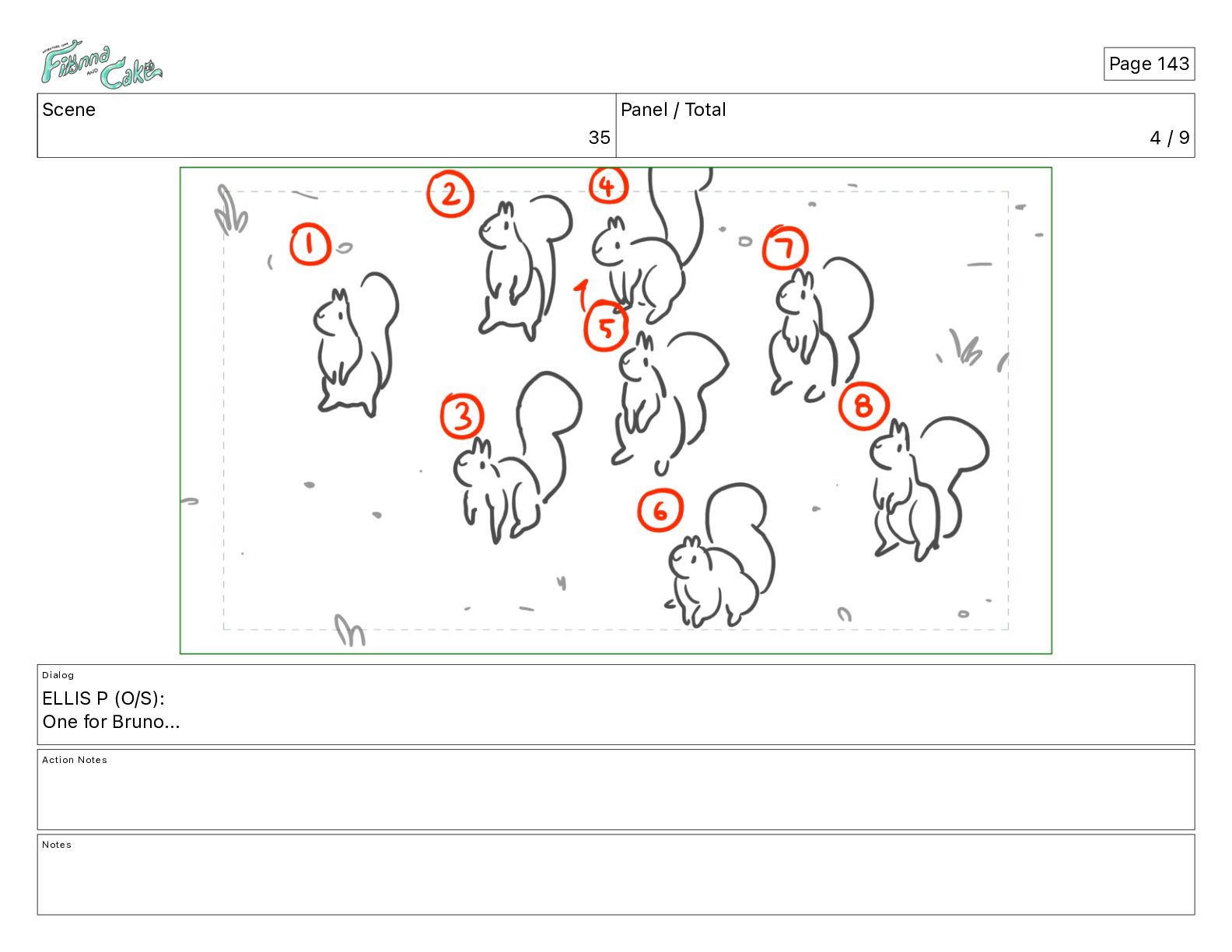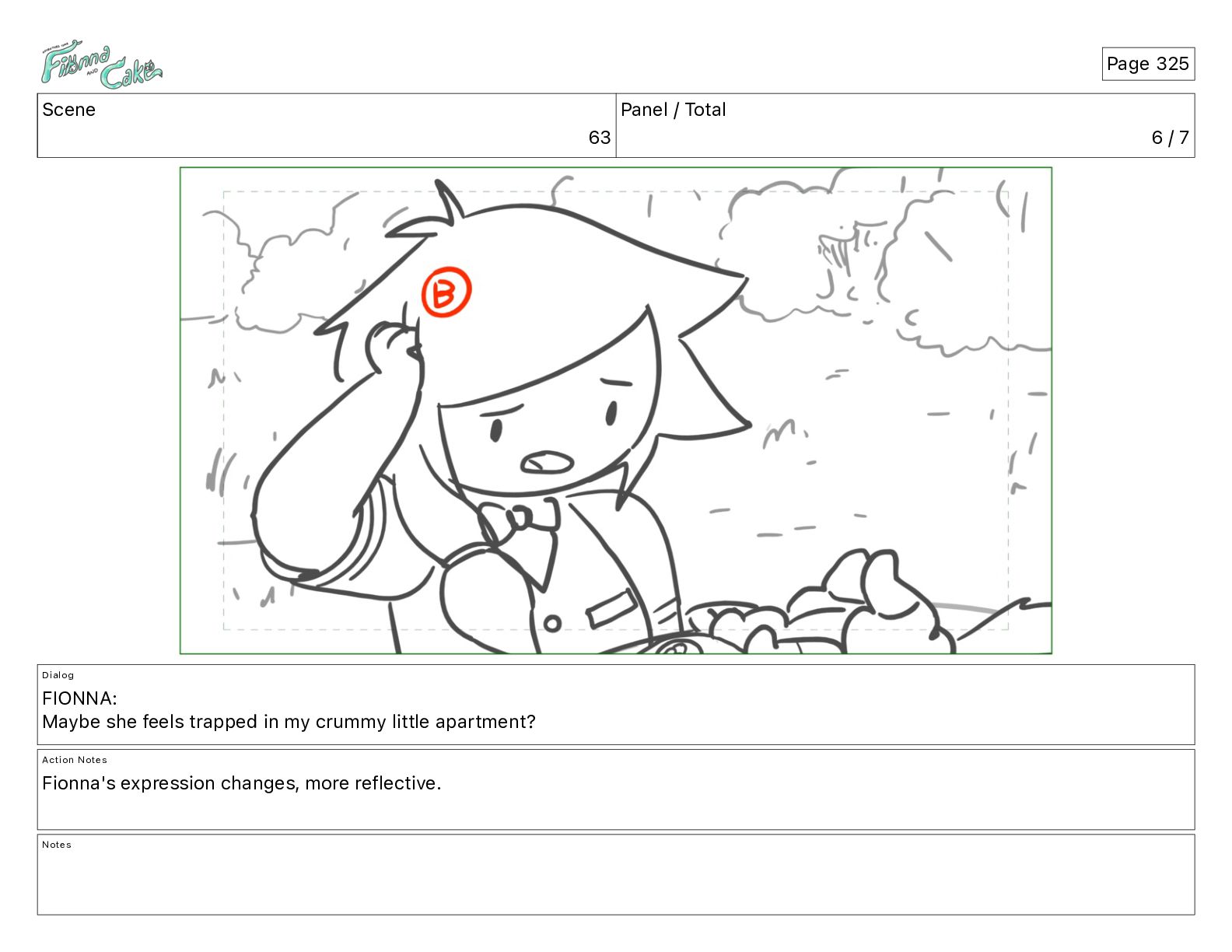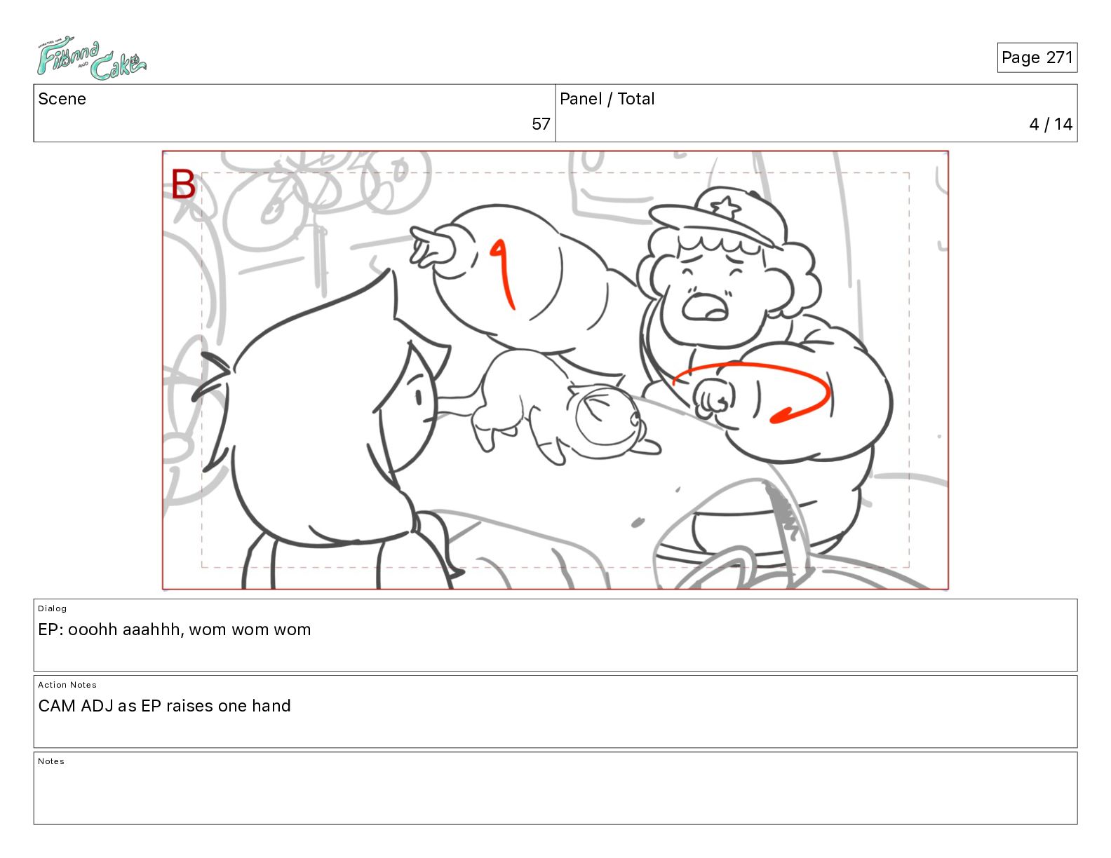 Cake! Action Notes CAM PAN FIONNA runs after Cake Notes Page 377