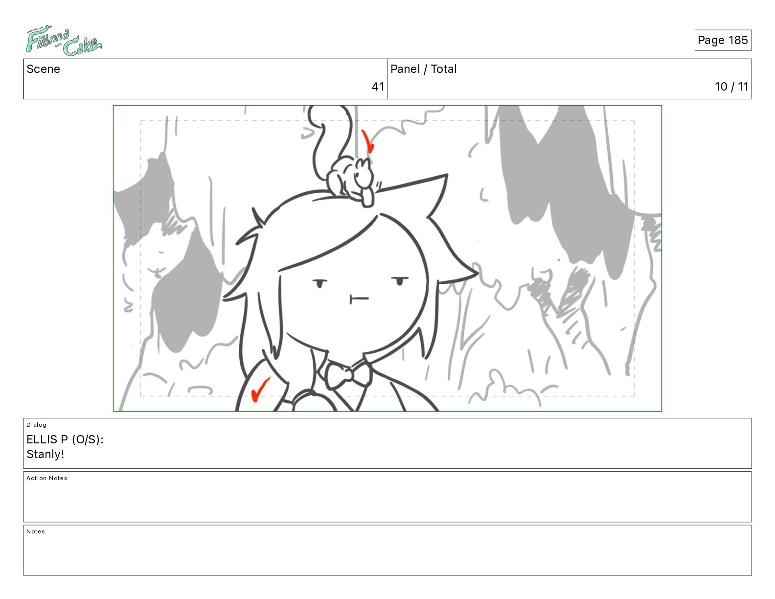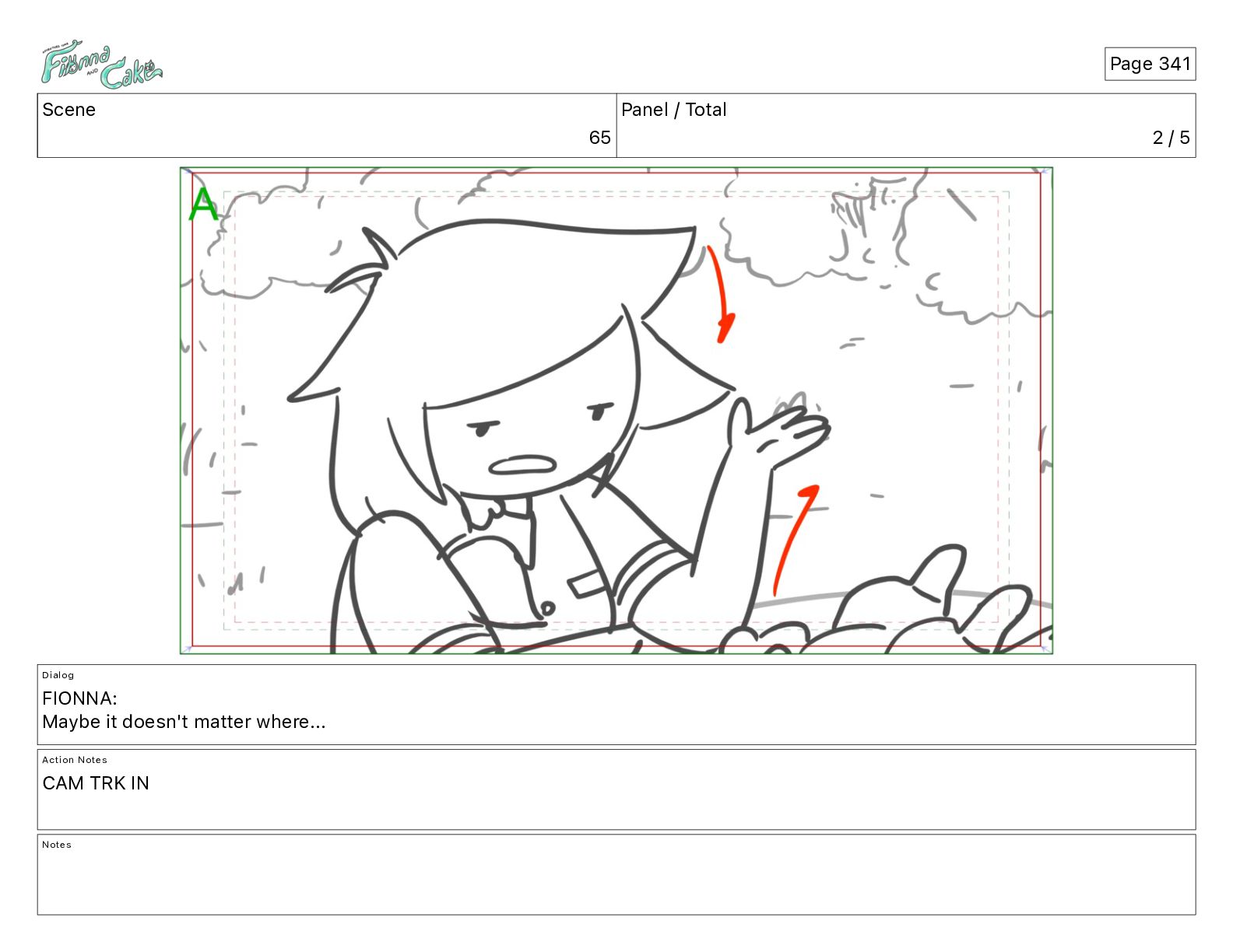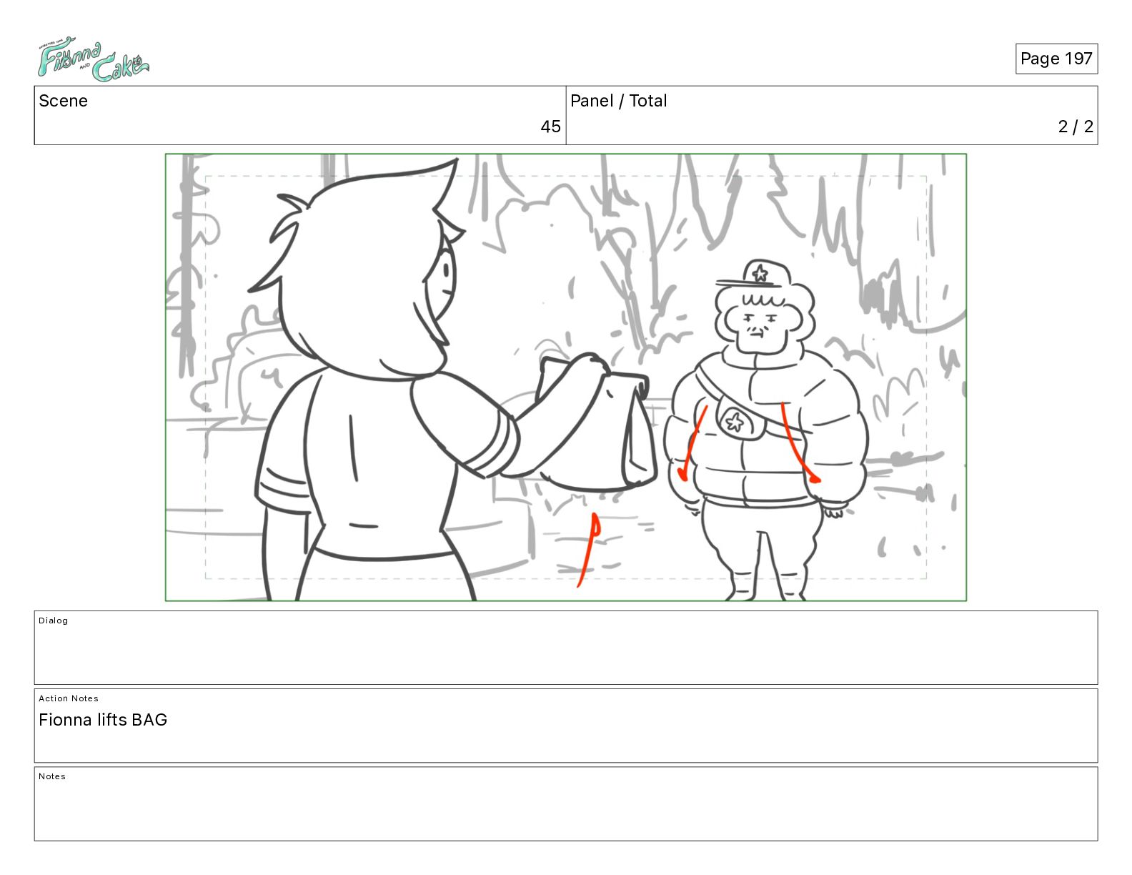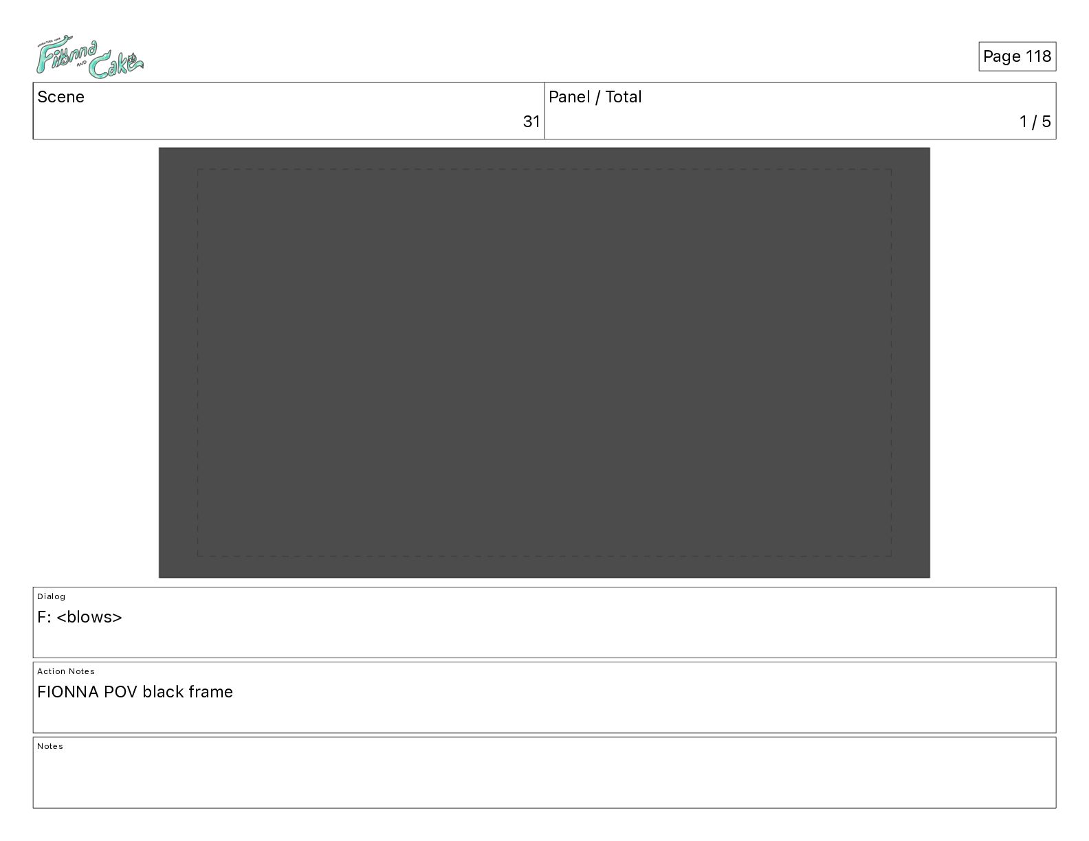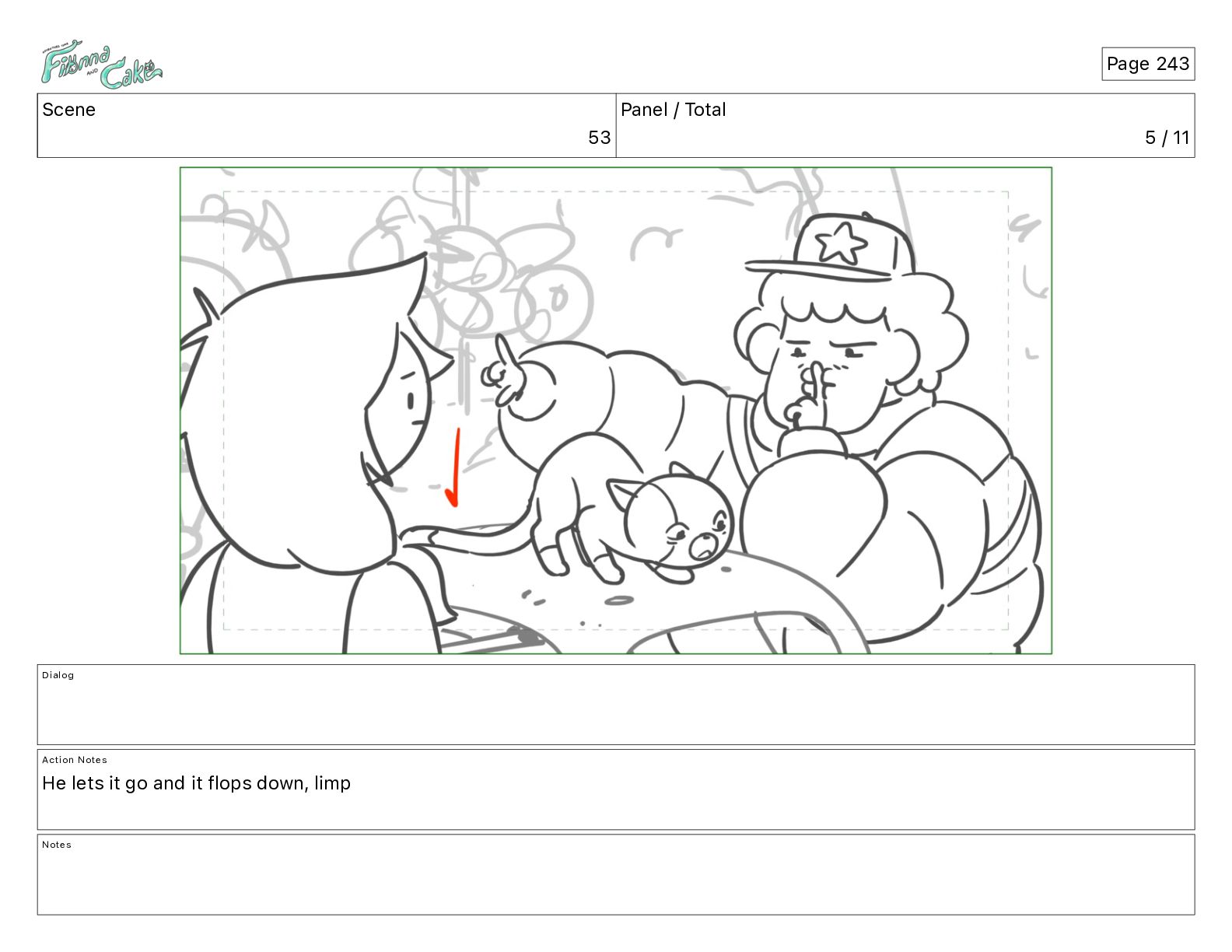 Cake! Action Notes CAM PAN FIONNA runs after Cake Notes Page 377