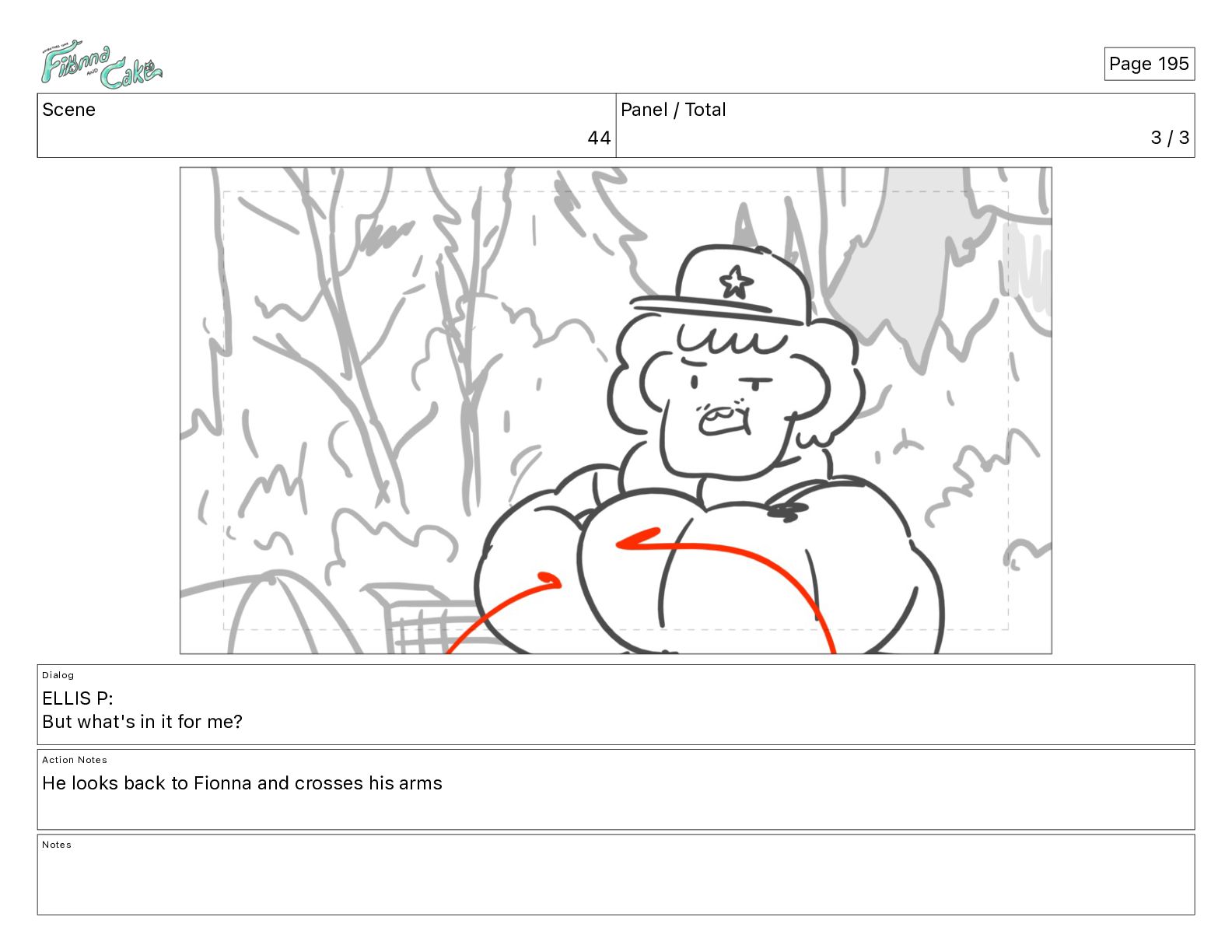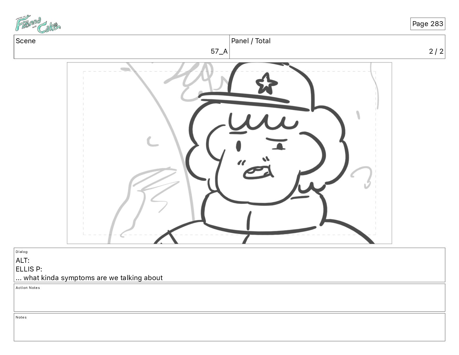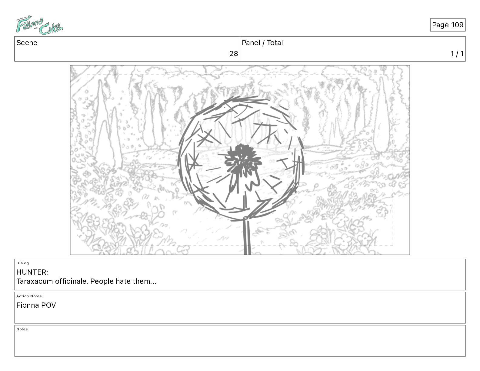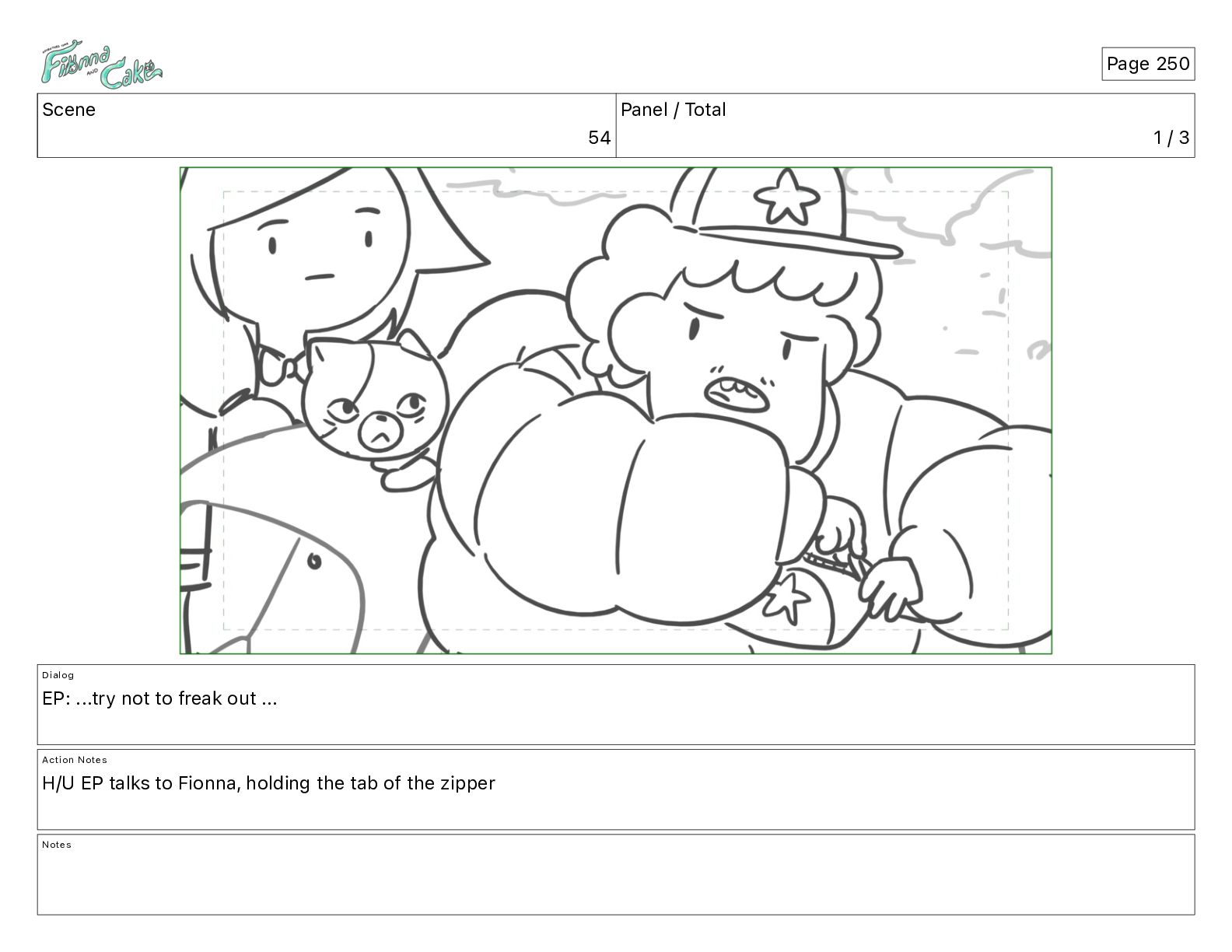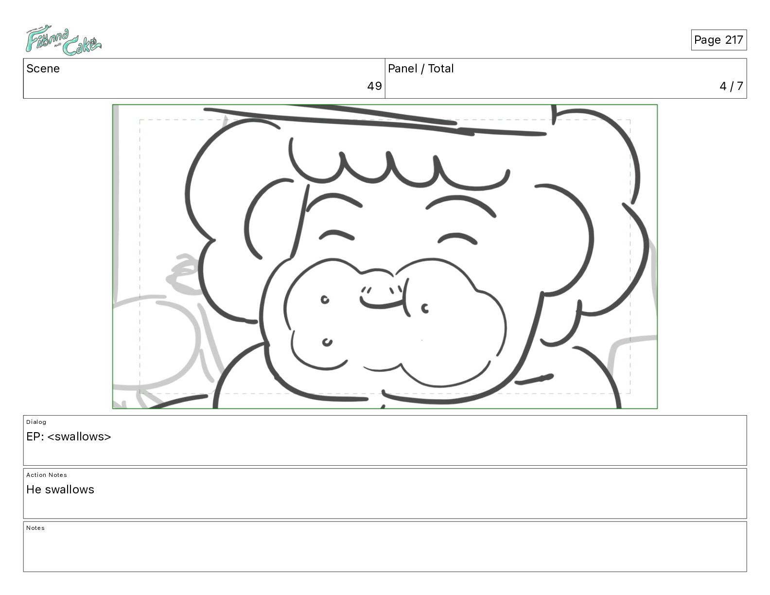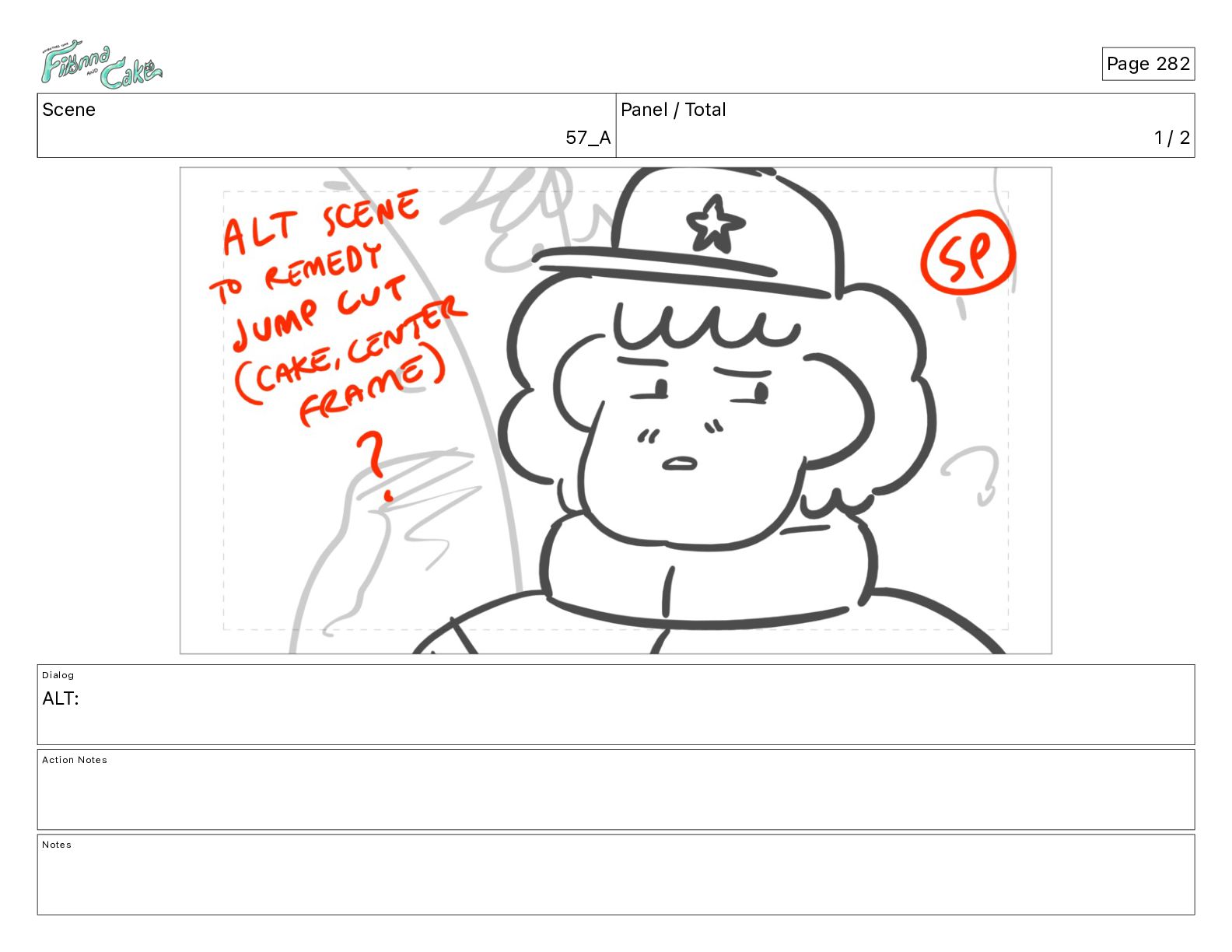Cake! Action Notes CAM PAN FIONNA runs after Cake Notes Page 377
