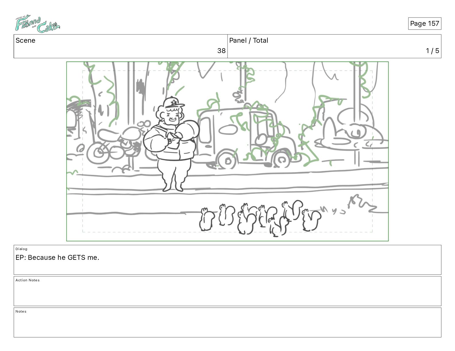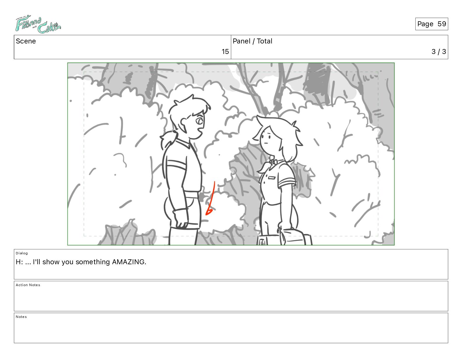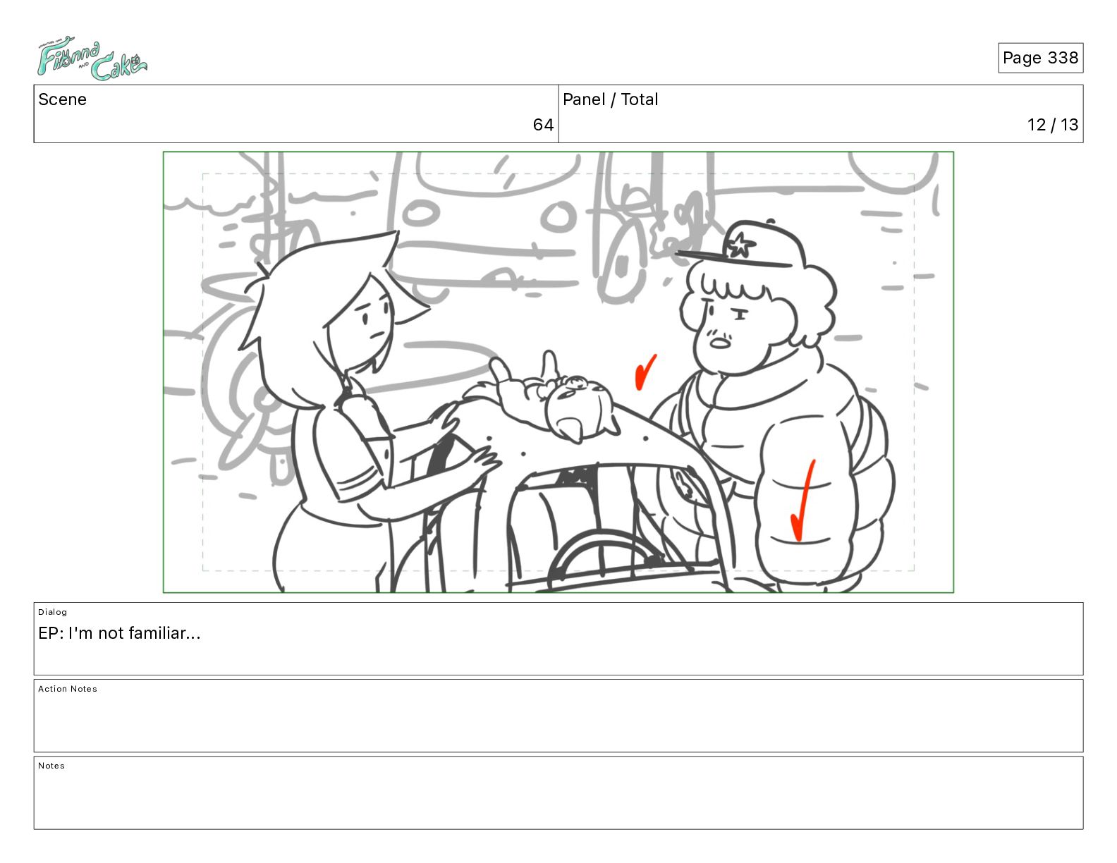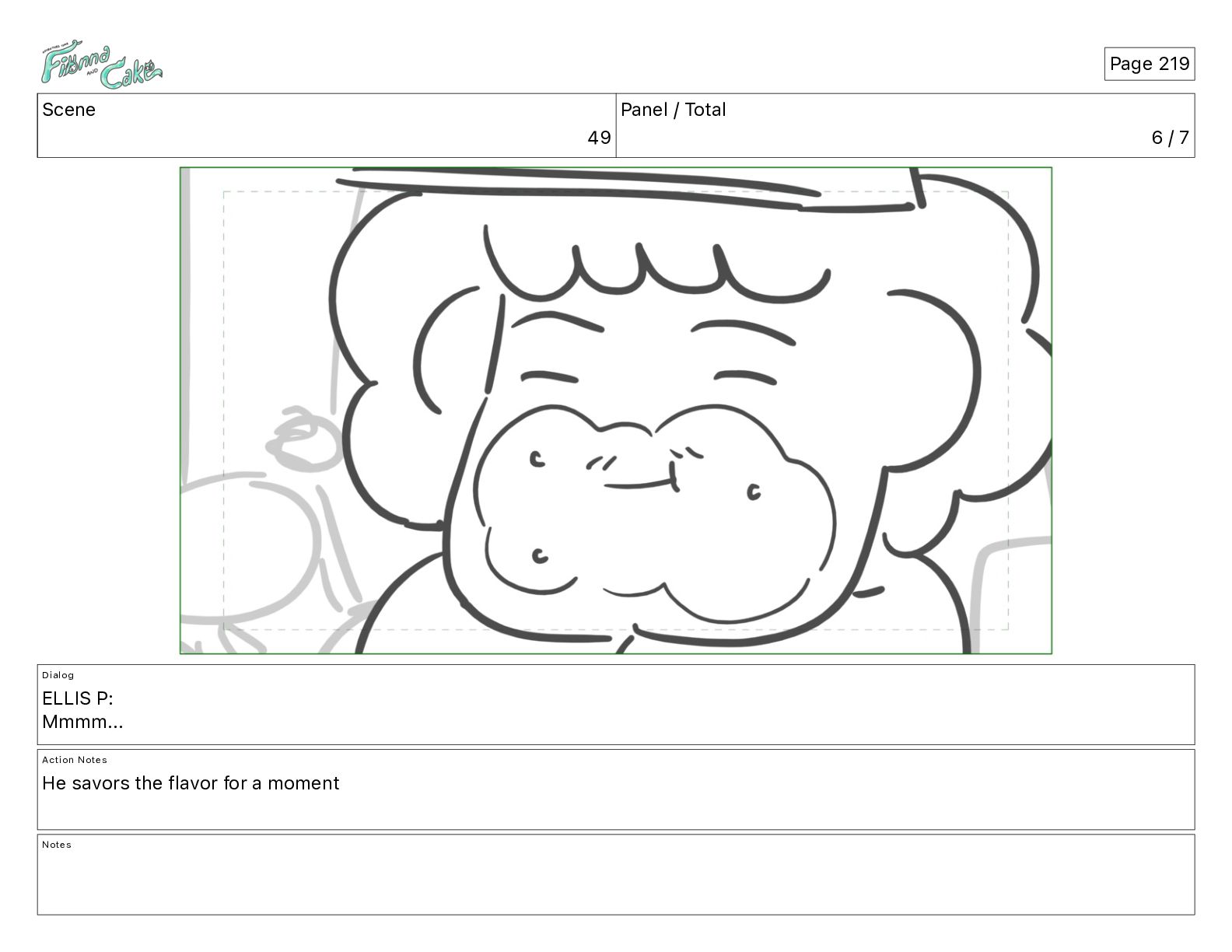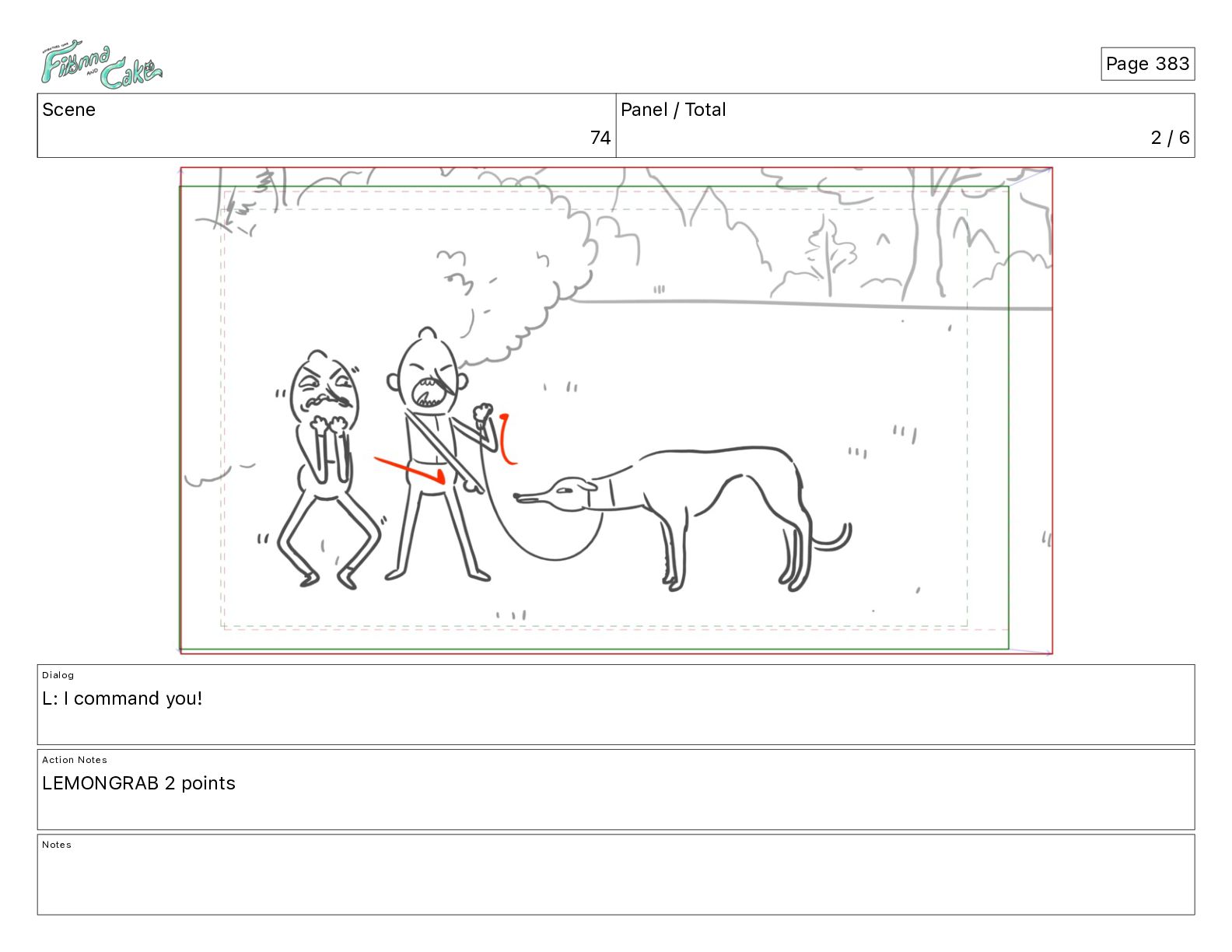 Cake! Action Notes CAM PAN FIONNA runs after Cake Notes Page 377