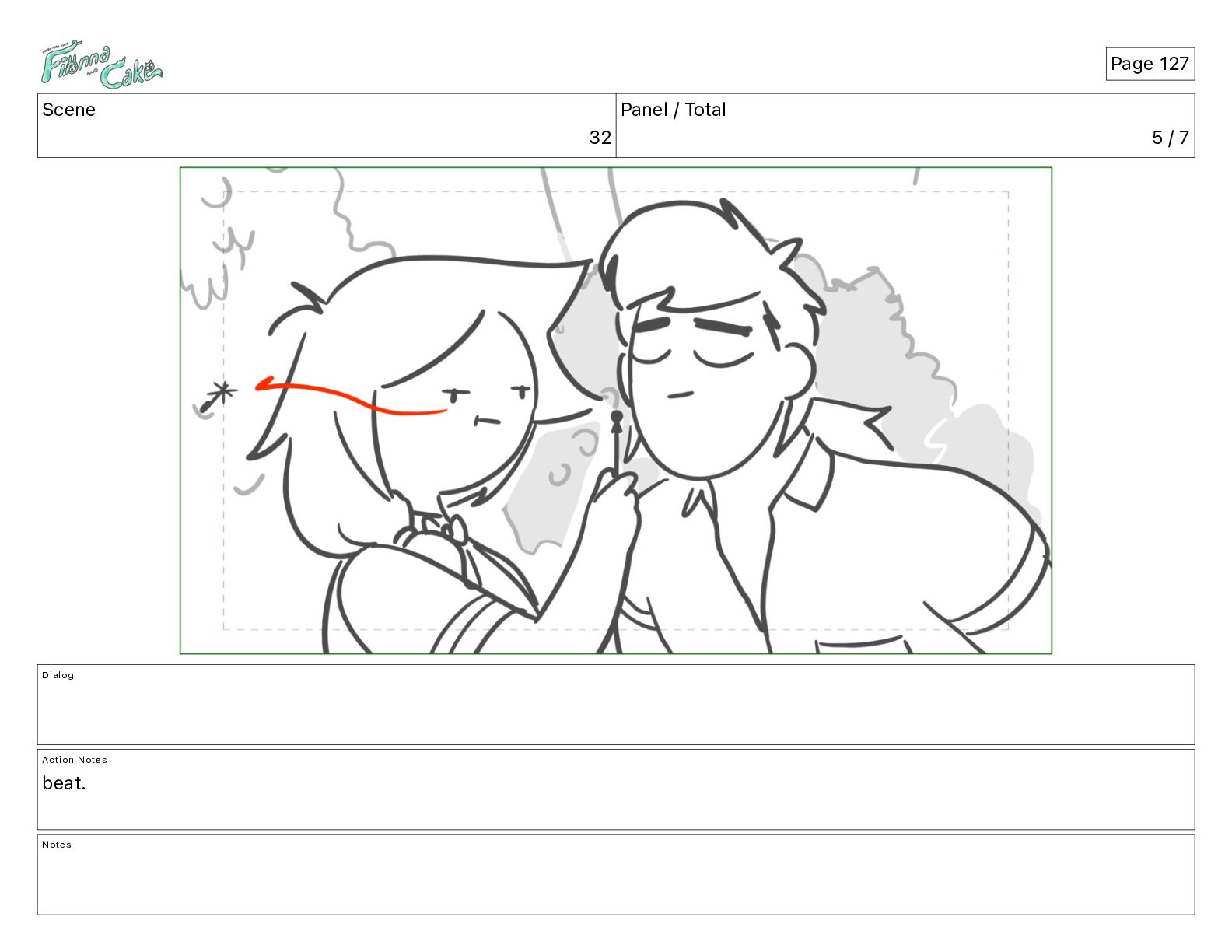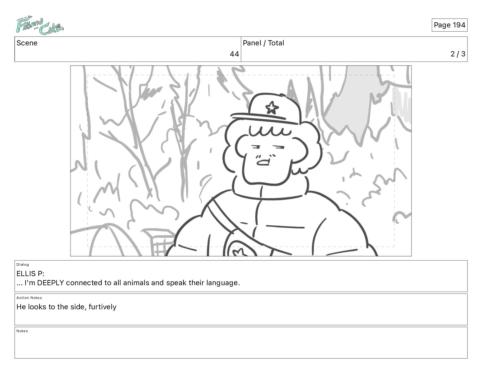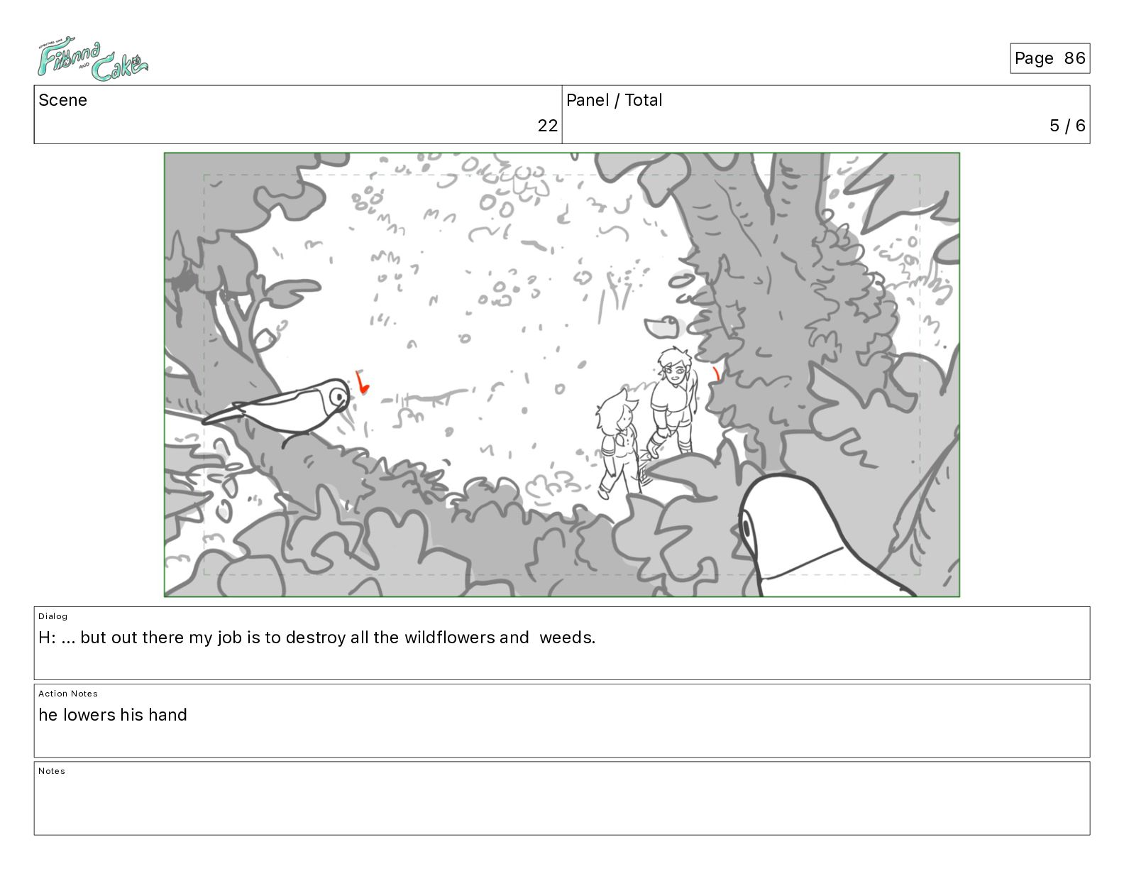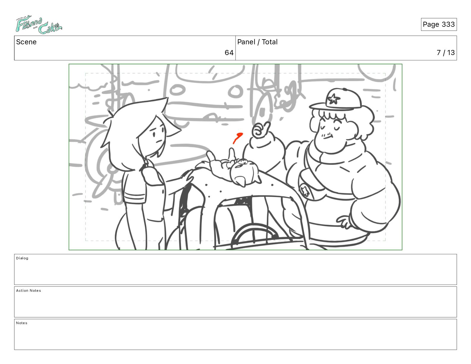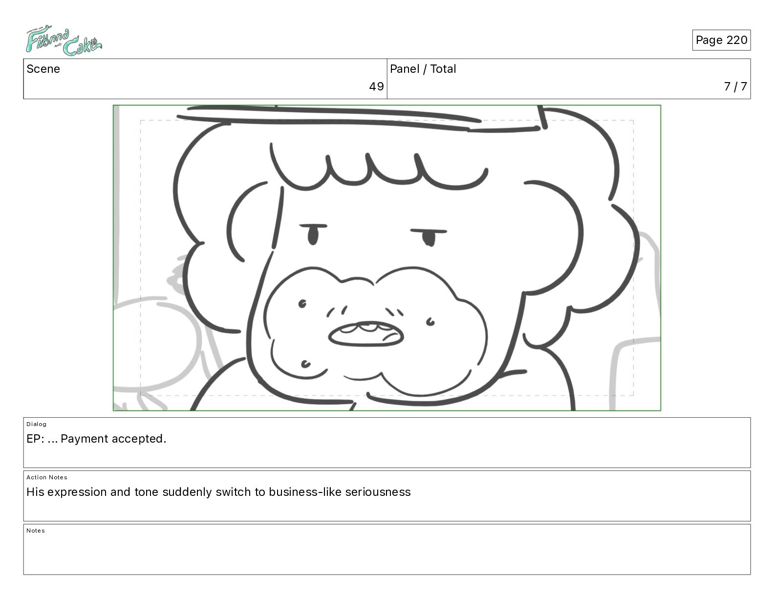 Cake! Action Notes CAM PAN FIONNA runs after Cake Notes Page 377