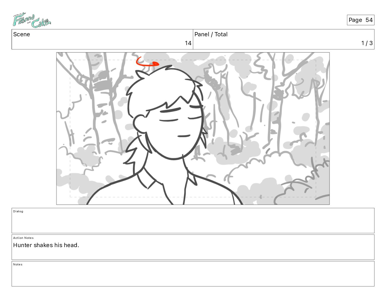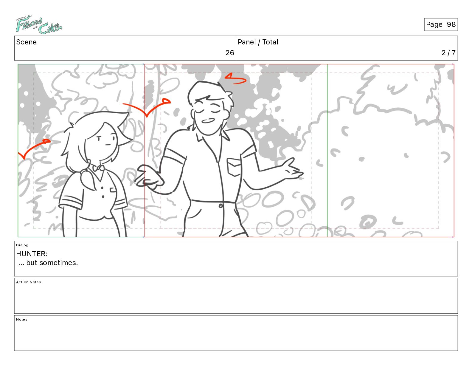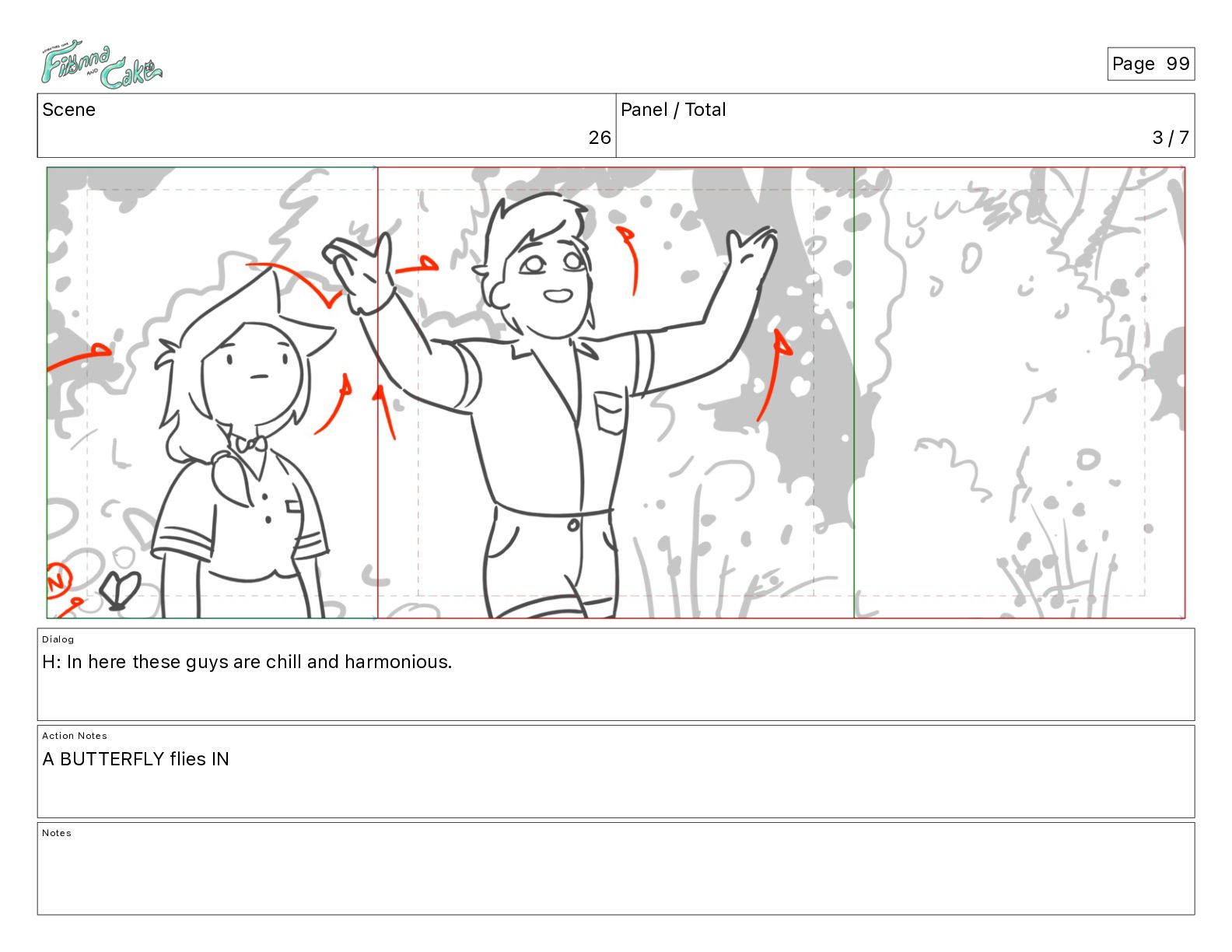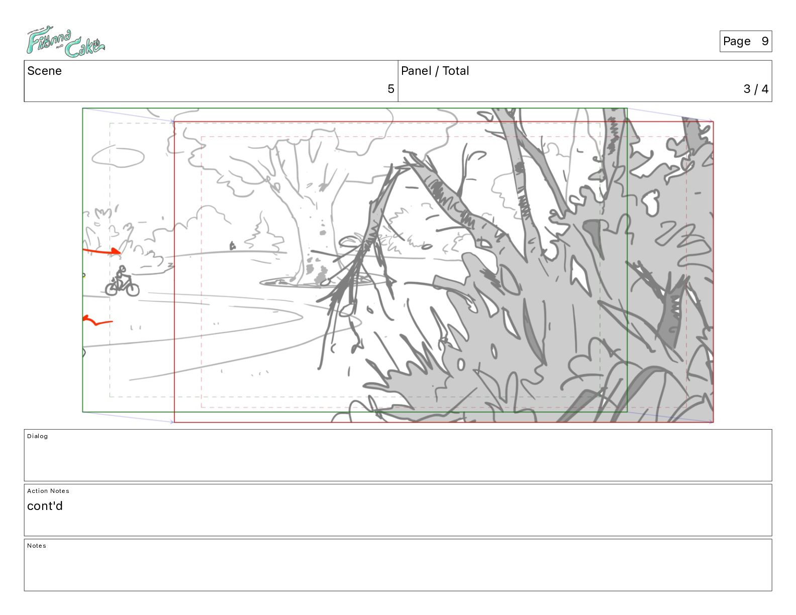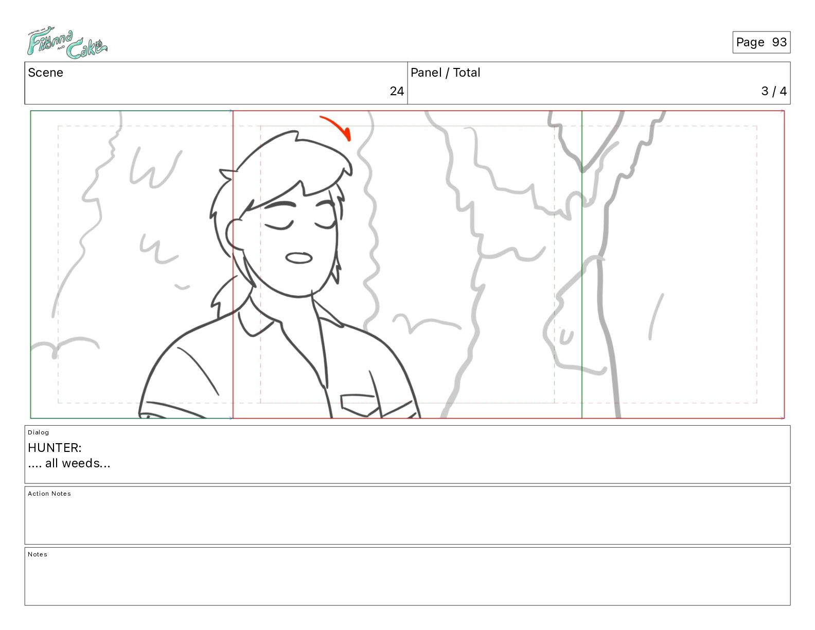 Argh! CAKE: <reow!> Action Notes STOP CAM ADJ FIONNA trips again Notes Page 29