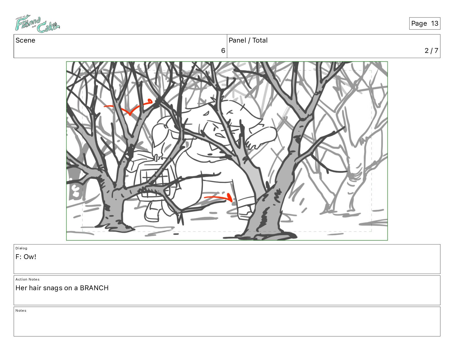 Ow! Action Notes Her hair snags on a BRANCH Notes Page 13