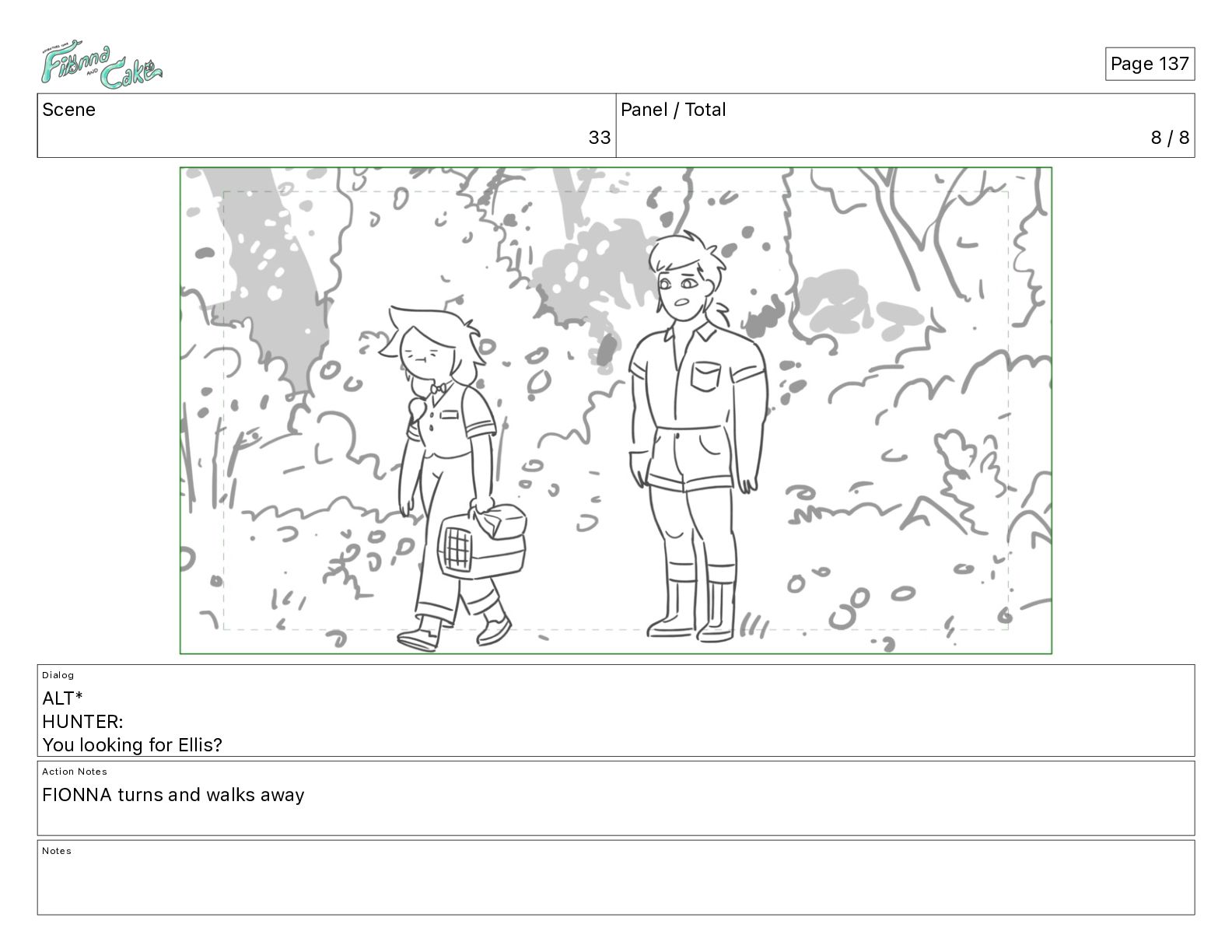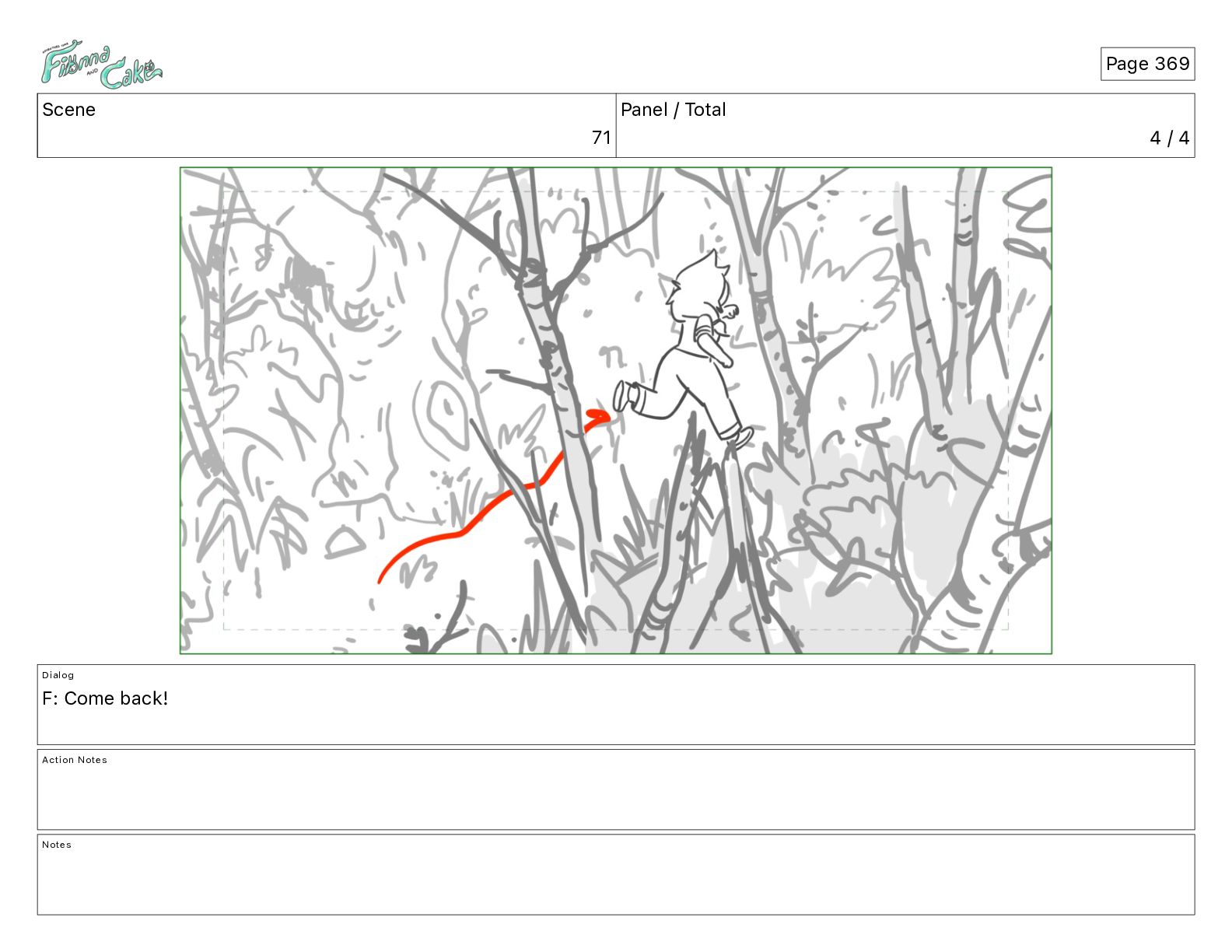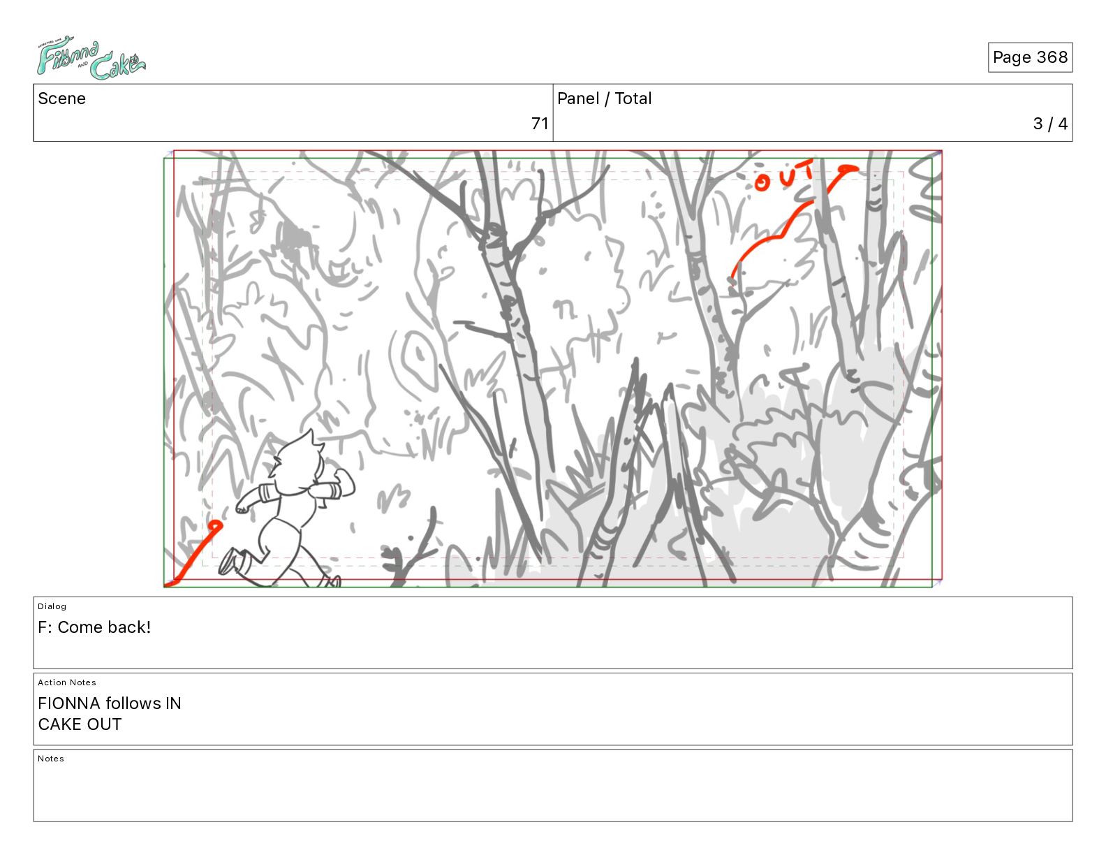 Come back! Action Notes FIONNA follows IN CAKE OUT Notes Page 368