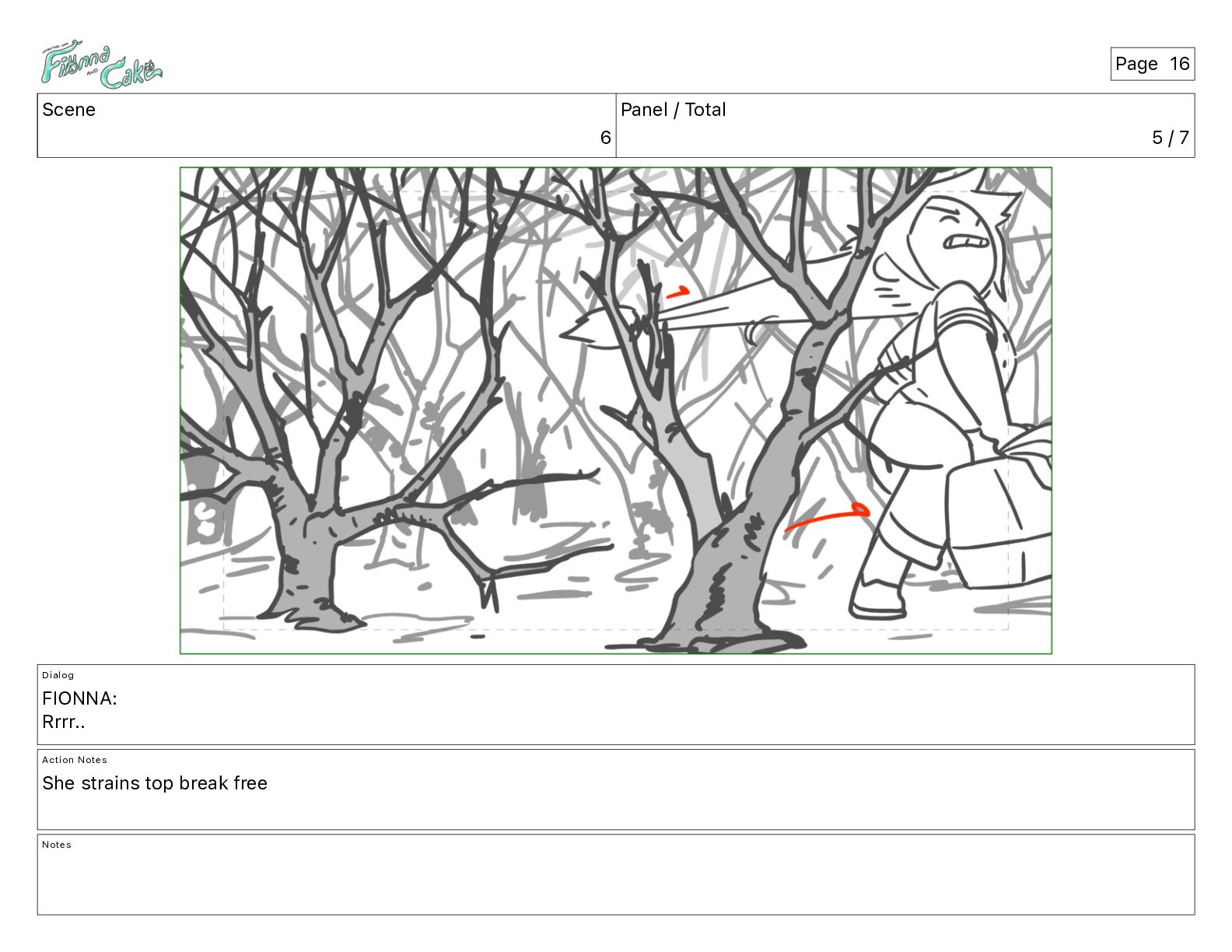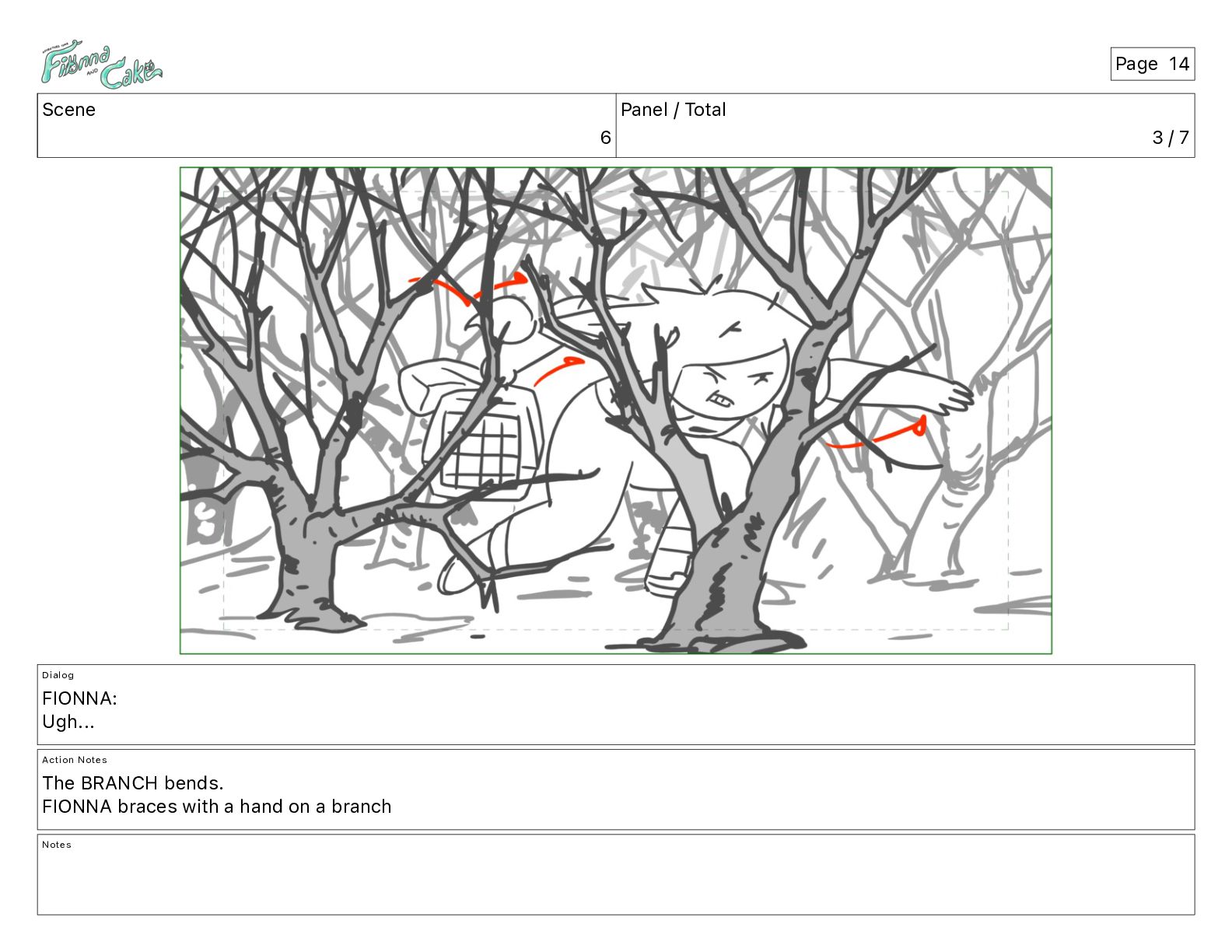 Ugh... Action Notes The BRANCH bends. FIONNA braces with a hand on a branch Notes Page 14